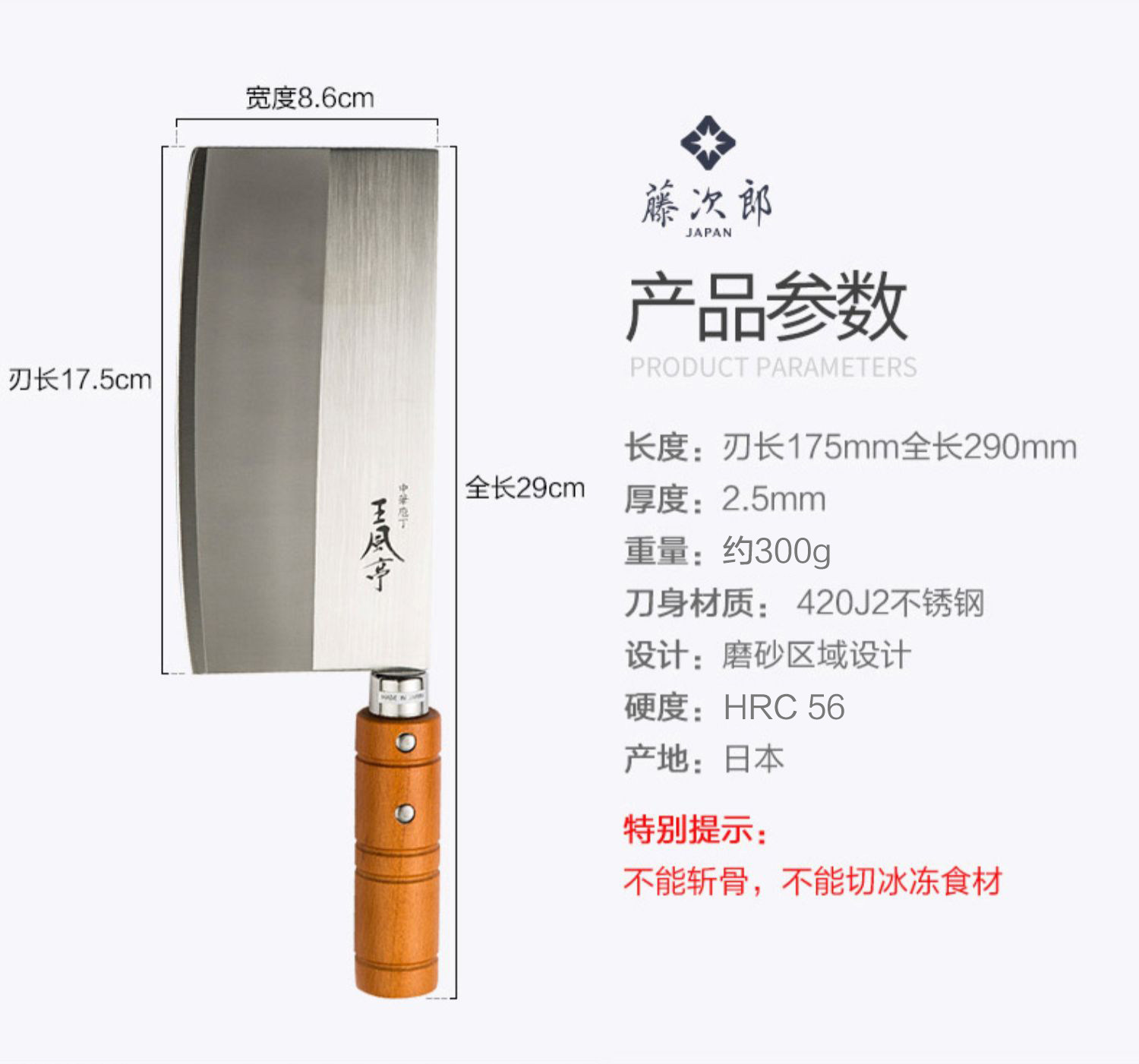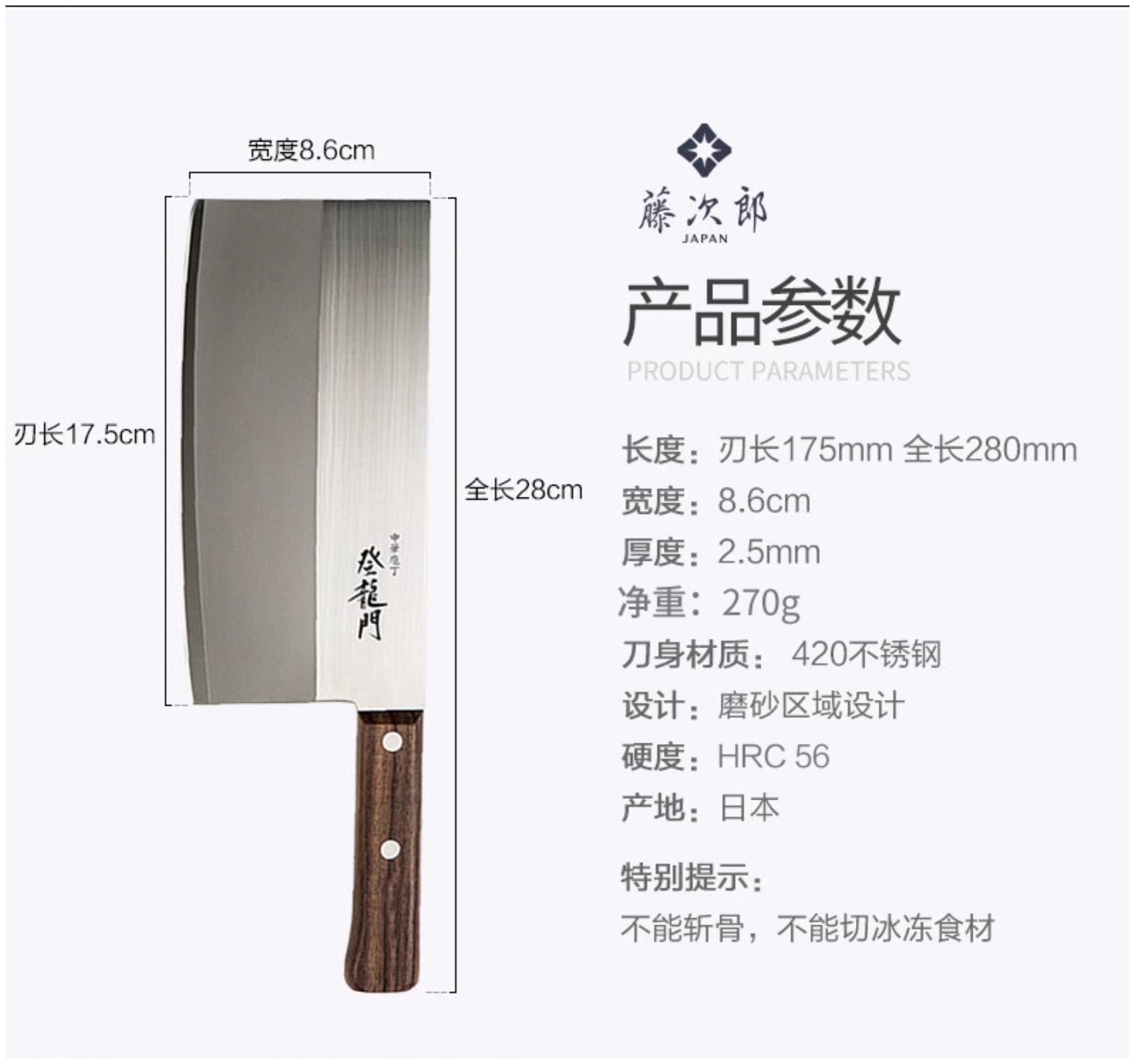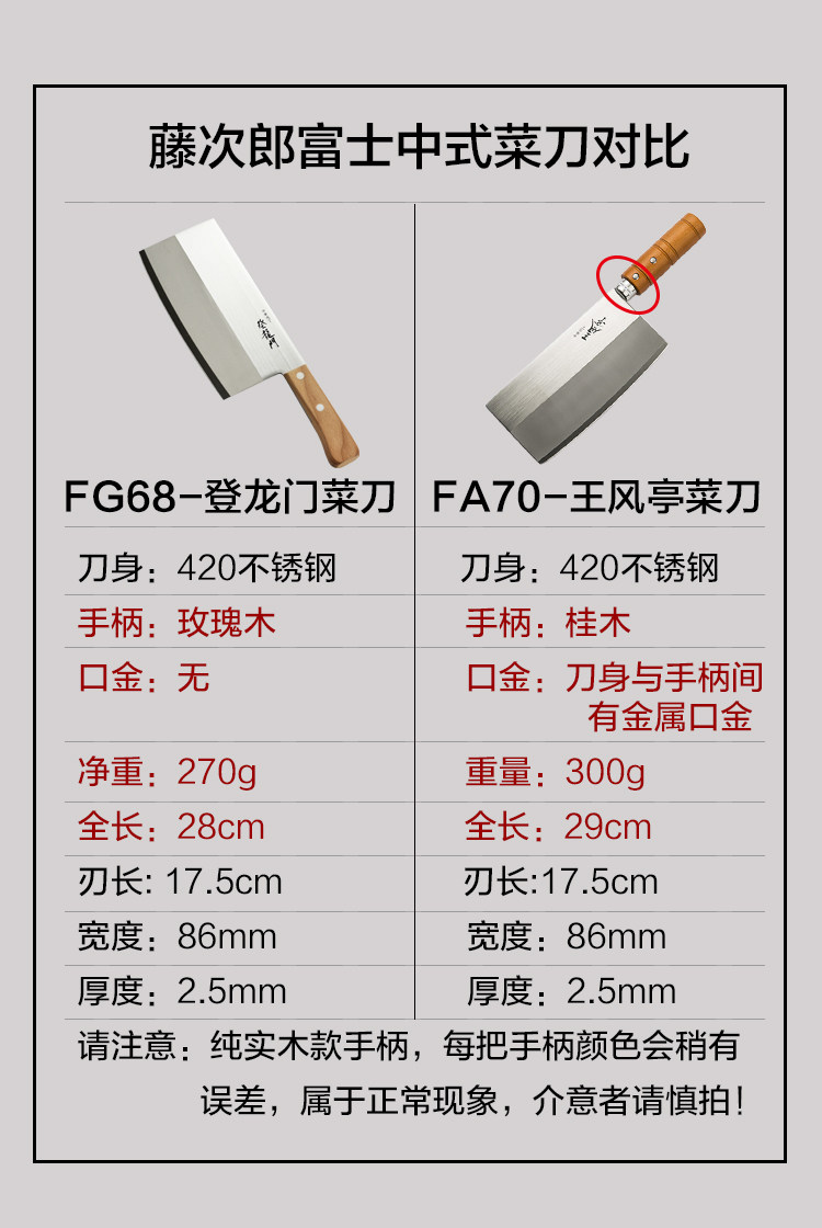 【日本原装进口菜刀】藤次郎富士家用刀具登龙门厨刀中式切菜刀切片刀