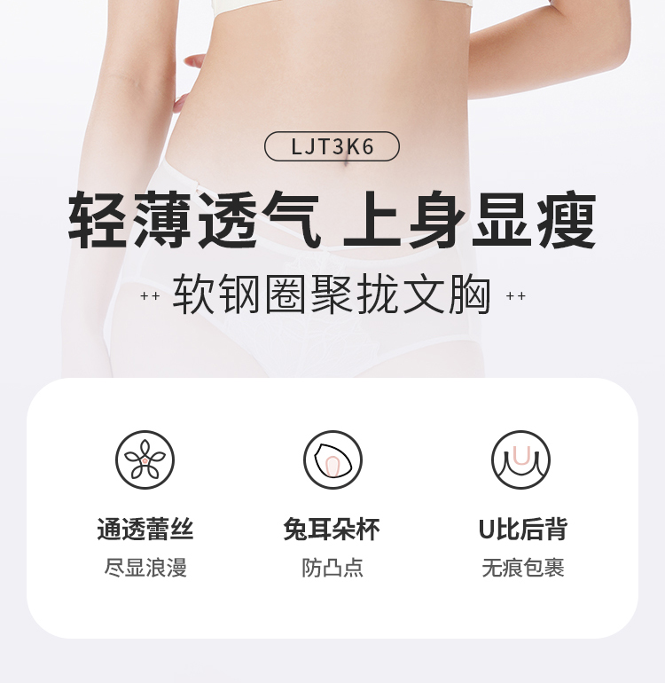 都市丽人调整型内衣舒软挺塑塑身文胸蕾丝超薄塑身内衣3/4杯四排扣LJT3K6