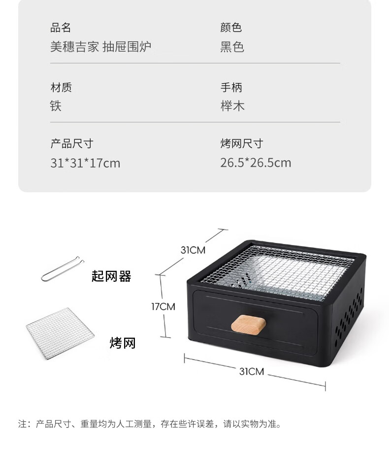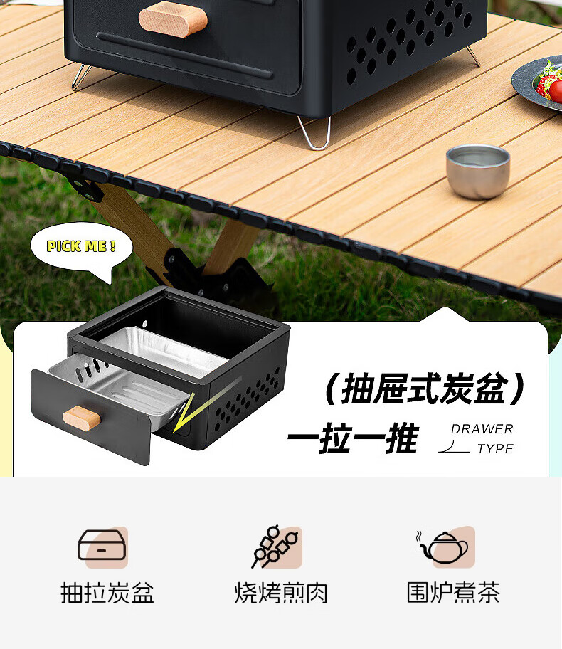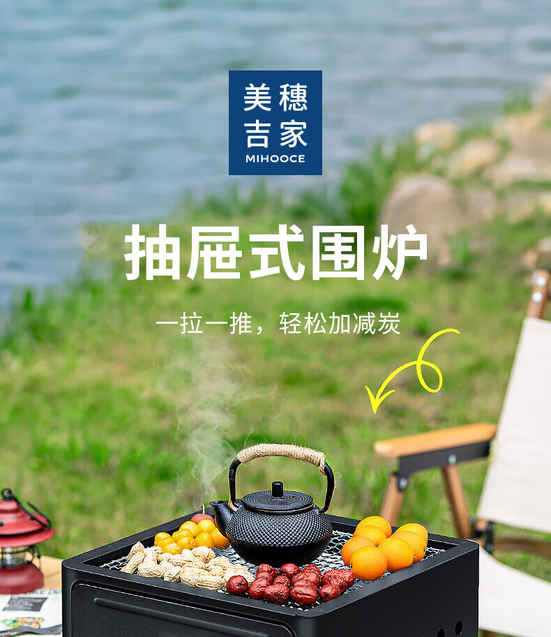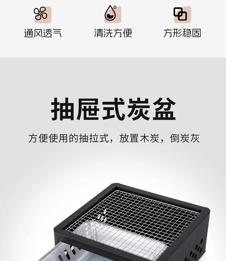 美穗吉家(mihooce)烧烤炉户外便携式烧烤架木炭烤肉炉露营野炊工具 抽屉式碳炉