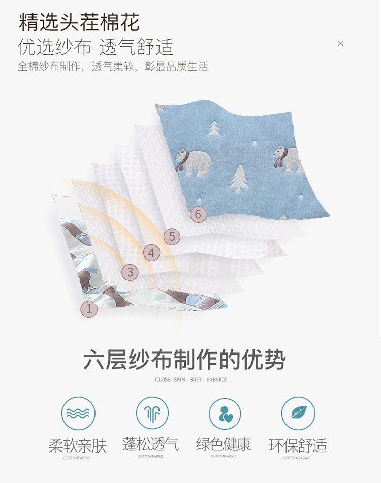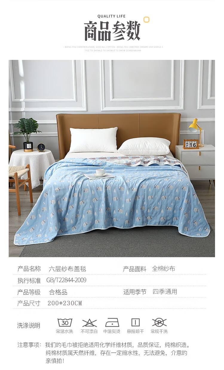 PLOVER啄木鸟家纺六层纱毛巾被 北极熊 200*230cm