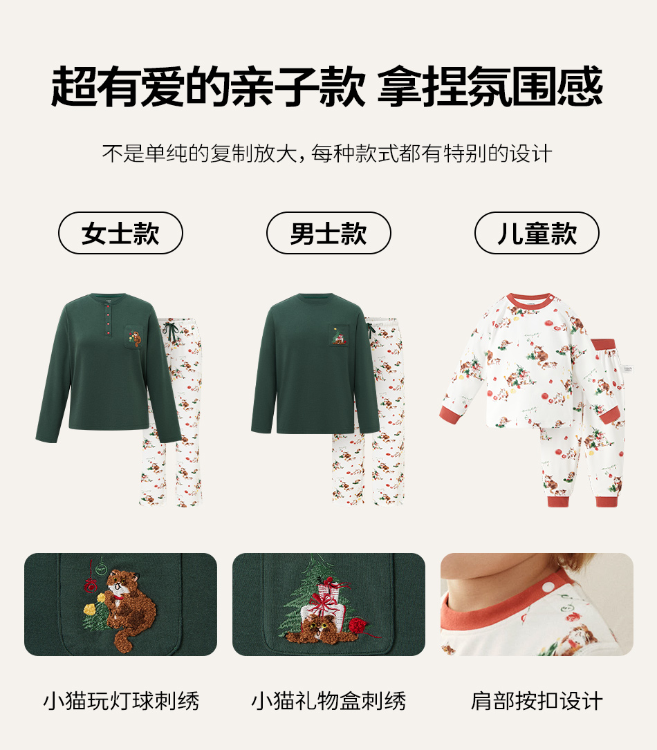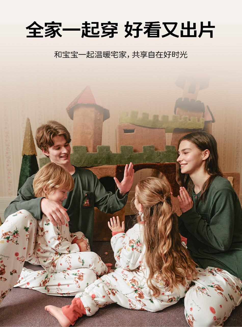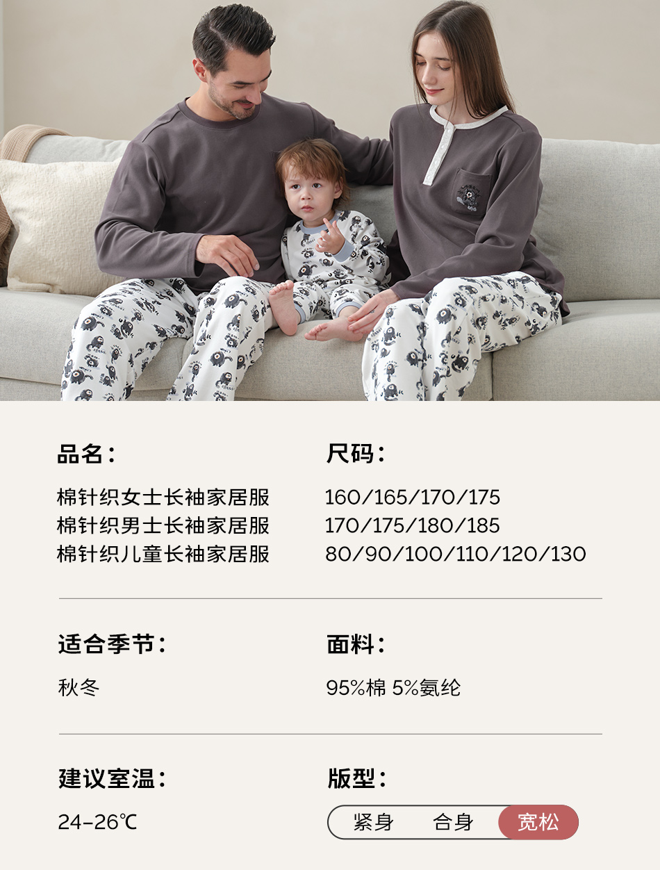 cutelife【亲子家居服】竹棉针织家居服套装亲子装一家三口宝宝睡衣杜杜亲子