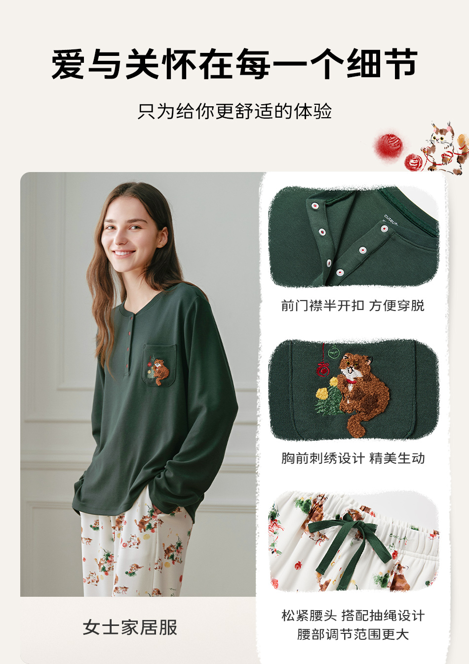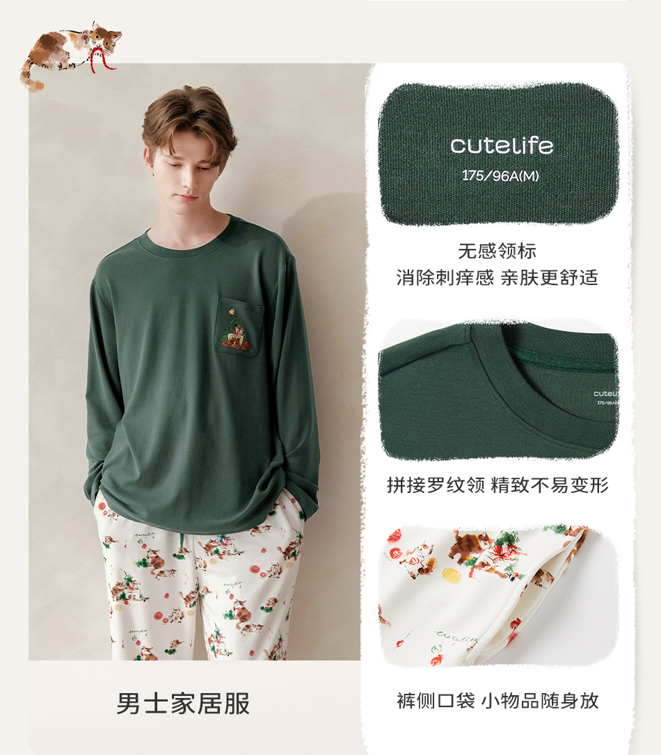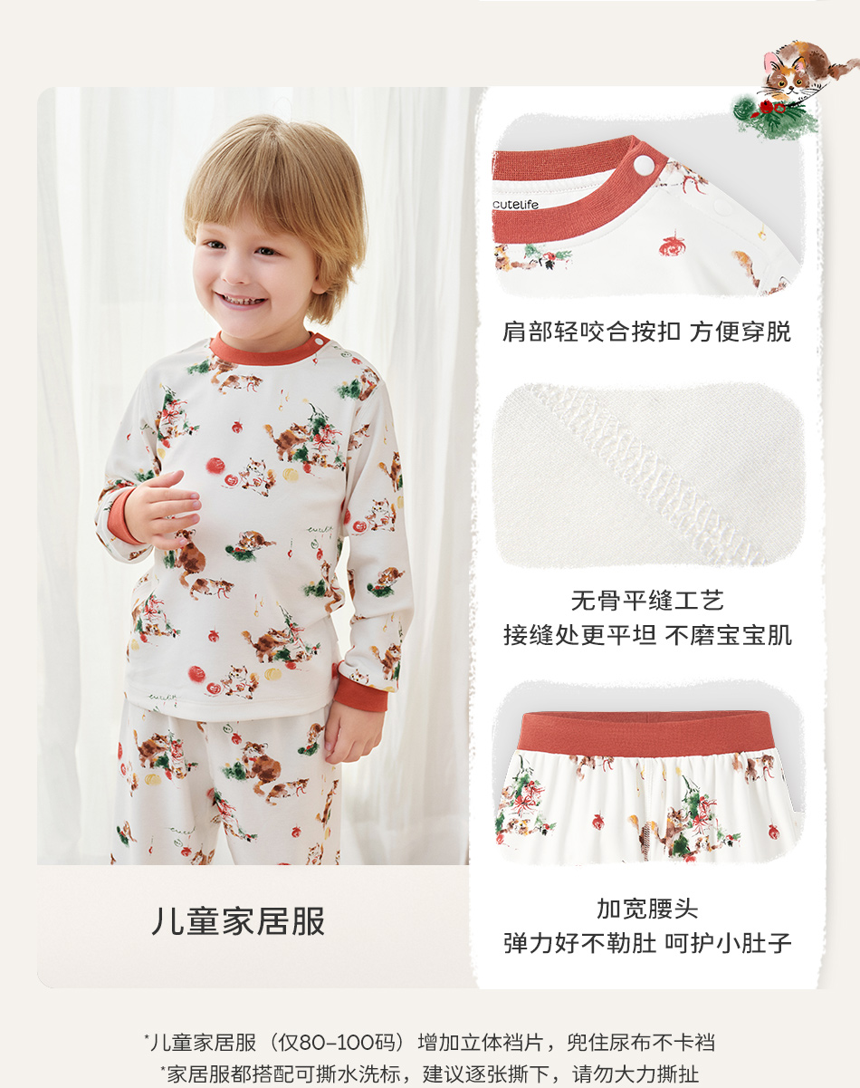 cutelife【亲子家居服】竹棉针织家居服套装亲子装一家三口宝宝睡衣杜杜亲子