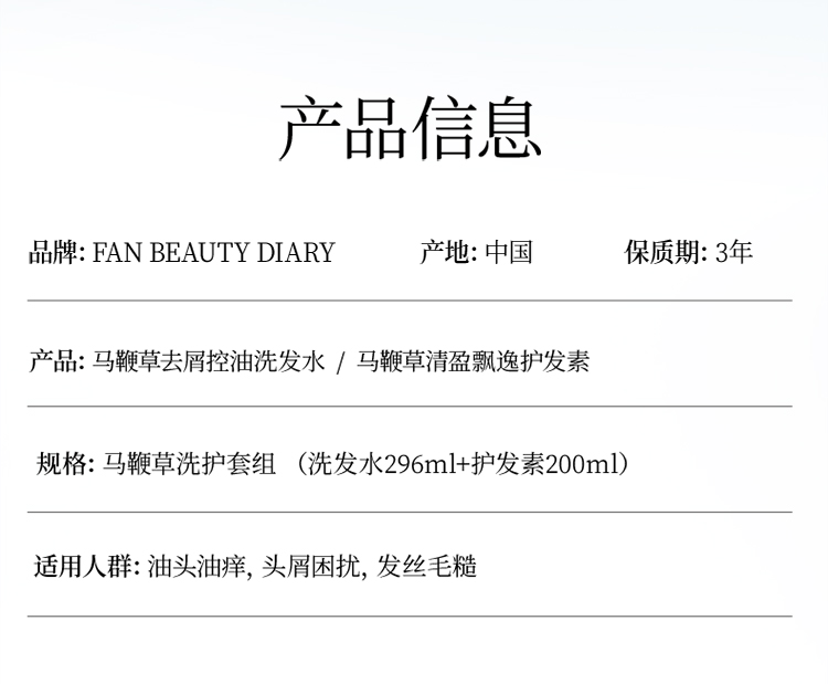 FAN BEAUTY DIARY马鞭草香氛洗发水296ml+护发素200ml