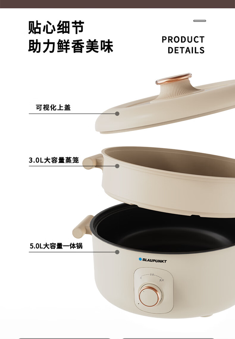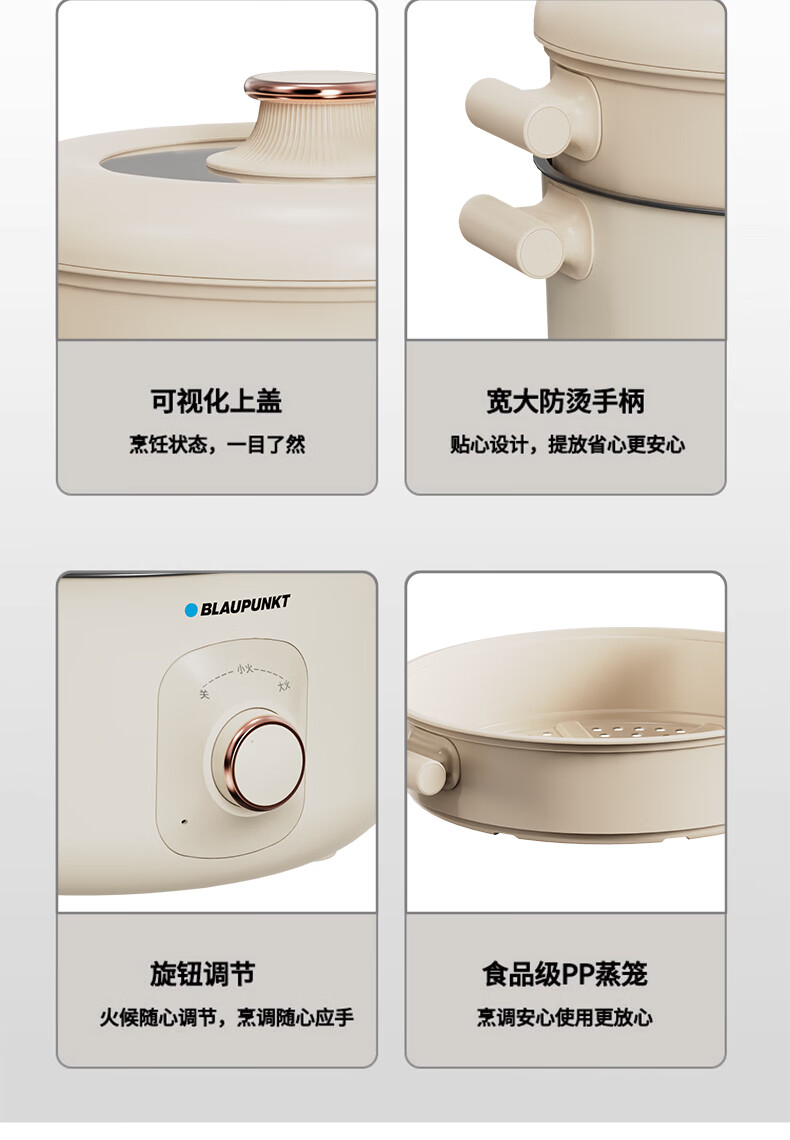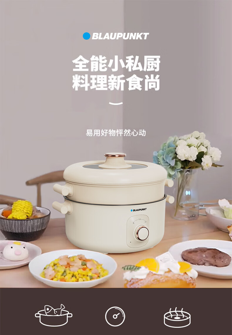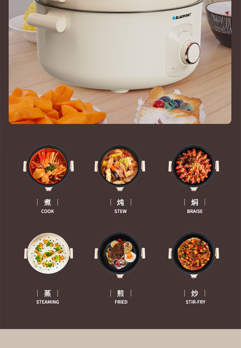 BLAUPUNKT 德国蓝宝 火锅家用大容量多功能电炒锅电火锅 分体设计锅身 BP-DHG135 铁灰色