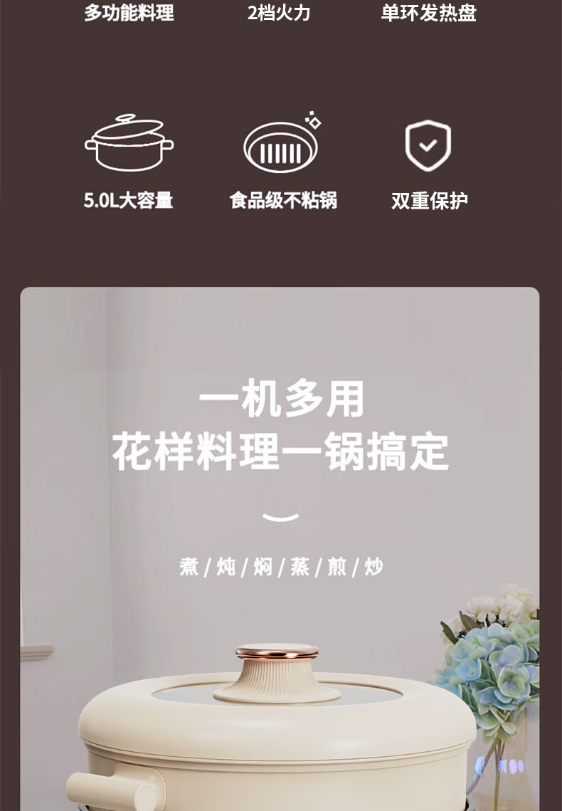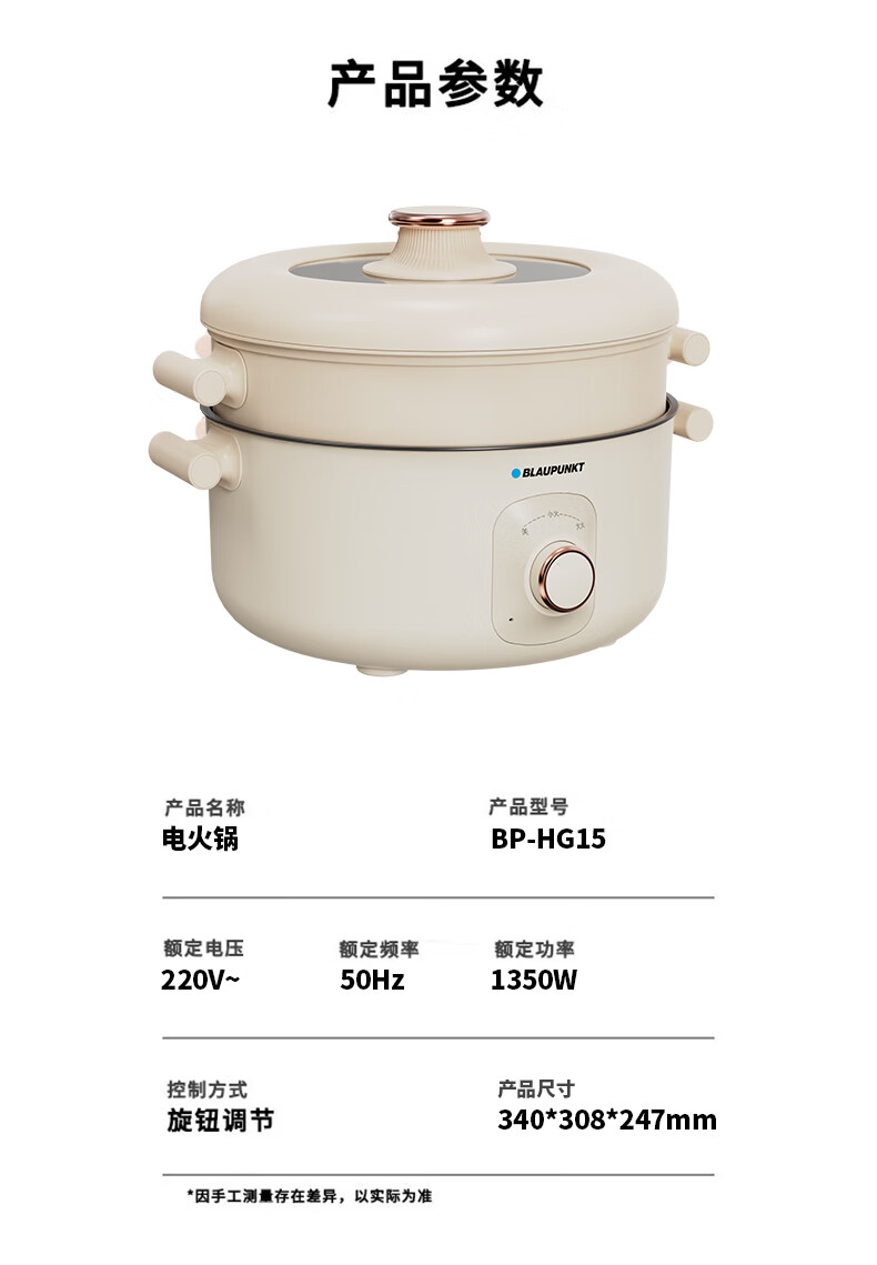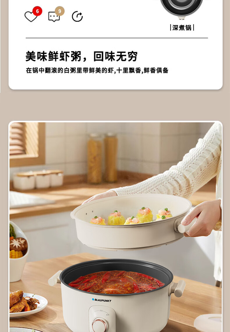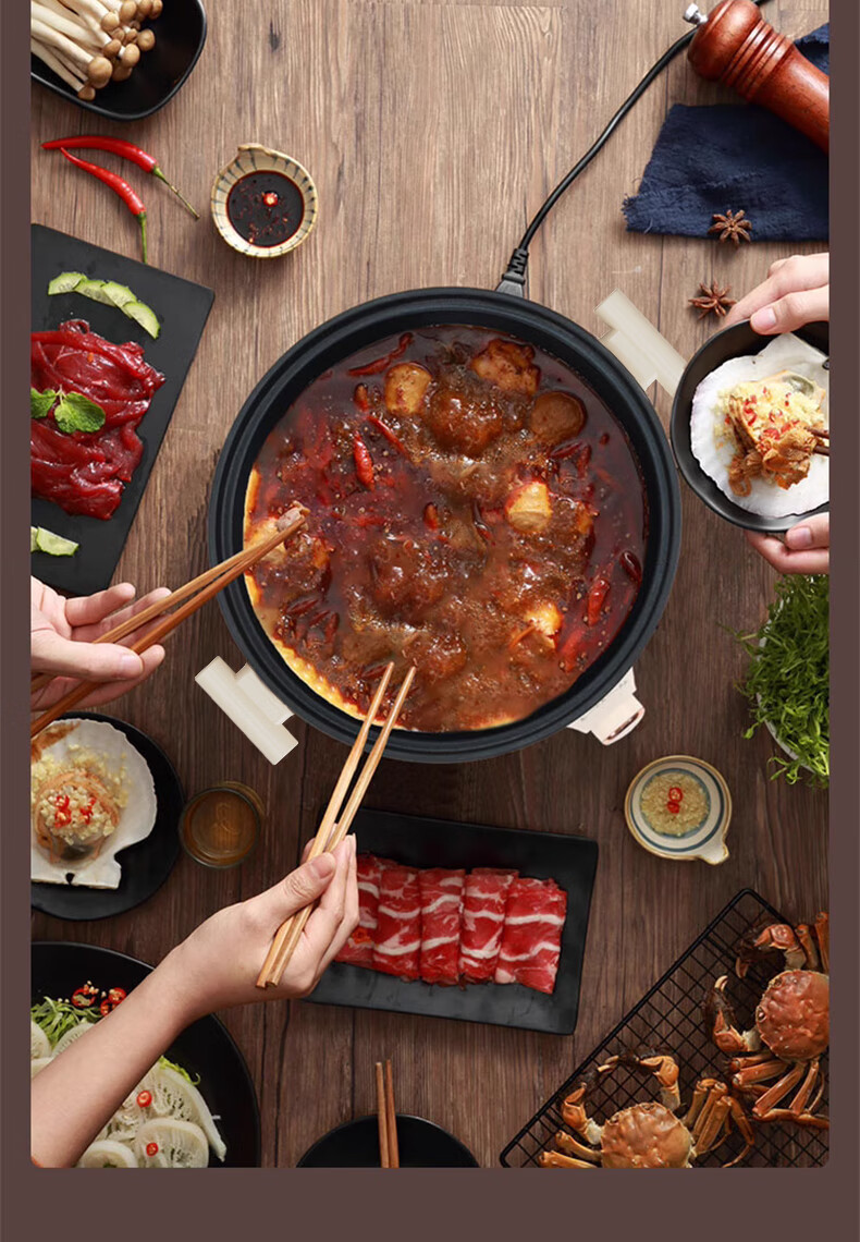 BLAUPUNKT 德国蓝宝 火锅家用大容量多功能电炒锅电火锅 分体设计锅身 BP-DHG135 铁灰色