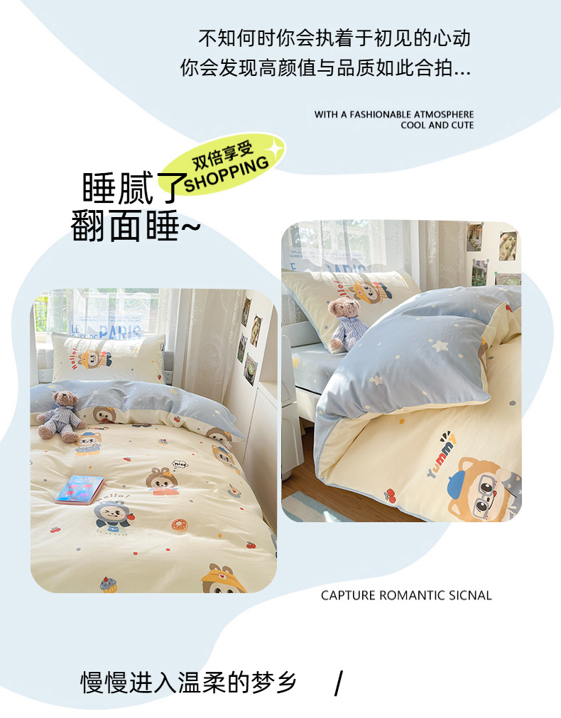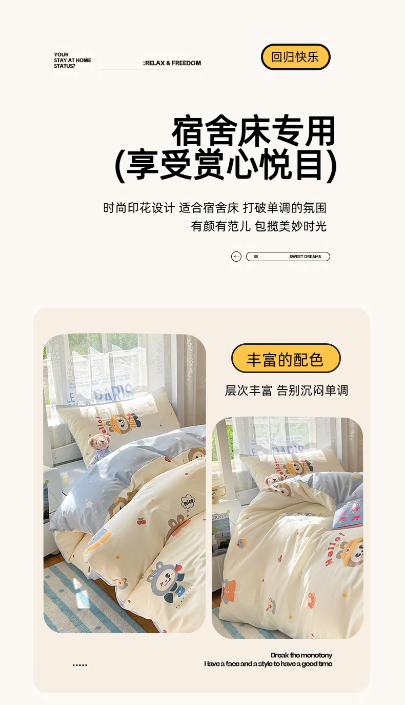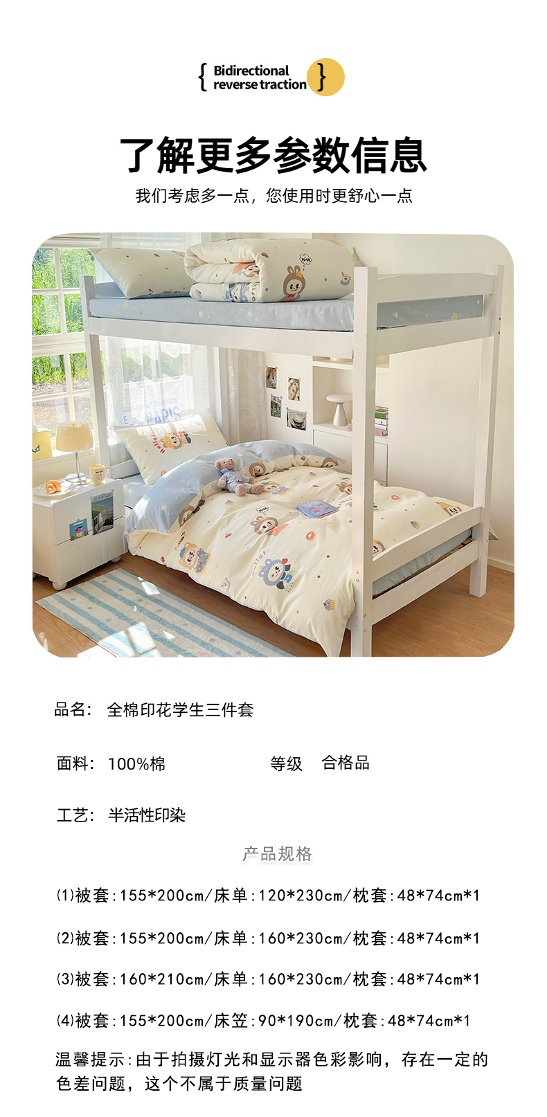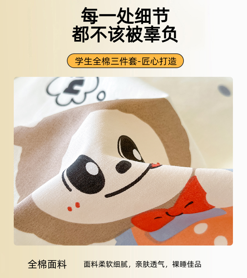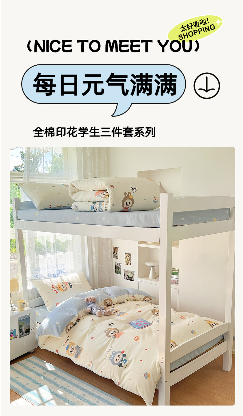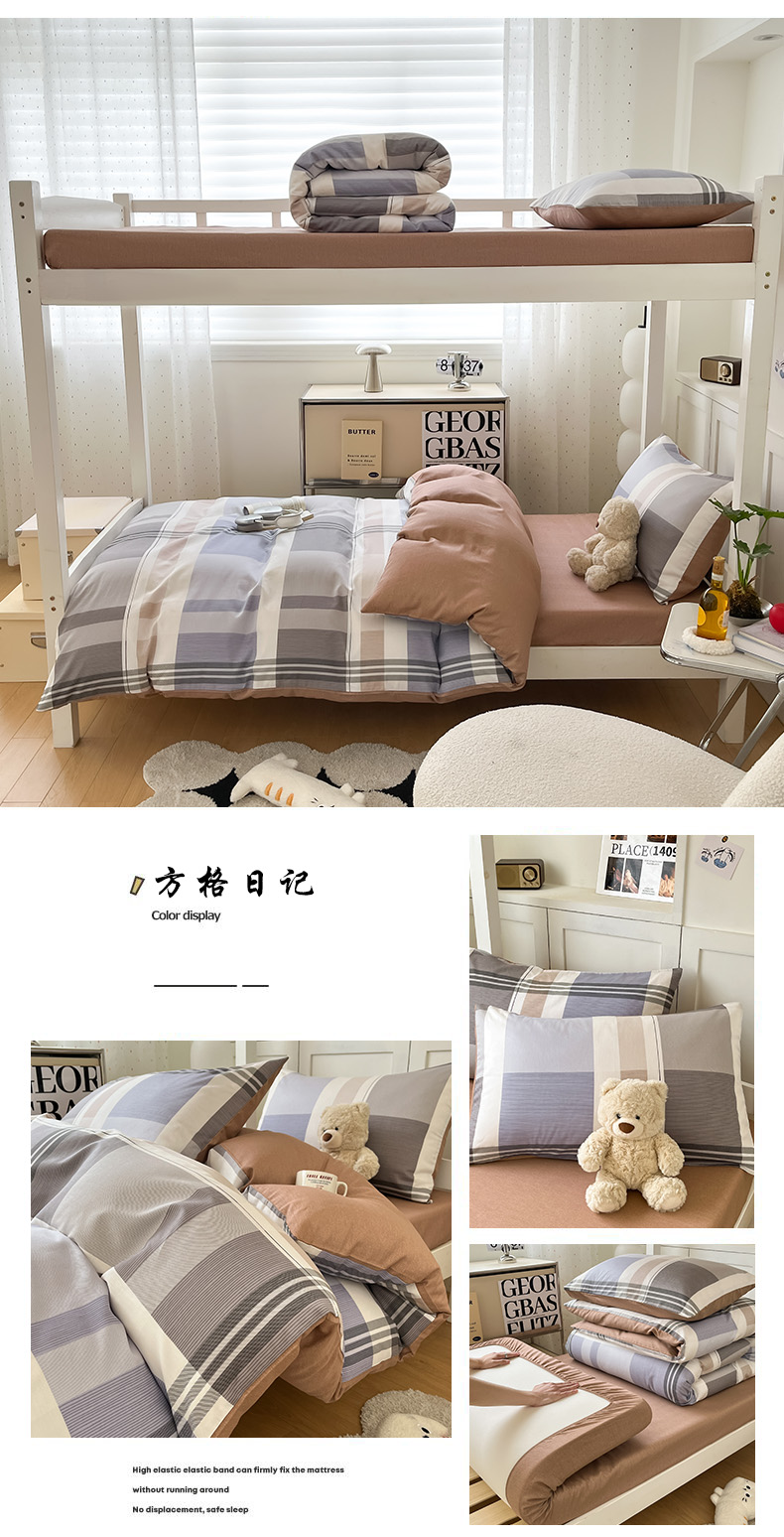 自然醒全棉学生季三件套大学生宿舍床上用品纯棉套件被套单人床单枕套NH165