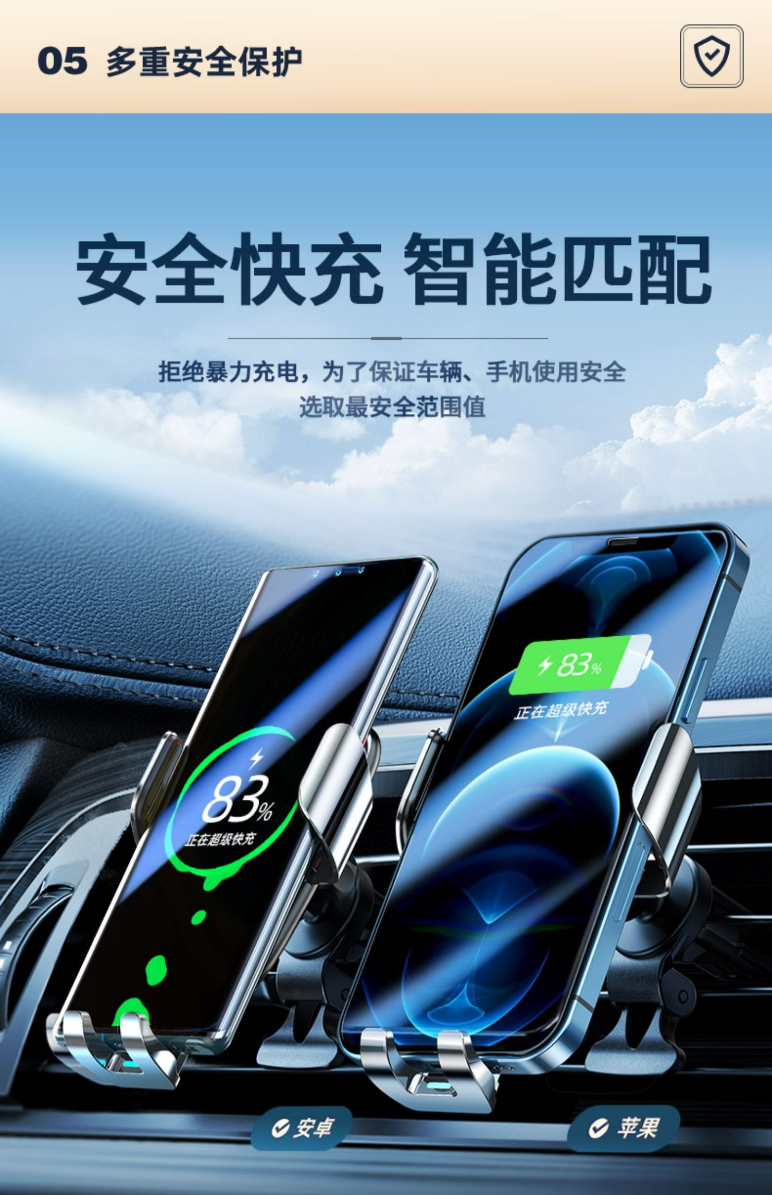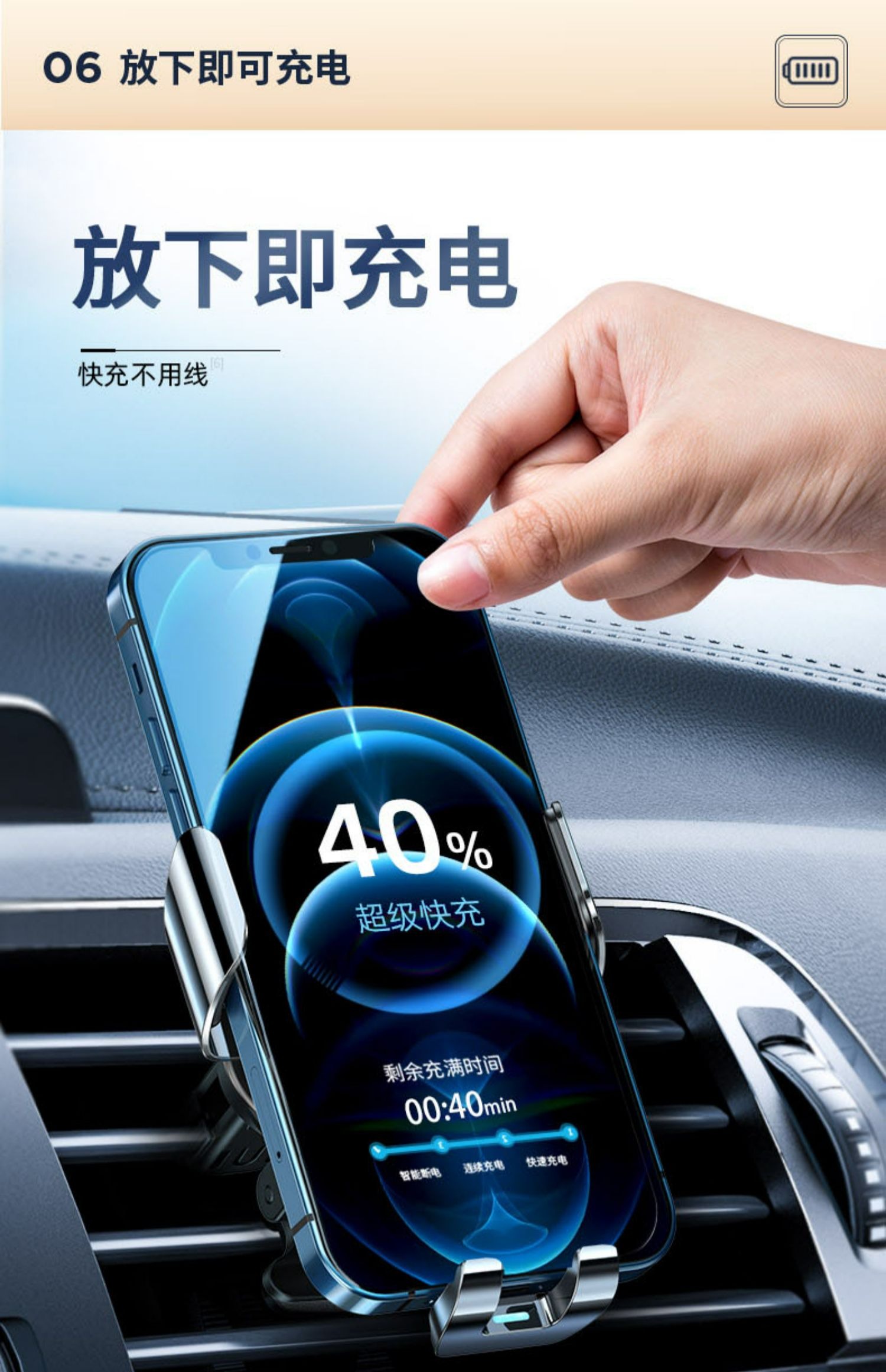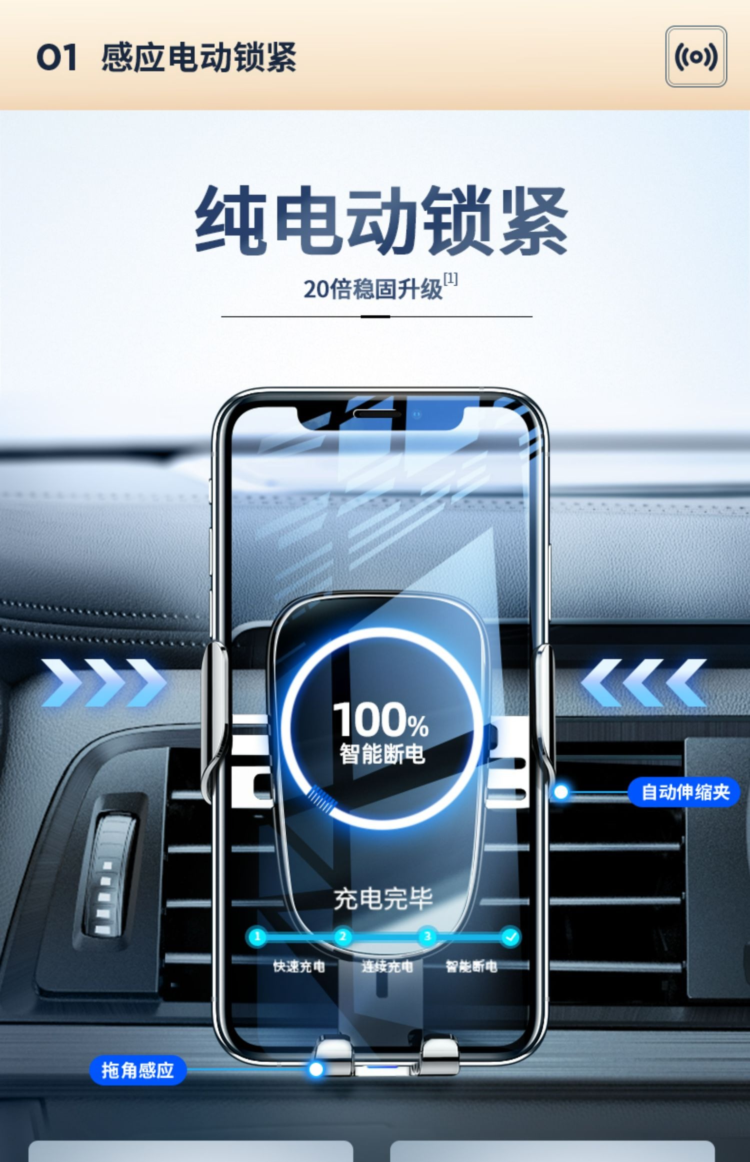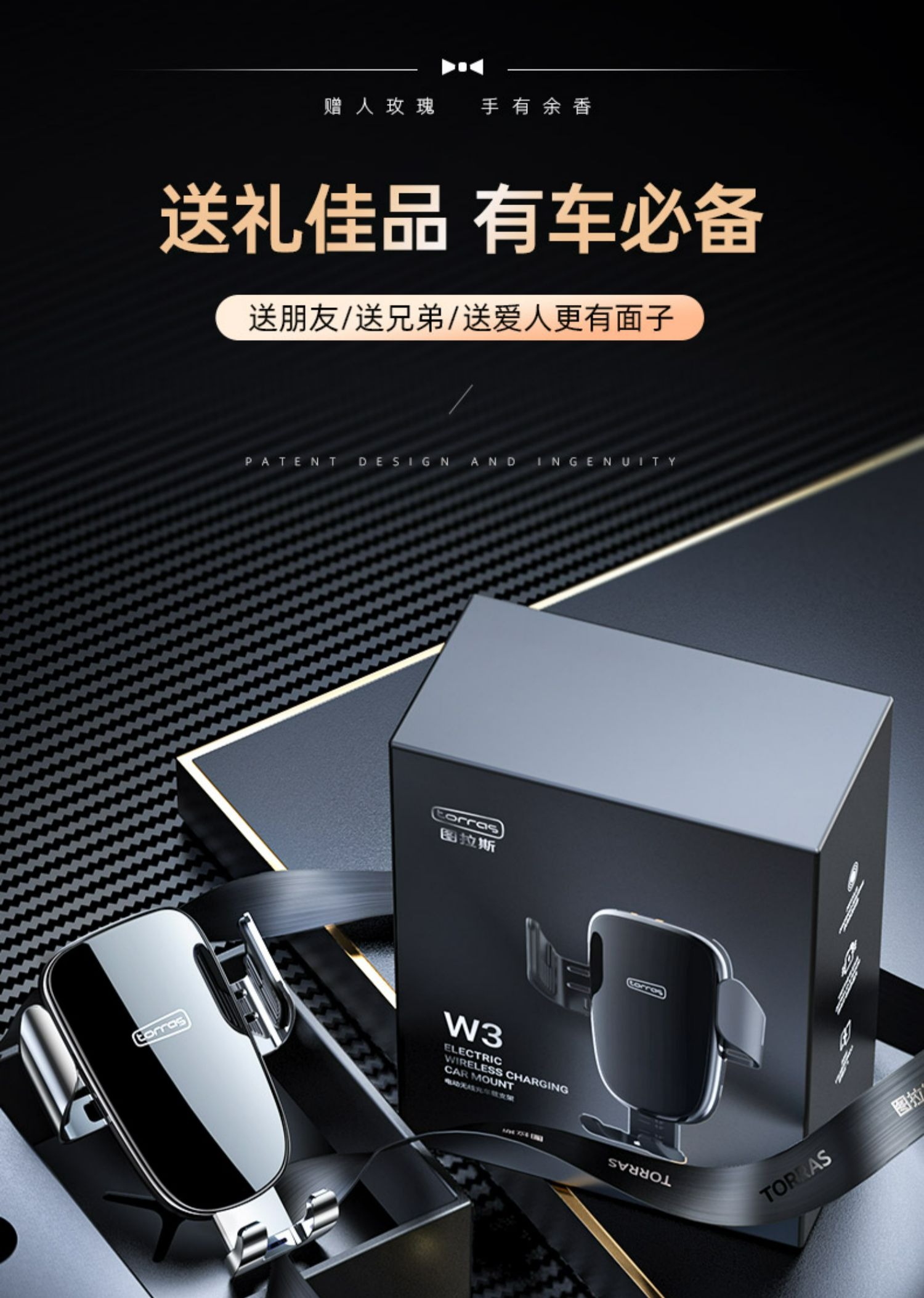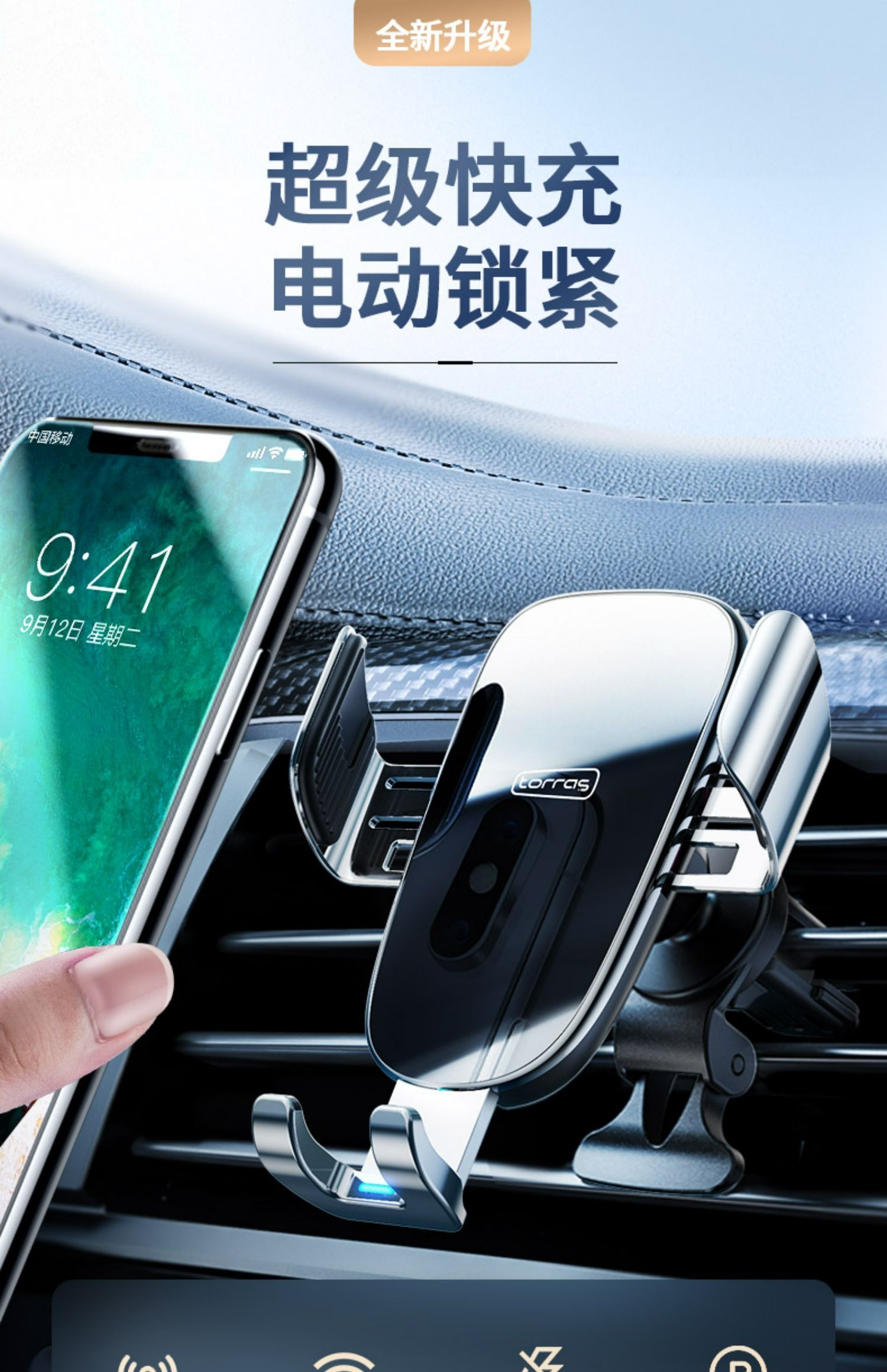 图拉斯 W3电动无线充车载支架(15W带车充)
