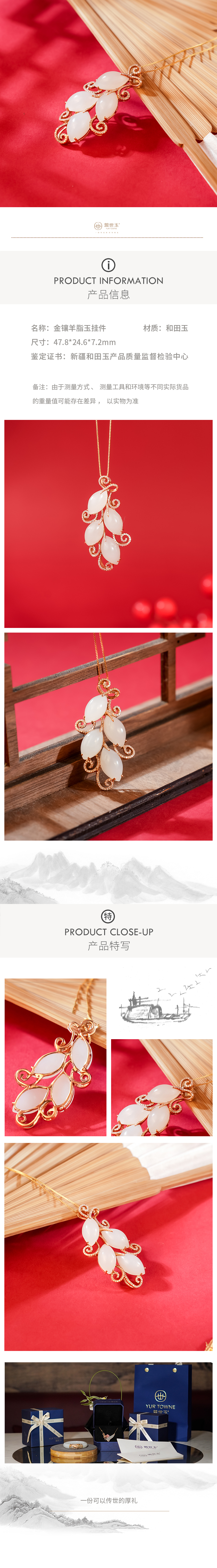 新疆国玉盟世玉【金枝玉叶】金镶羊脂玉吊坠【带证书·顺丰物流】