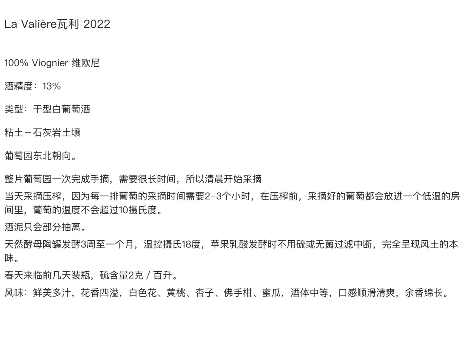【自然酒】瓦利白葡萄酒2022年
