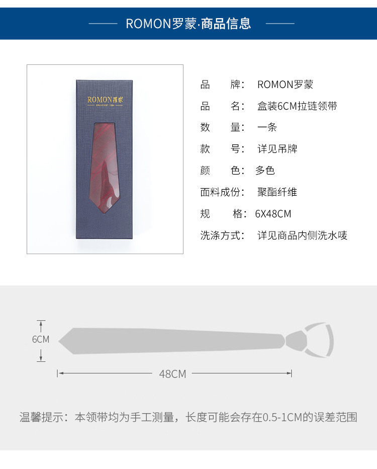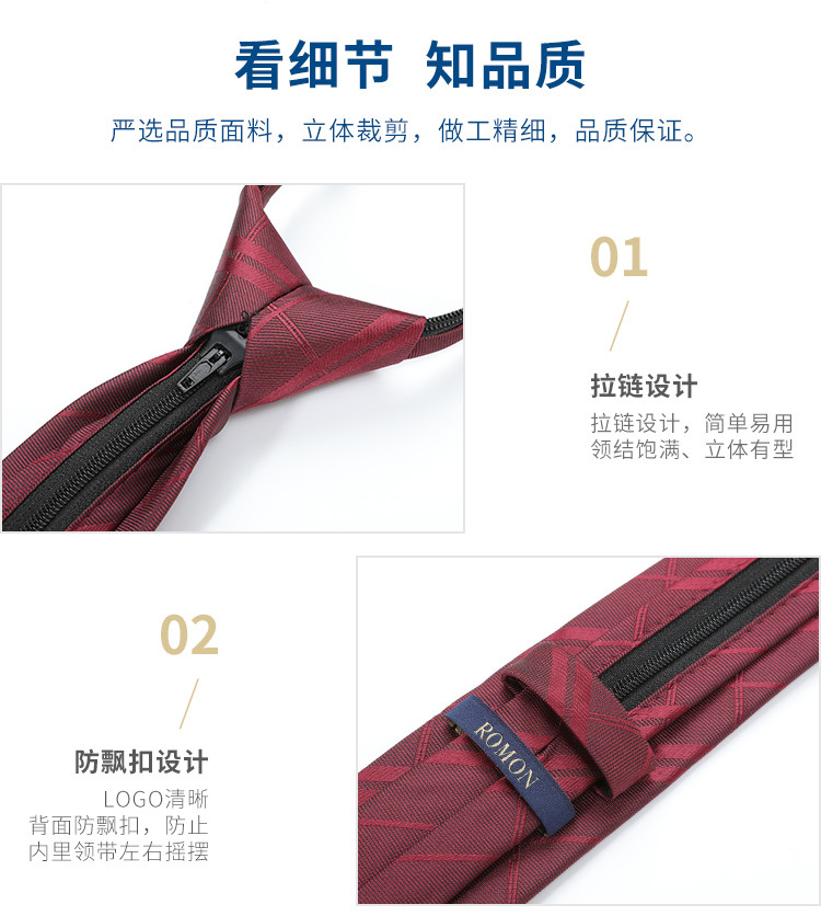 【礼盒款】罗蒙男士领带婚礼婚庆百搭斜纹简约方便6厘米拉链领带
