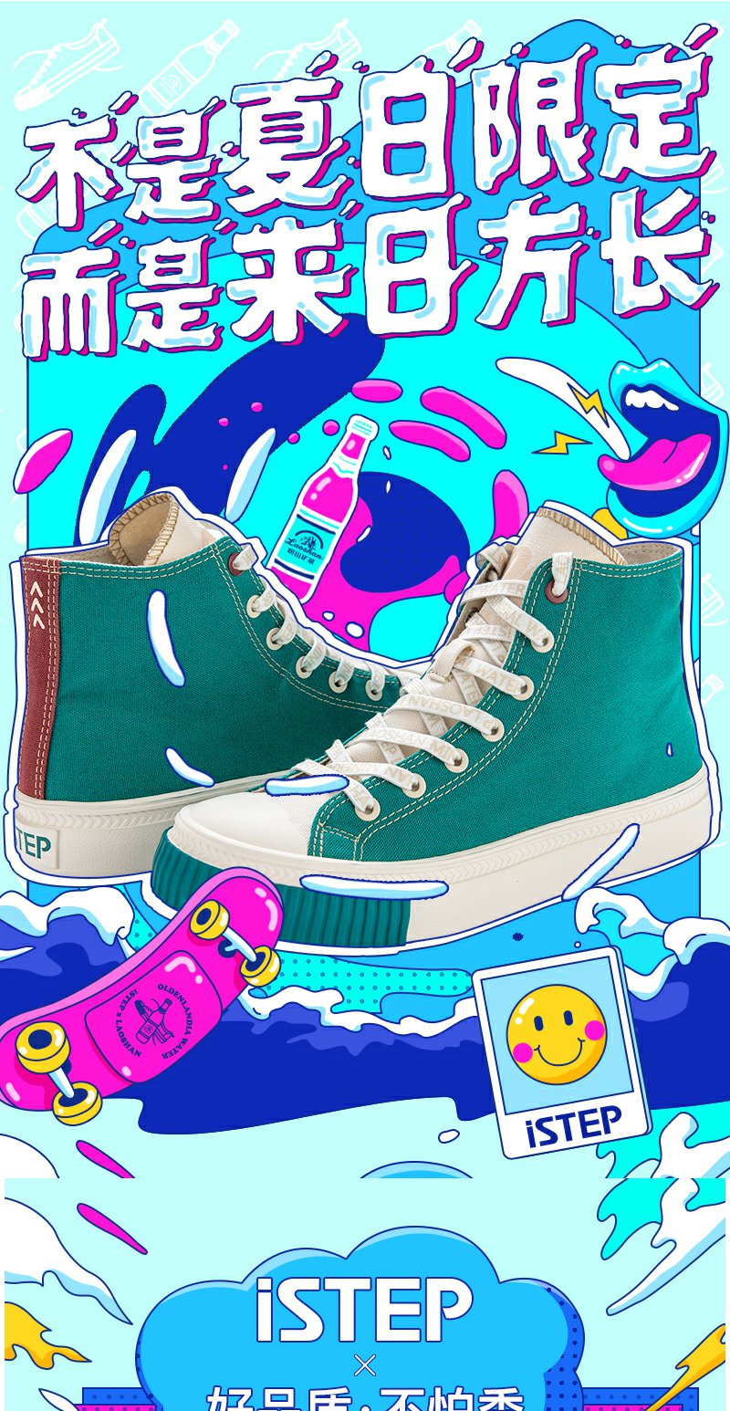 iSTEP&白花蛇草水联名款高帮板鞋国潮板鞋