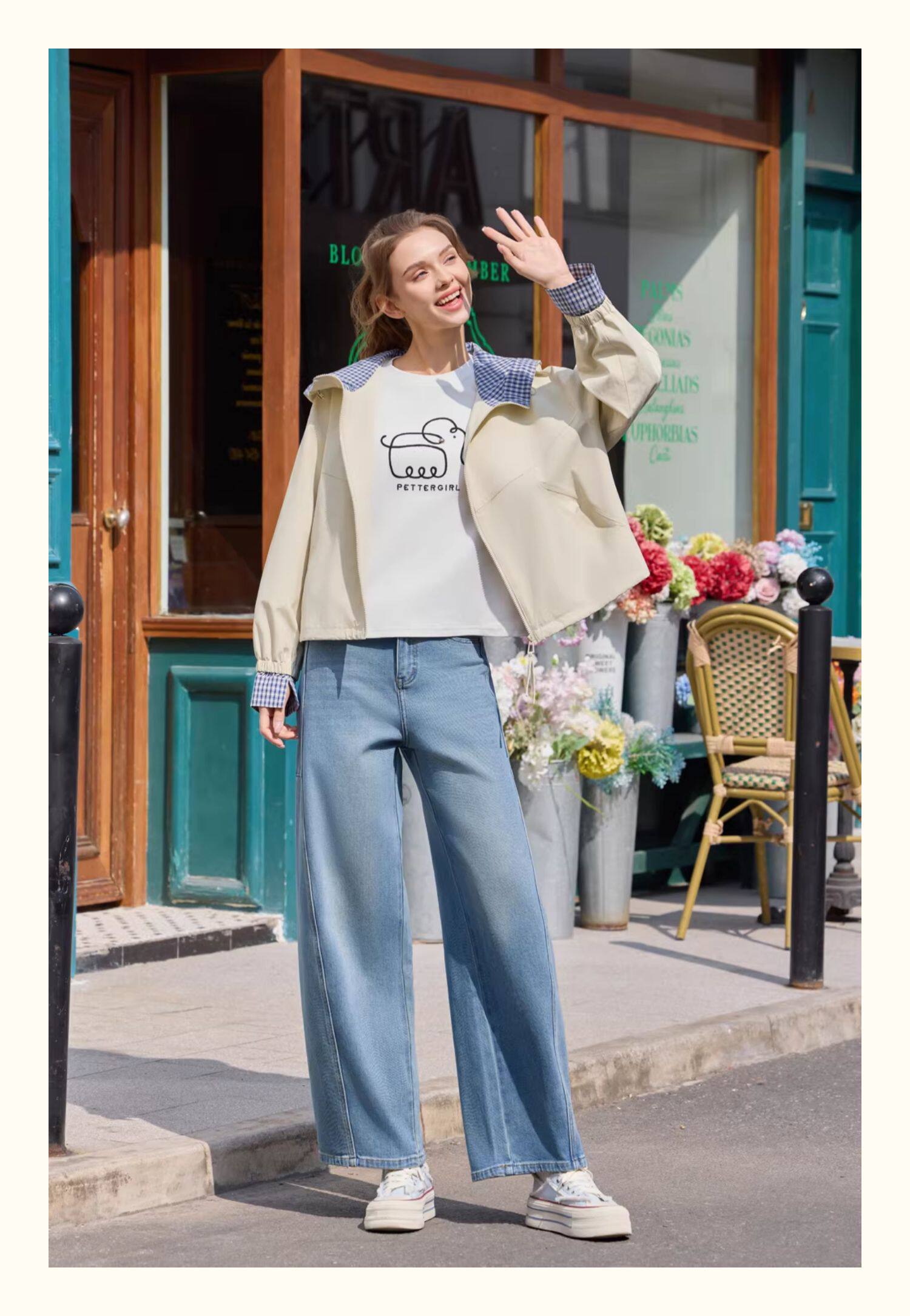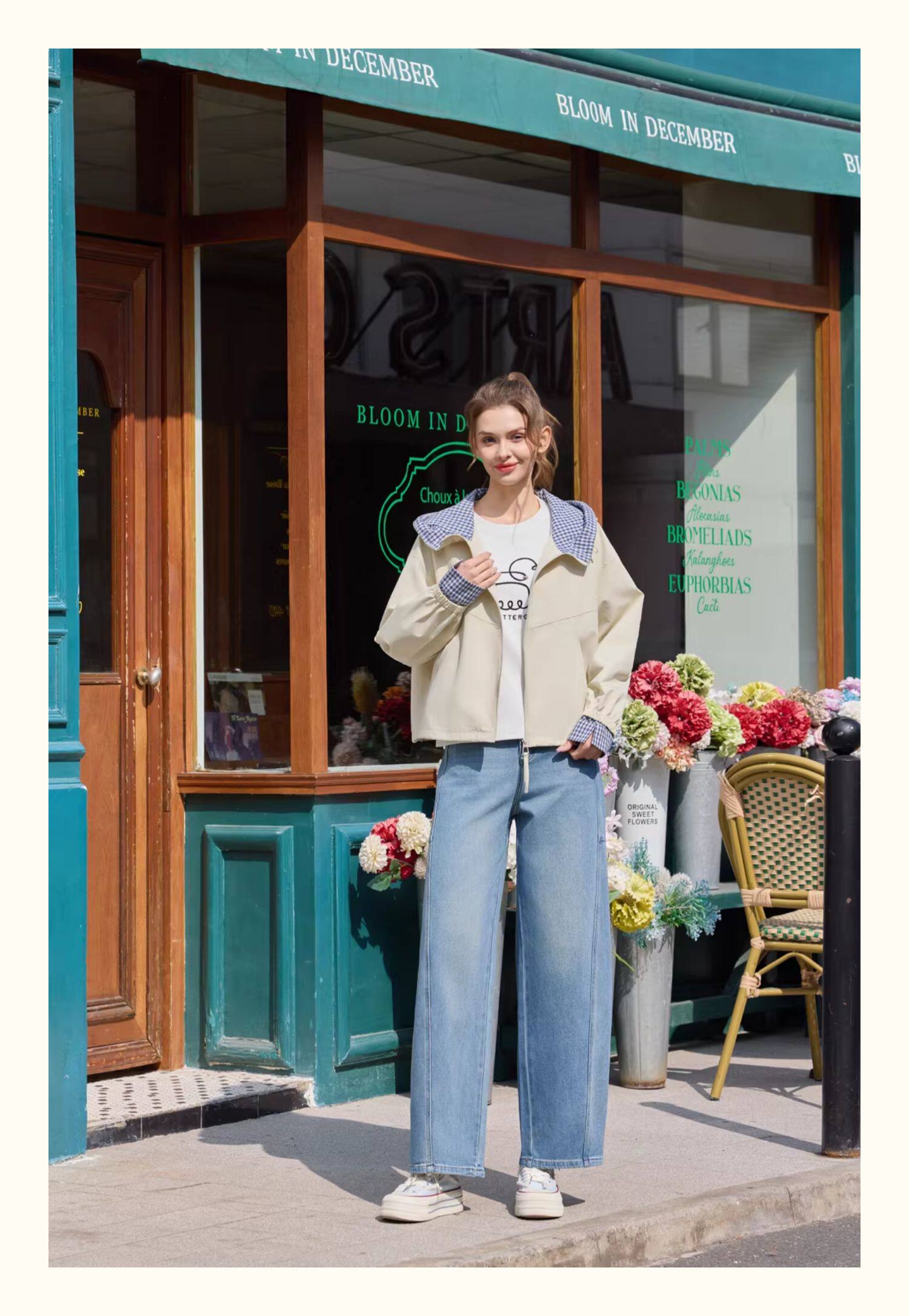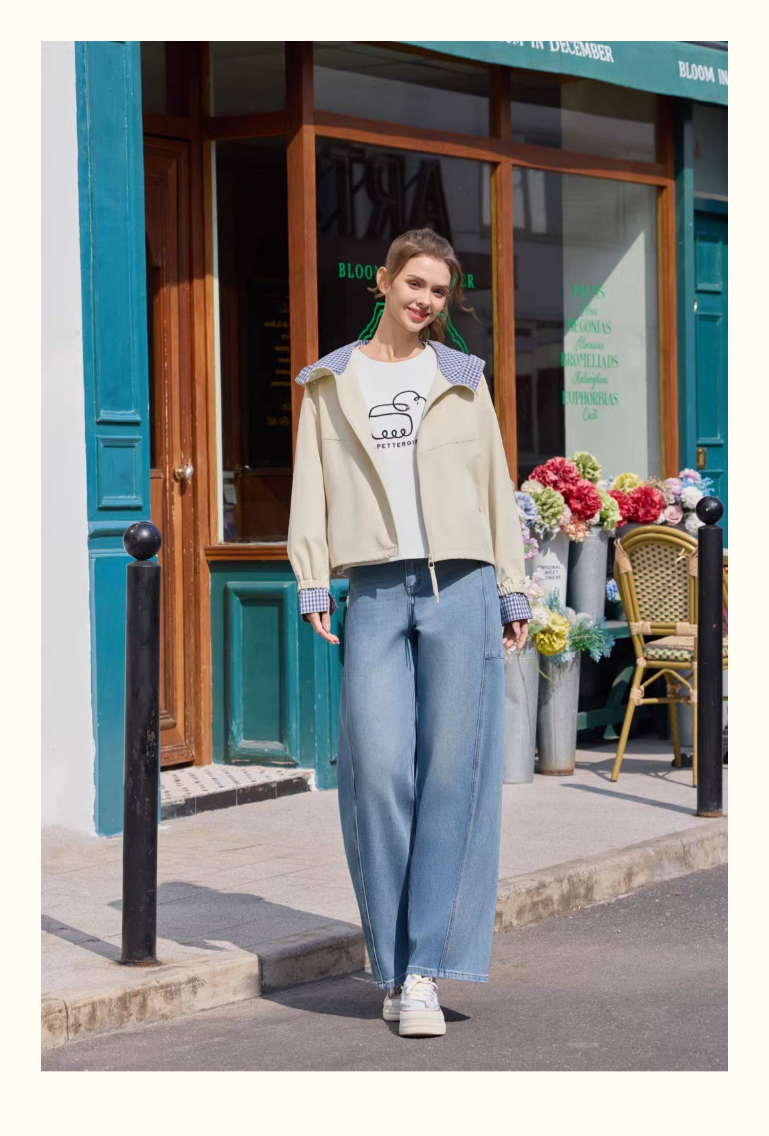 半身缘女裤 春季时尚复古香蕉裤型宽松洗水牛仔裤261102P10120189