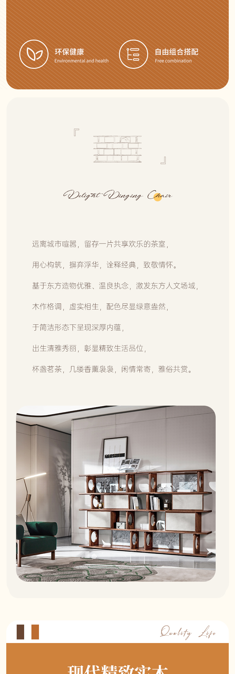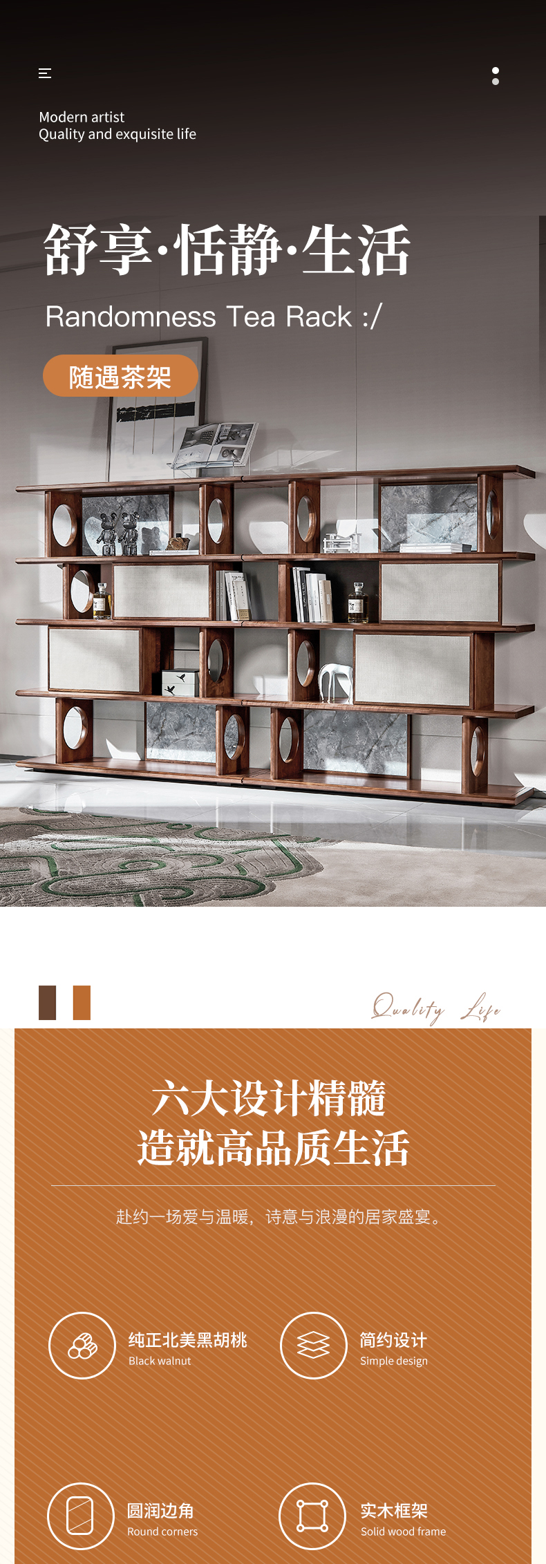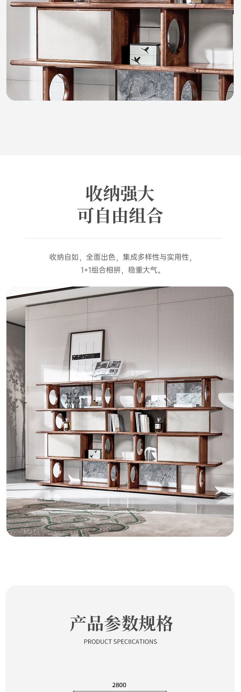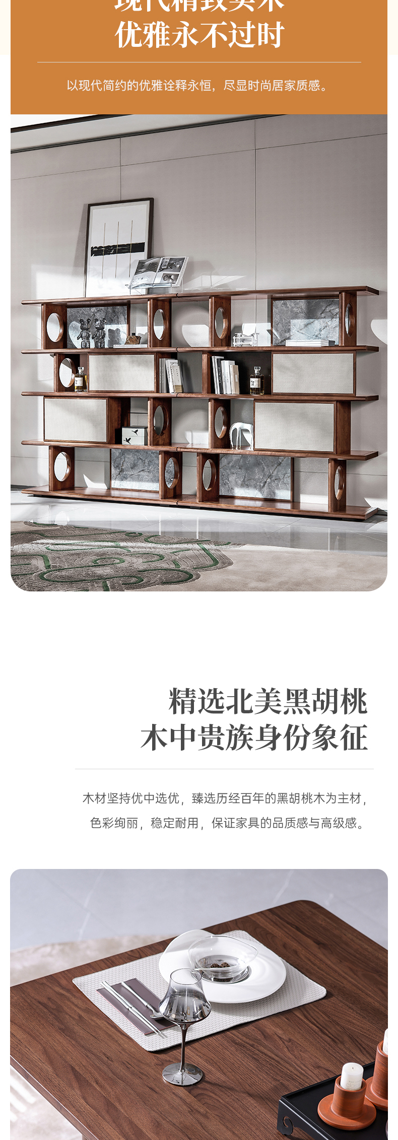 【现代风-CY521茶柜】现代风/茶室/北美黑胡桃/实木+岩板茶柜