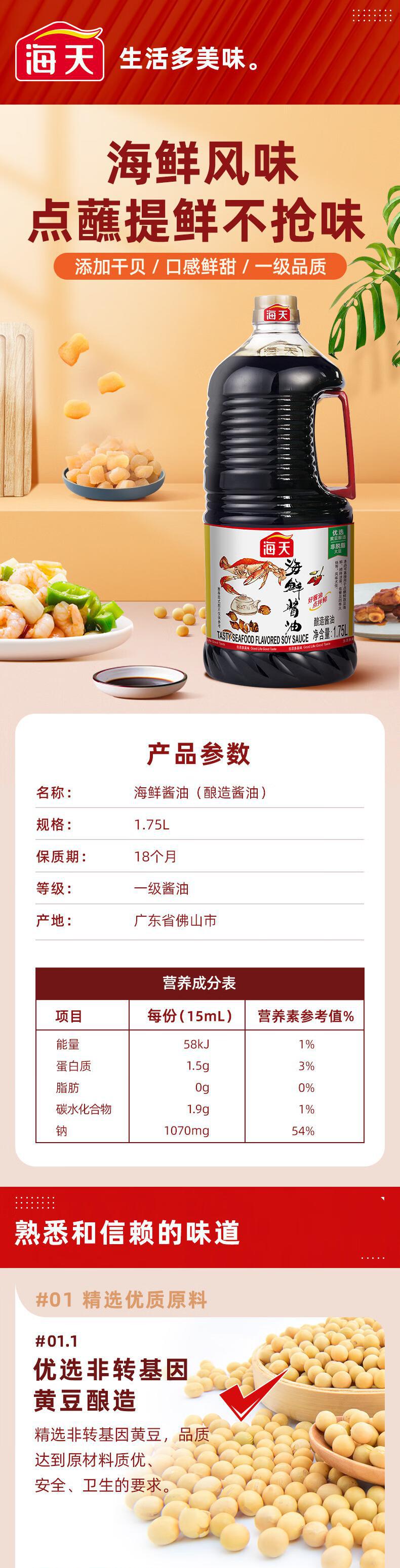 海天 海鲜酱油1.75L*1瓶新鲜健康美味 KJDF-20240119-0005