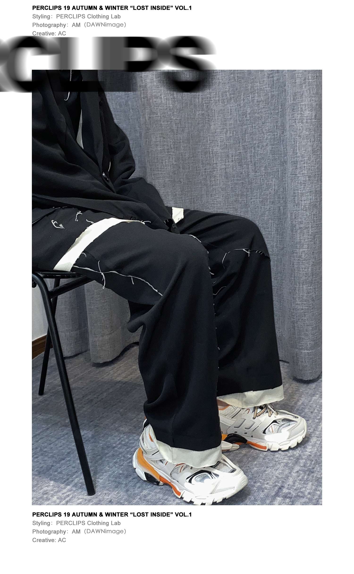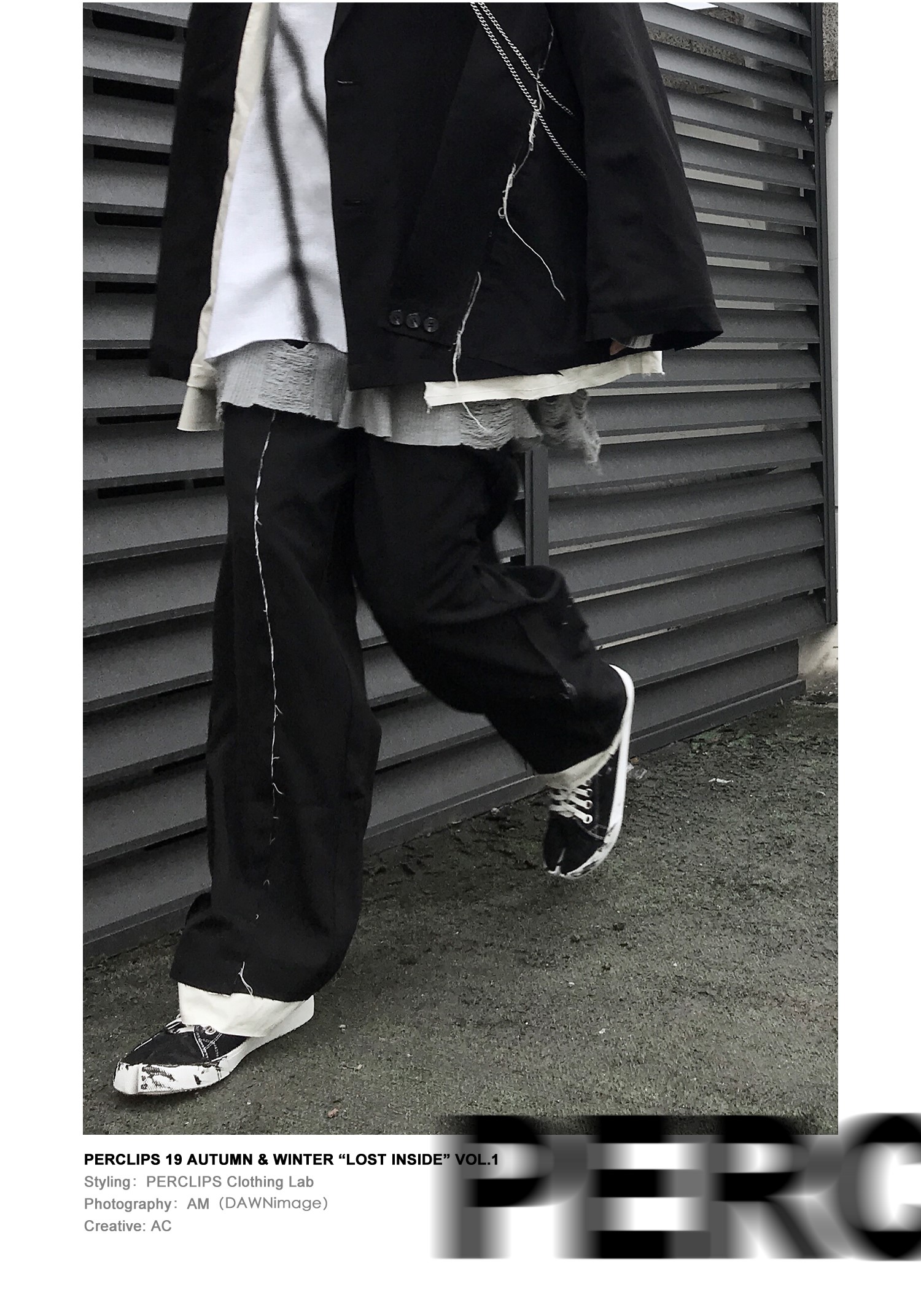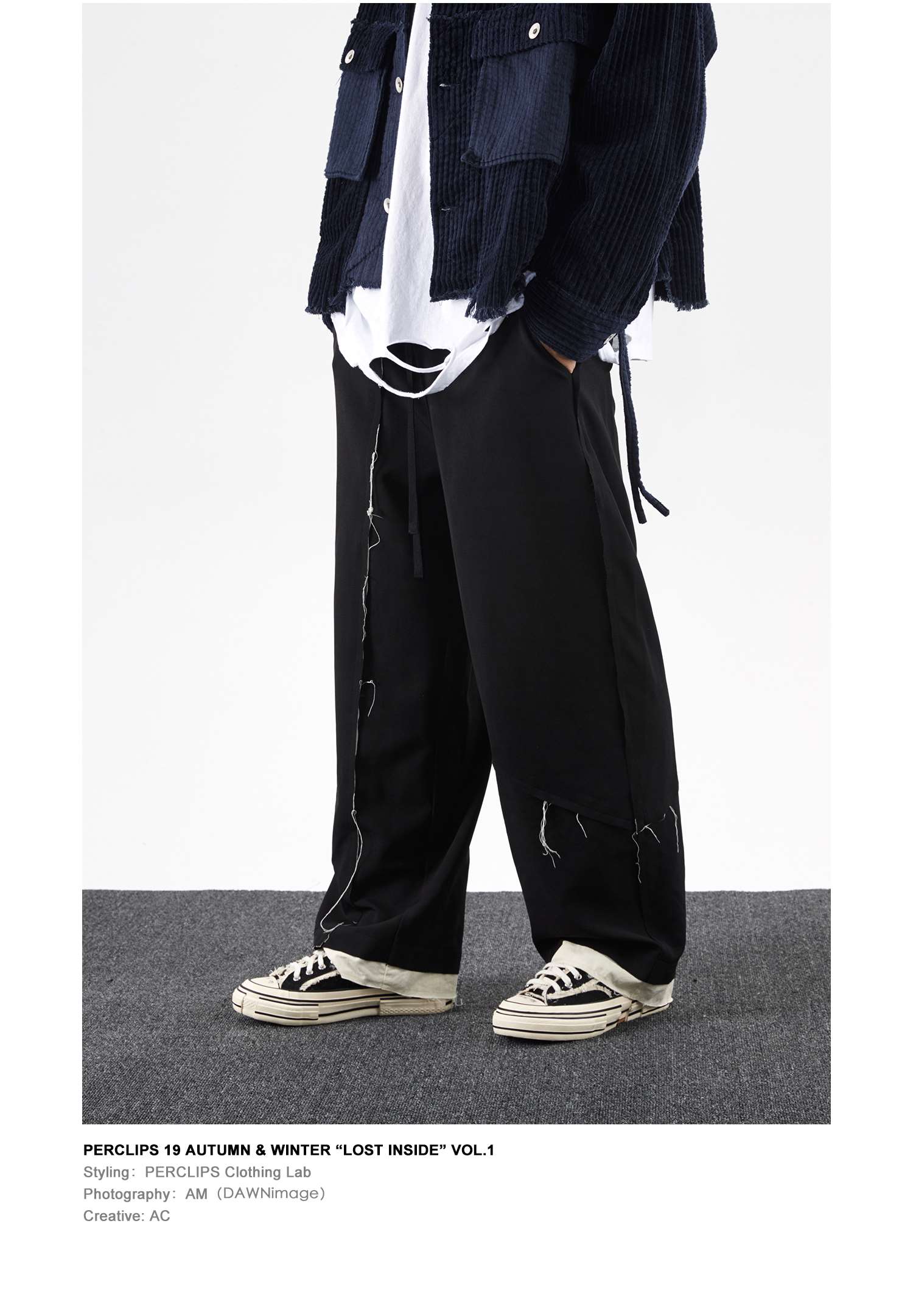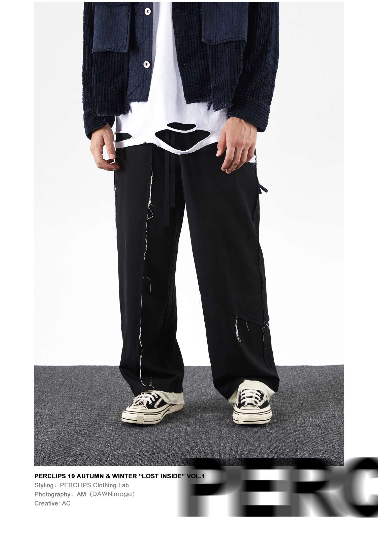 PCLP(PERCLIPS) 解构破坏毛边拼接西裤