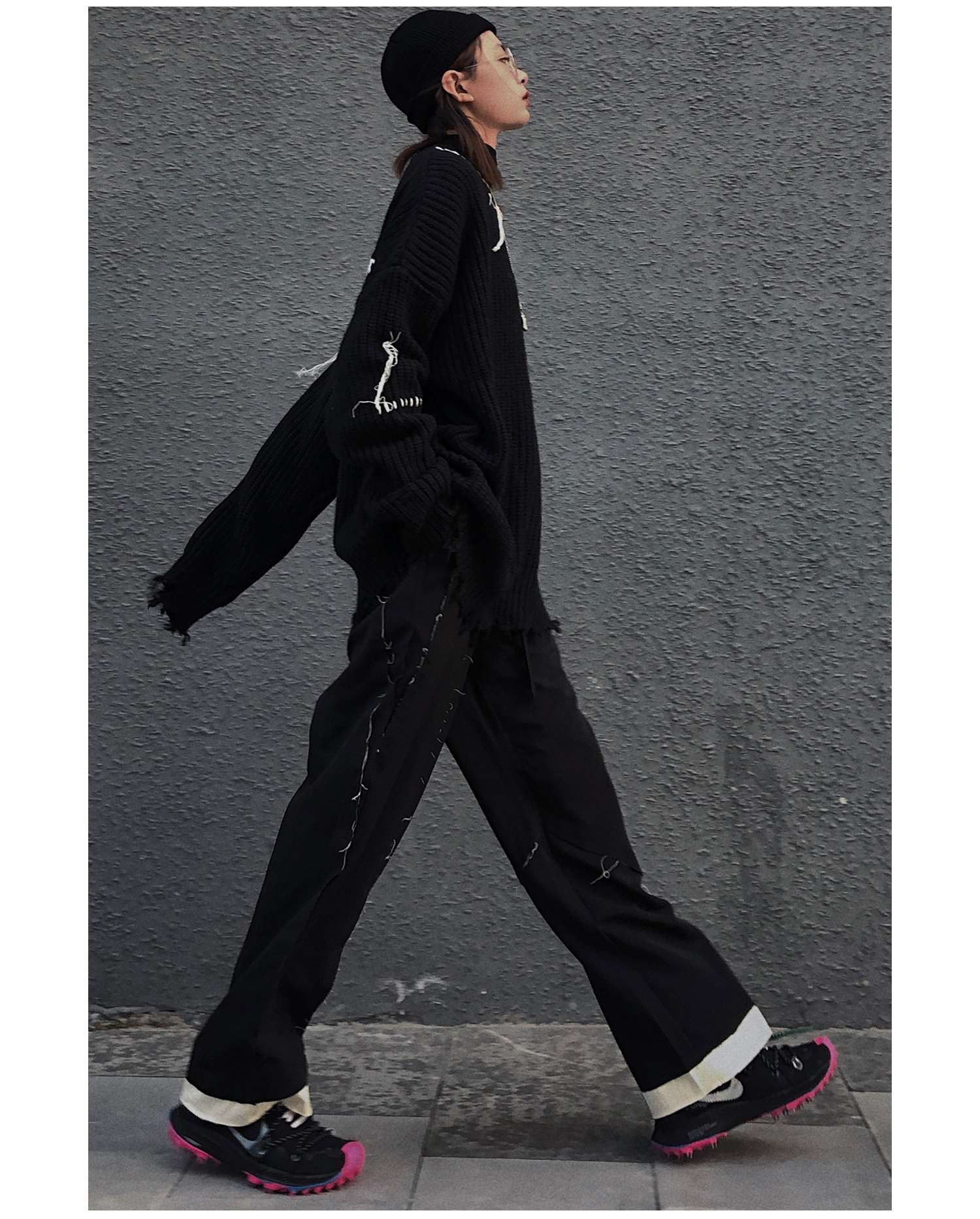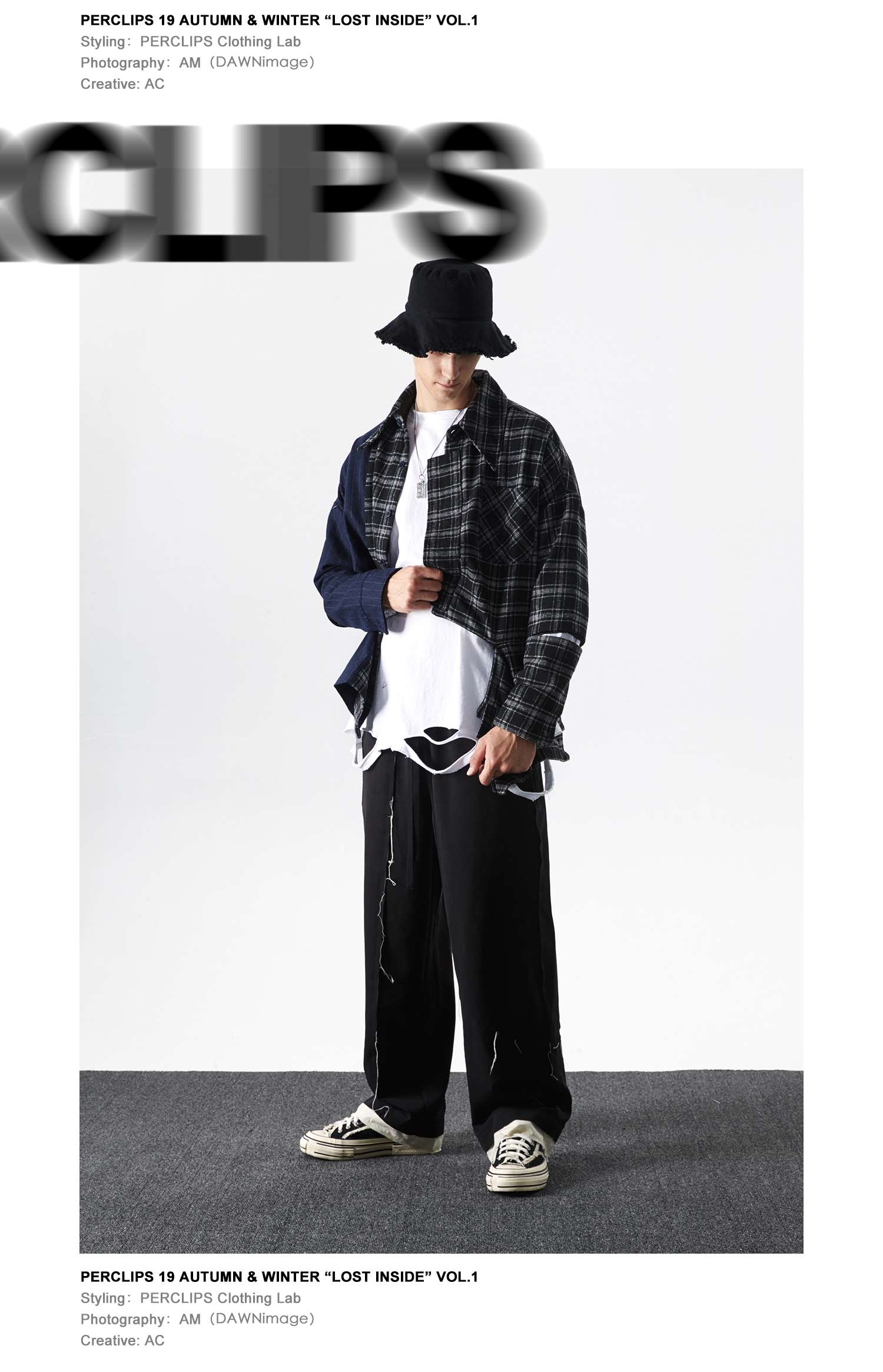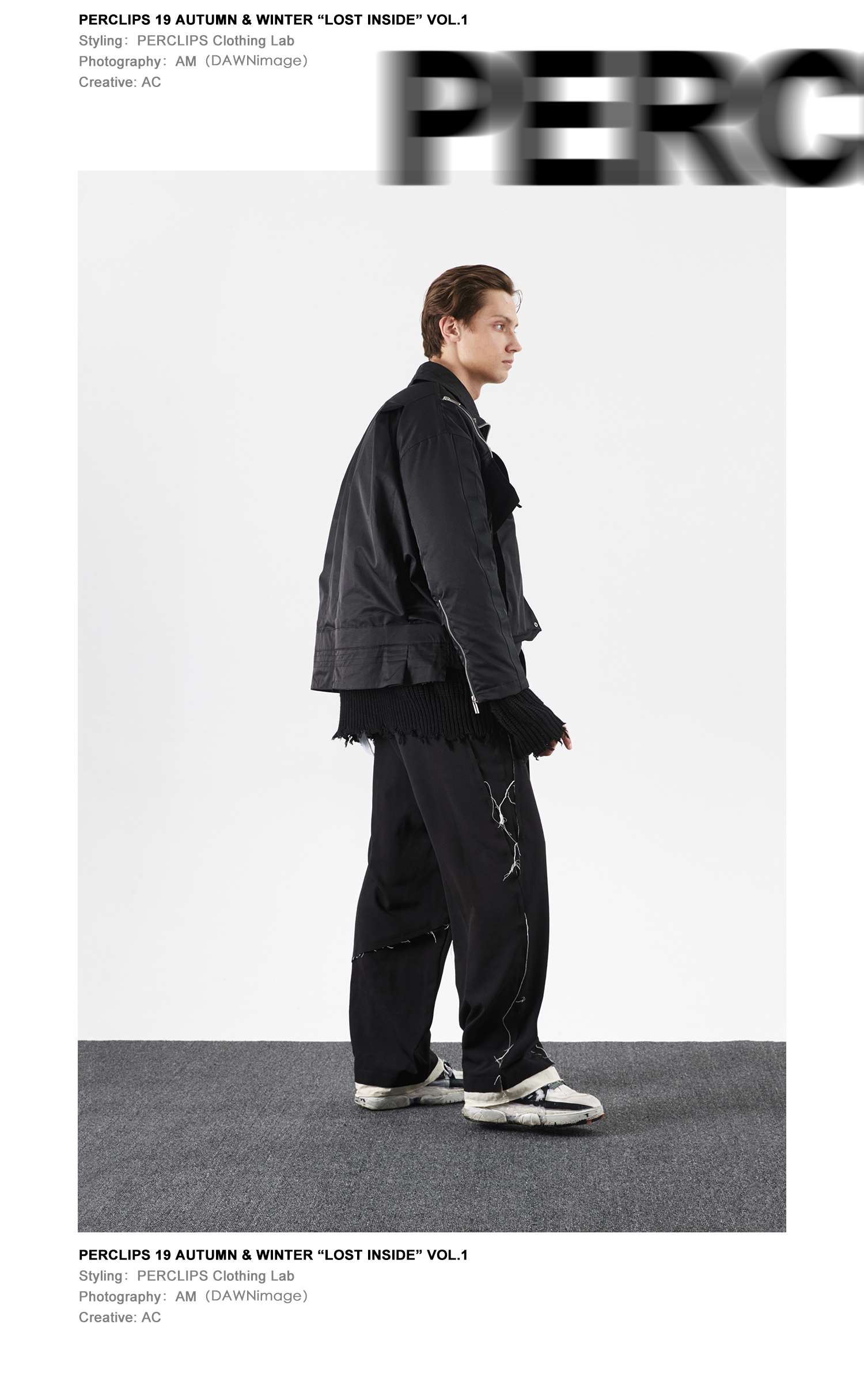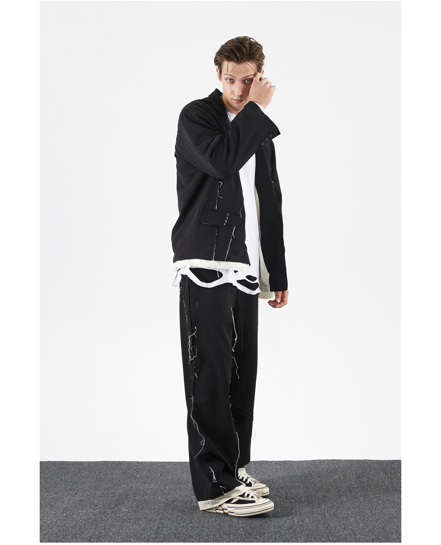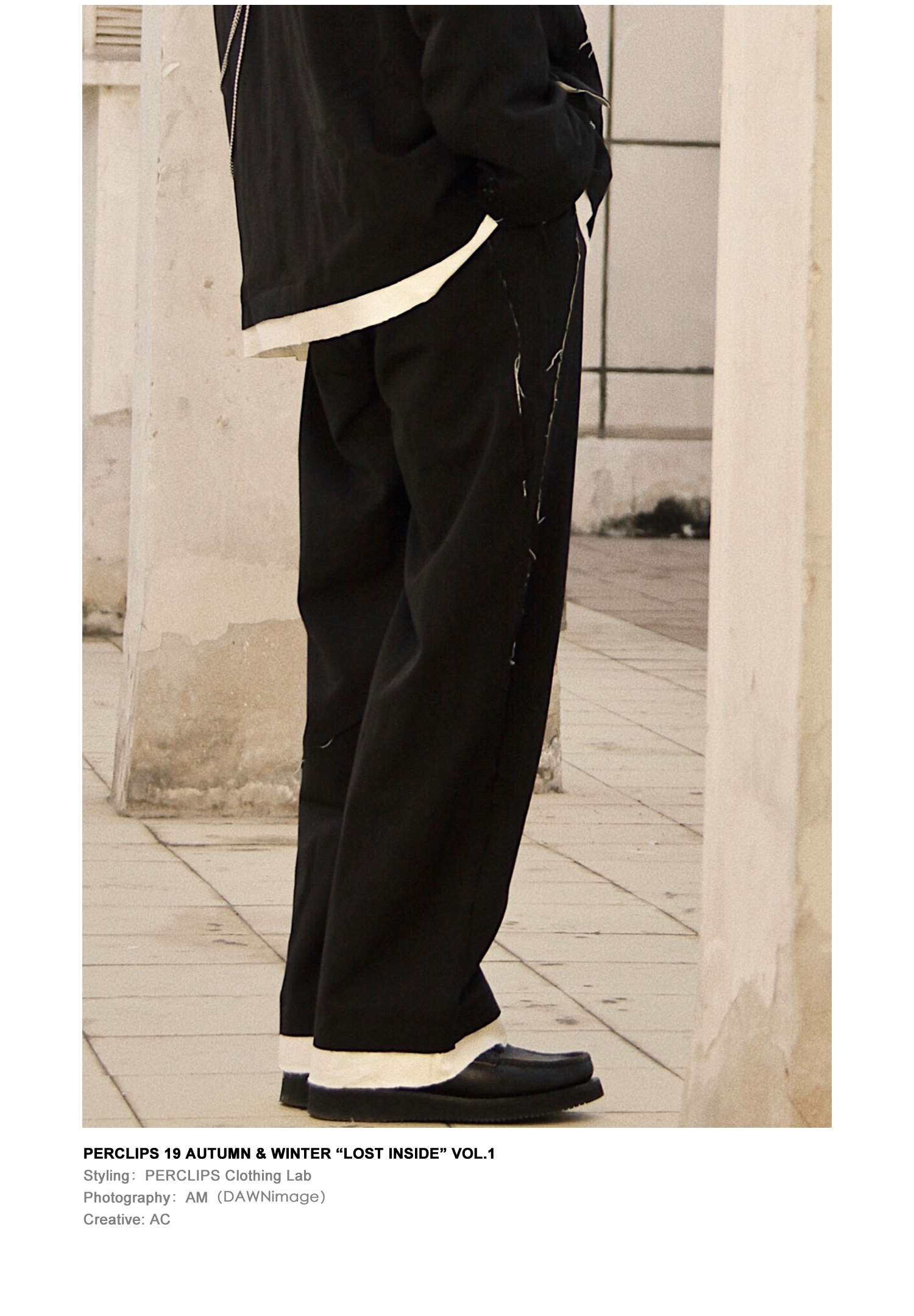 PCLP(PERCLIPS) 解构破坏毛边拼接西裤