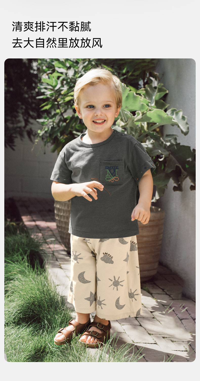 【宝宝服饰】嫚熙童装男宝短袖T恤2025新款男童夏季纯棉儿童透气薄款婴儿上衣