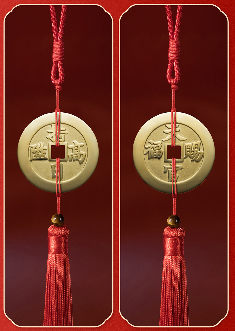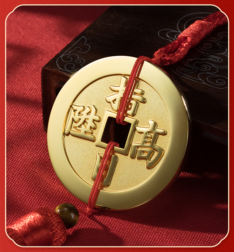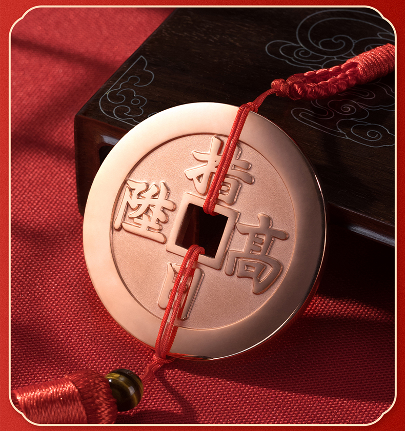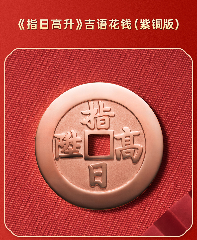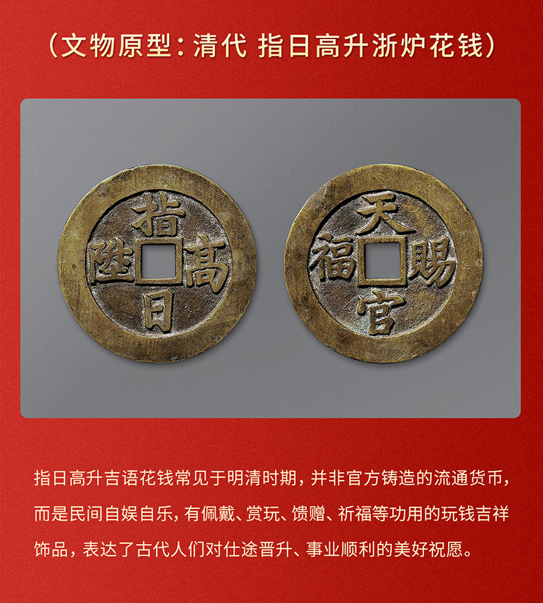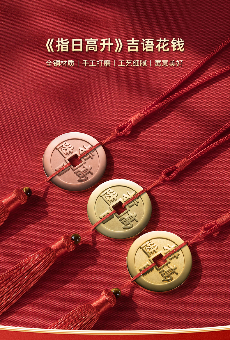 铜师傅《指日高升》吉语花钱 紫铜黄铜吊坠 佩戴祈福吉祥饰品挂件