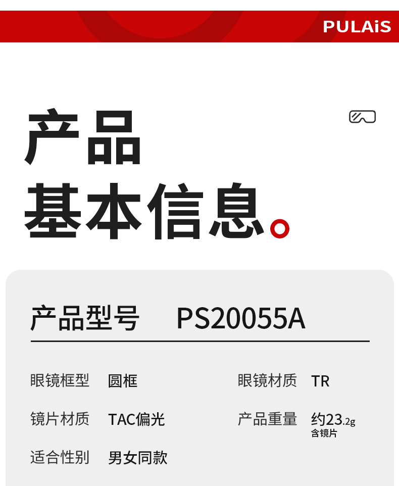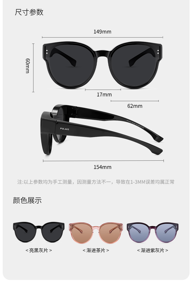 普莱斯套镜太阳镜PS20055A 近视专属 偏光套镜 TR90 男女同款 三色可选