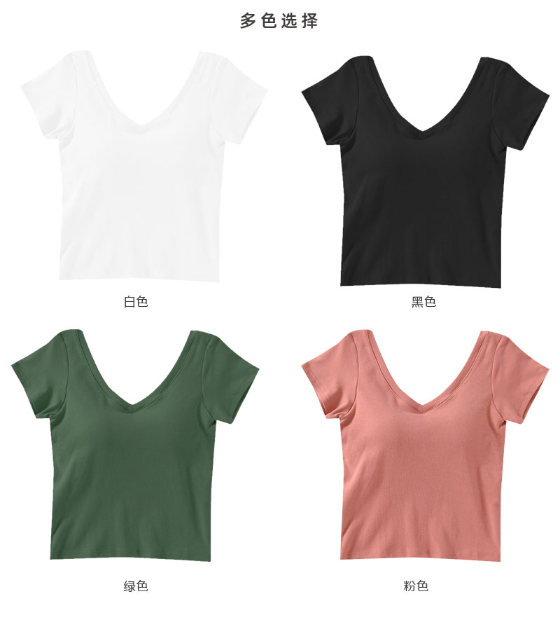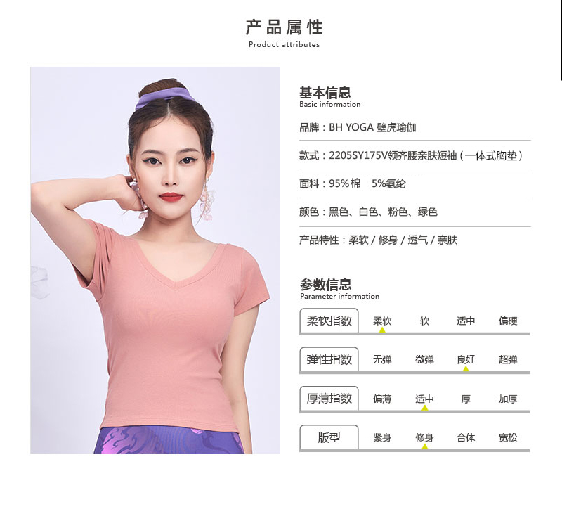 壁虎瑜伽【2205SY175】V领齐腰亲肤短袖(一体式胸垫)(5天发货)