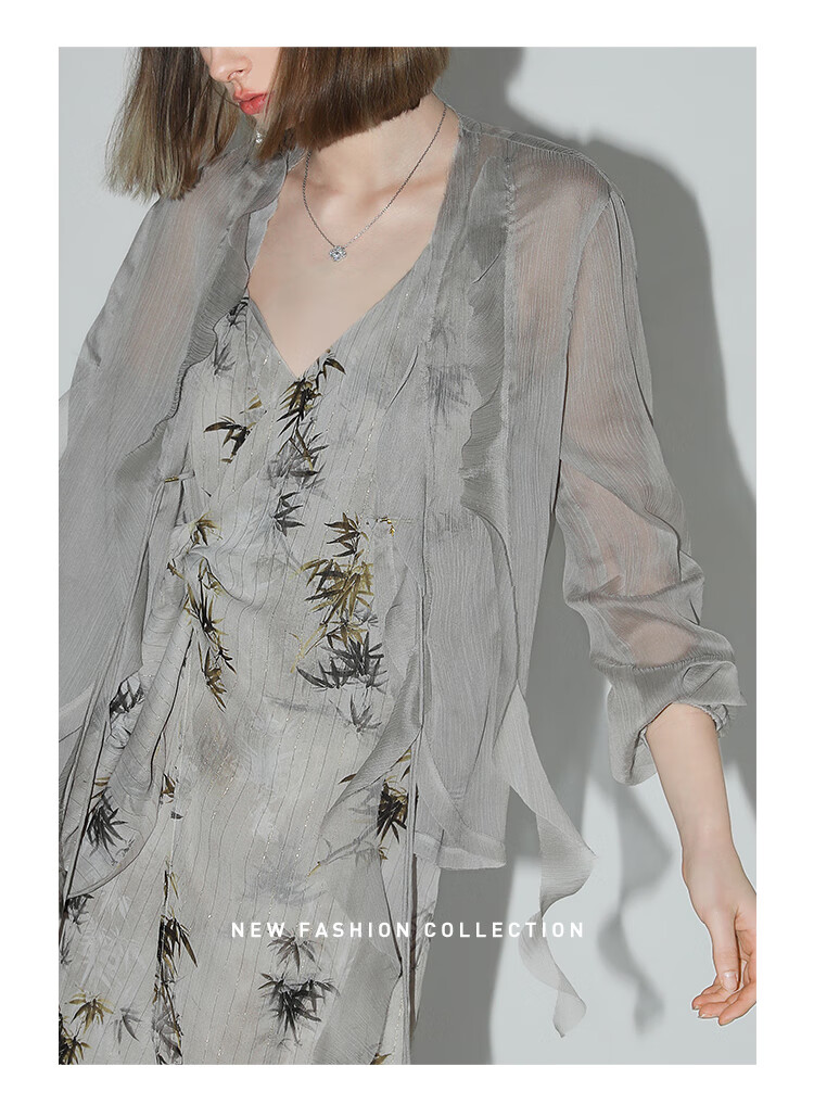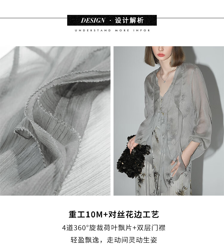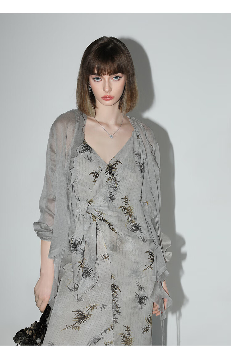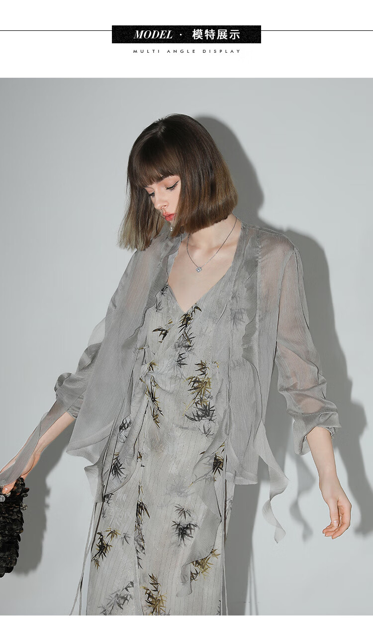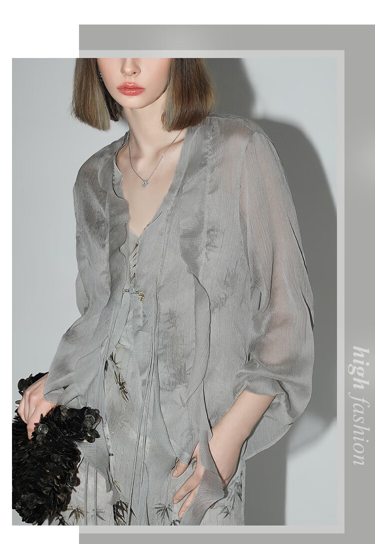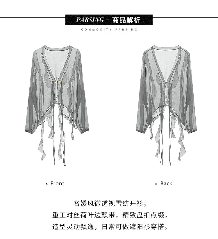COCOBELLA名媛风10M对丝灵动荷叶边飘带雪纺衫遮阳开衫LC0002C