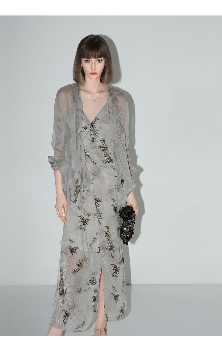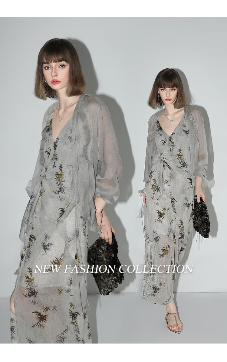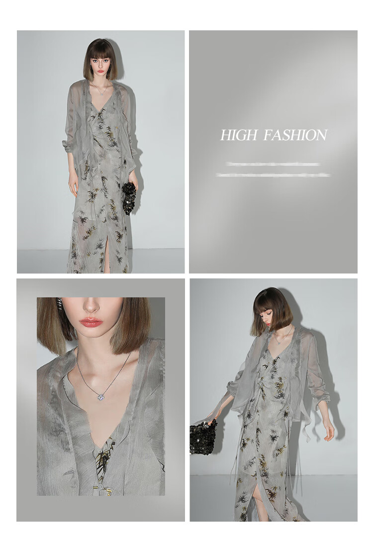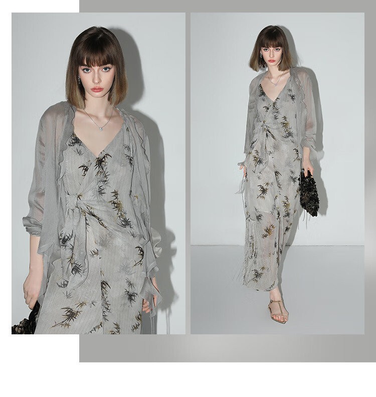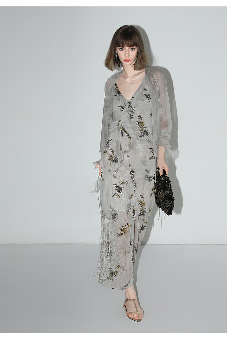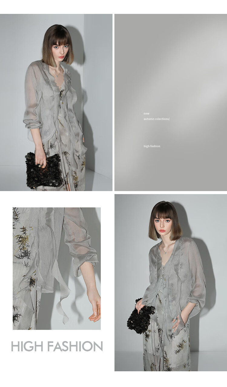 COCOBELLA名媛风10M对丝灵动荷叶边飘带雪纺衫遮阳开衫LC0002C