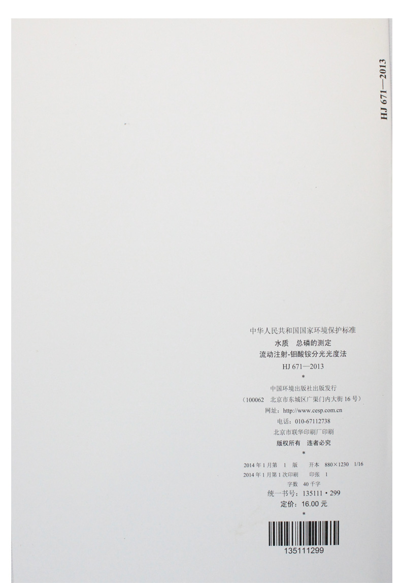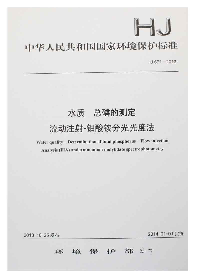 HJ 671-2013 水质 总磷的测定 流动注射-钼酸铵分光光度法 国家标准 国标 GB 环境科学135111299