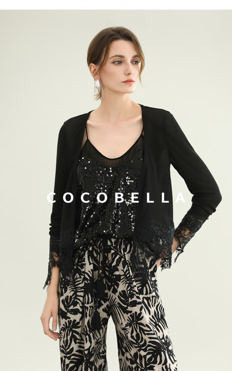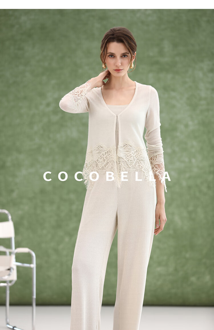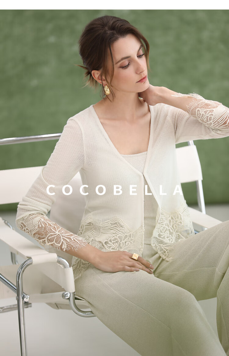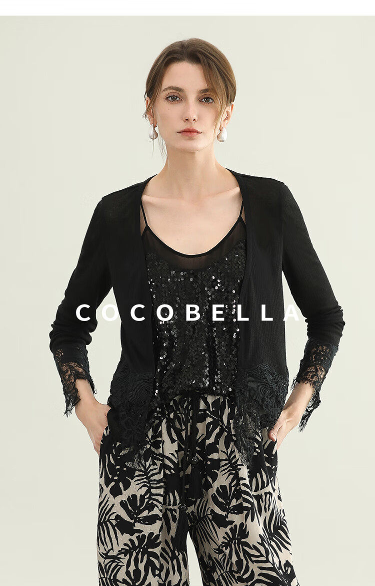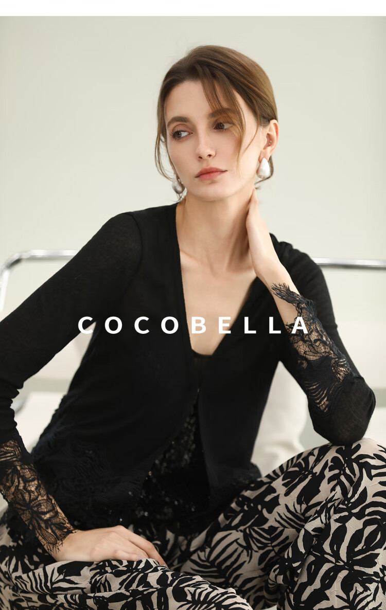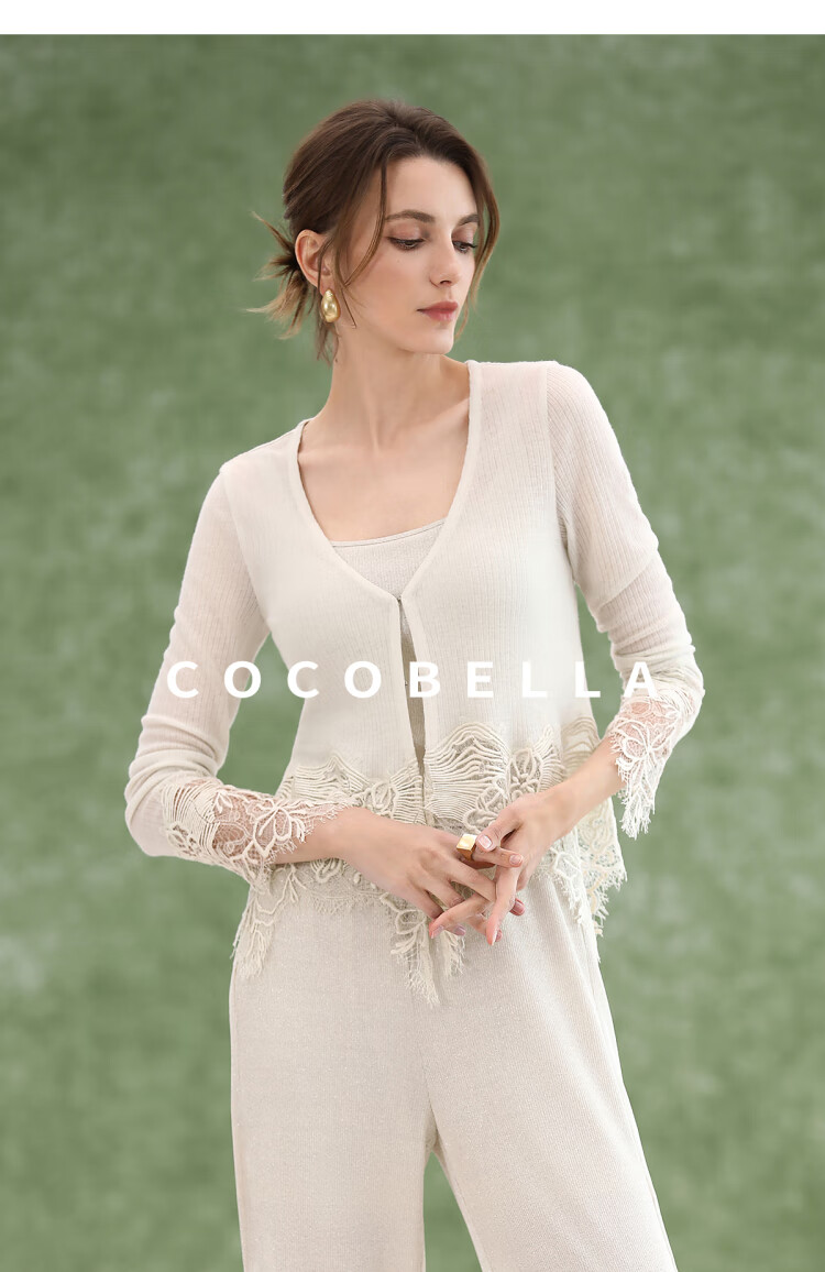 COCOBELLA重工水溶蕾丝定位拼接针织衫女夏通勤开衫MZ3196-2