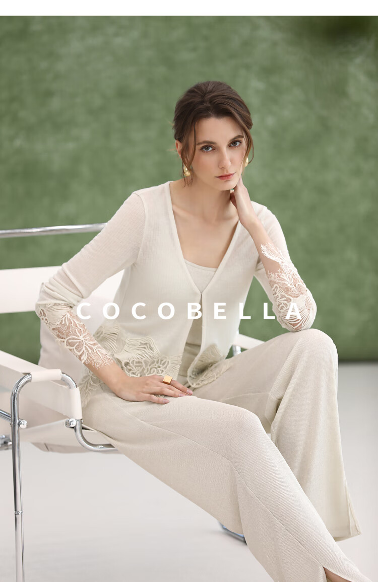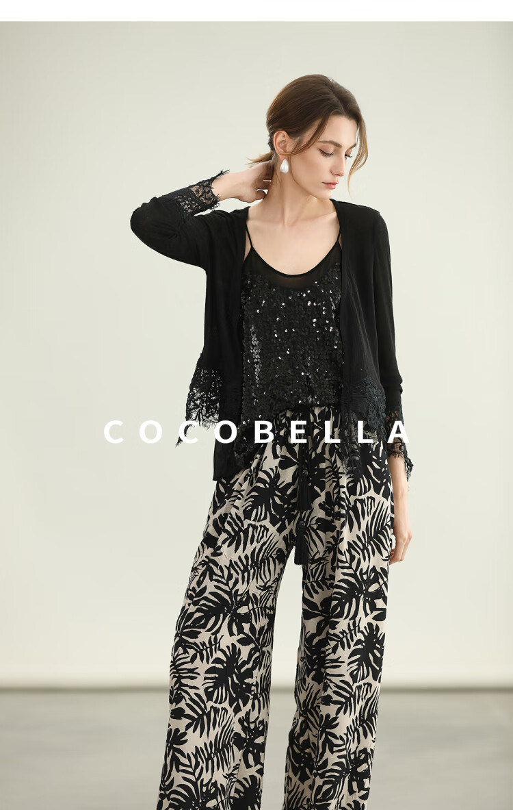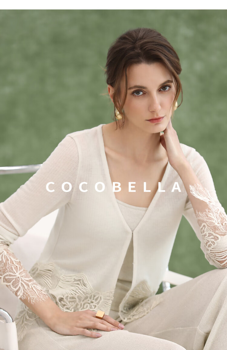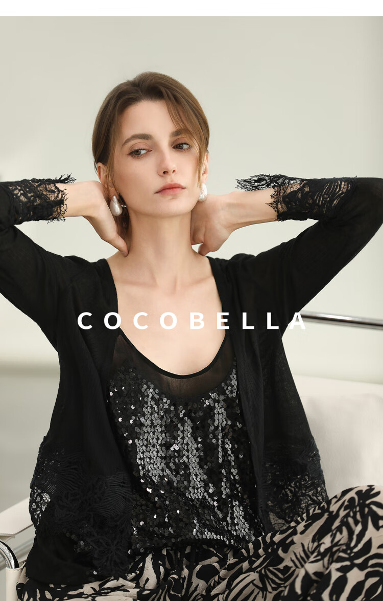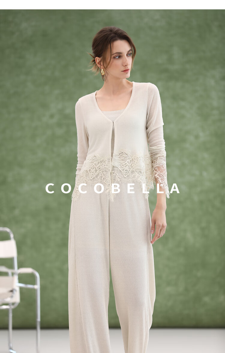 COCOBELLA重工水溶蕾丝定位拼接针织衫女夏通勤开衫MZ3196-2