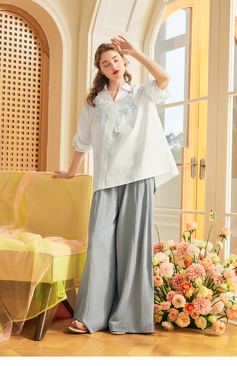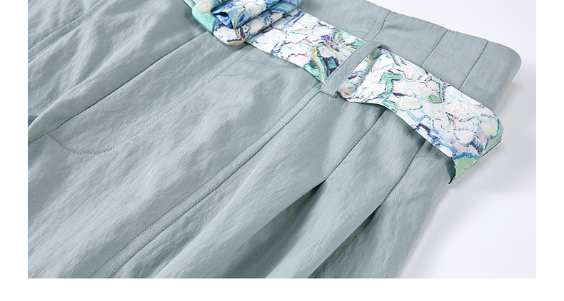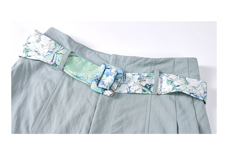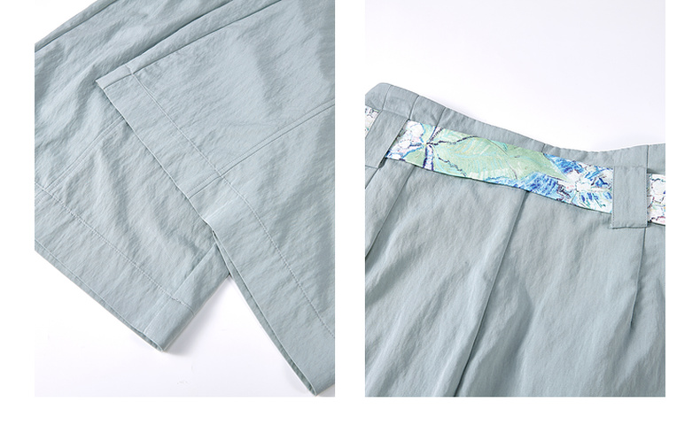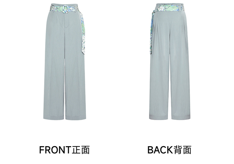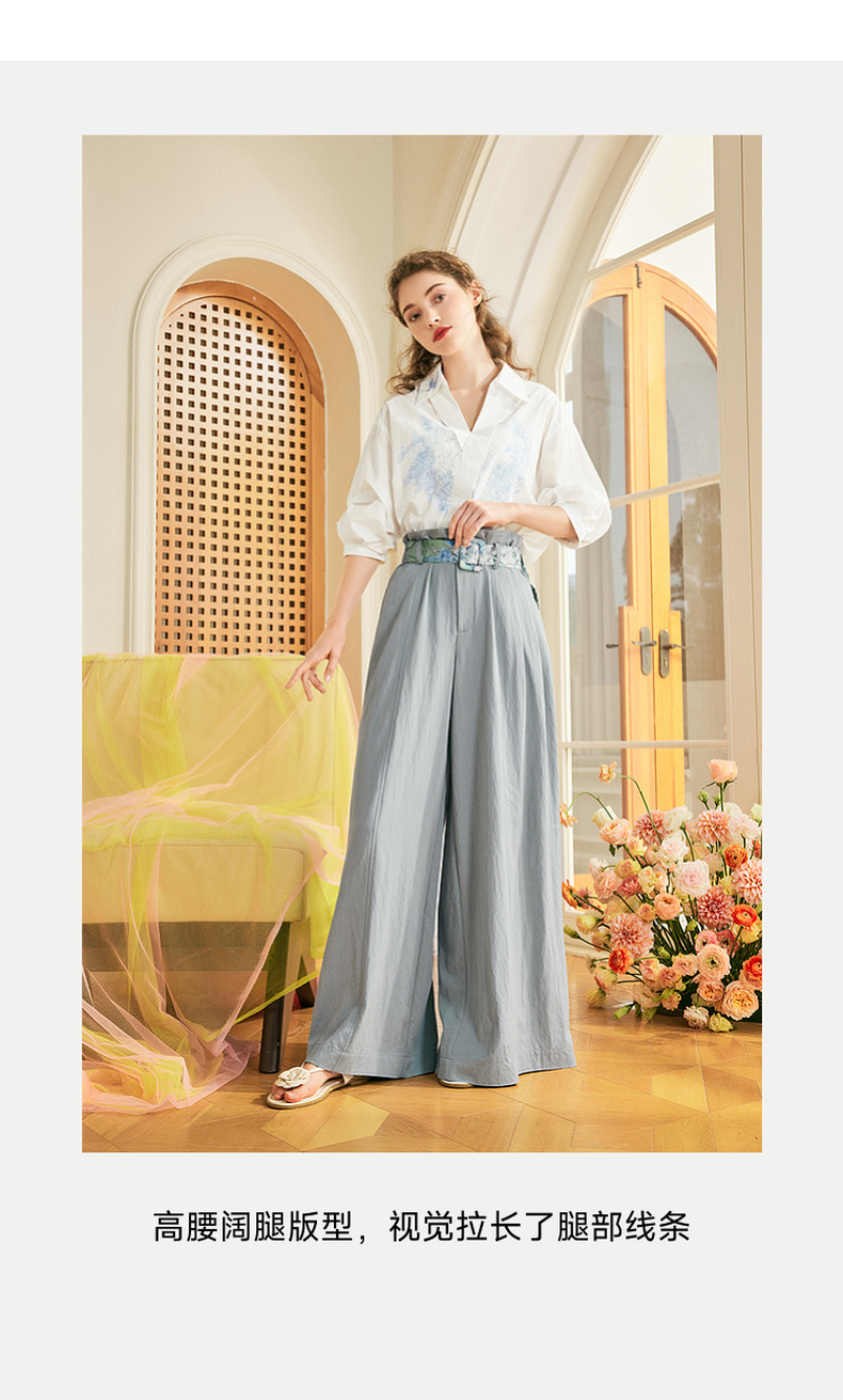 两三事恋野之行2024夏季新款时尚印花腰带不对称裤脚阔腿休闲裤女