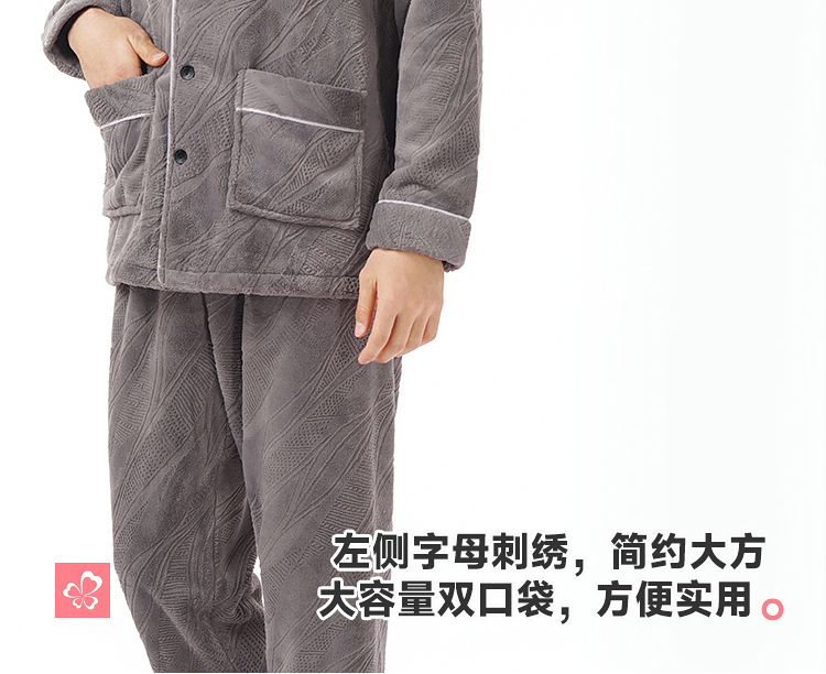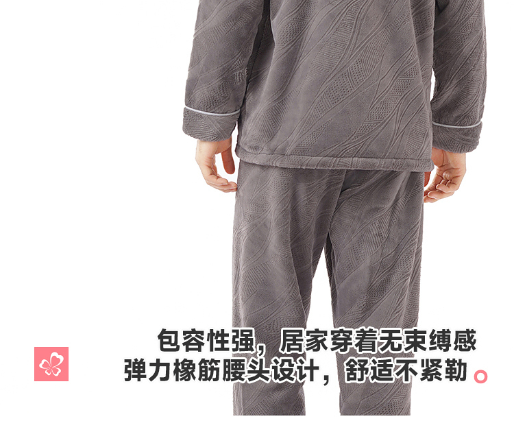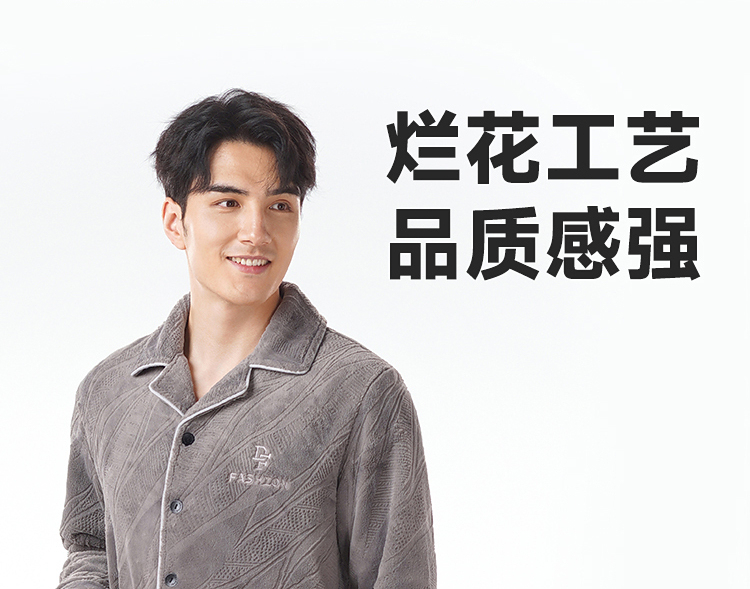 都市丽人睡衣法兰绒烂花睡衣男士家居服长袖长裤法兰绒套装FHH1D7