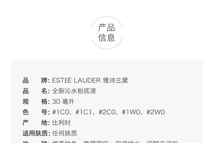 【保税仓】美国Estee Lauder雅诗兰黛 沁水粉底液 30ml