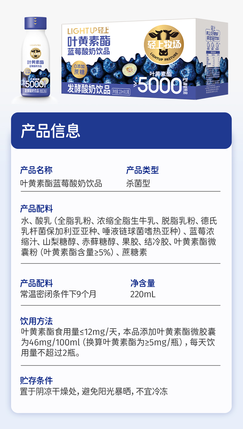 轻上 叶黄素酯蓝莓酸奶220ml*10瓶