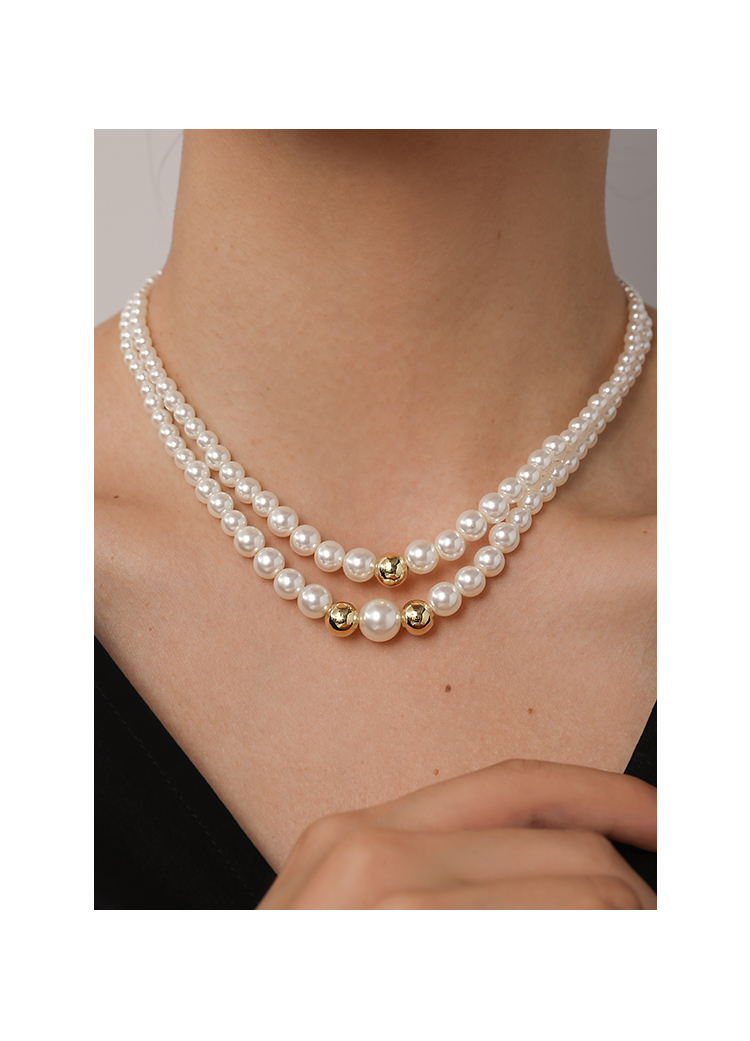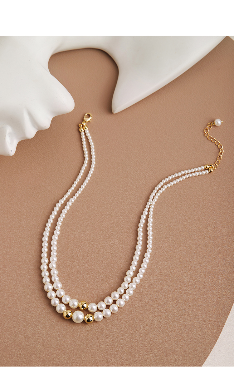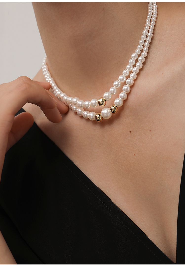 Oflye潮流饰品 双层叠戴小珍珠项链女时尚个性颈链小众设计气质轻奢锁骨链