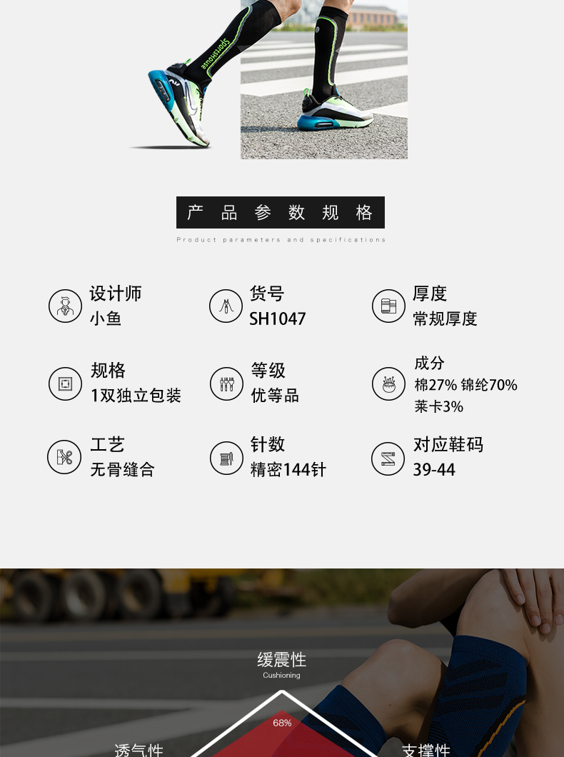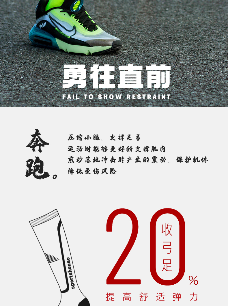 跑IN优选 01男士长筒透气马拉松压缩袜专业运动潮袜子