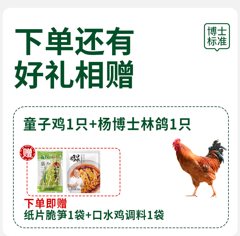 【杨博士自营 鲜鸽嫩鸡】350g鸽子*1只无抗童子鸡*赠1袋纸片笋*1+口水鸡调料*1