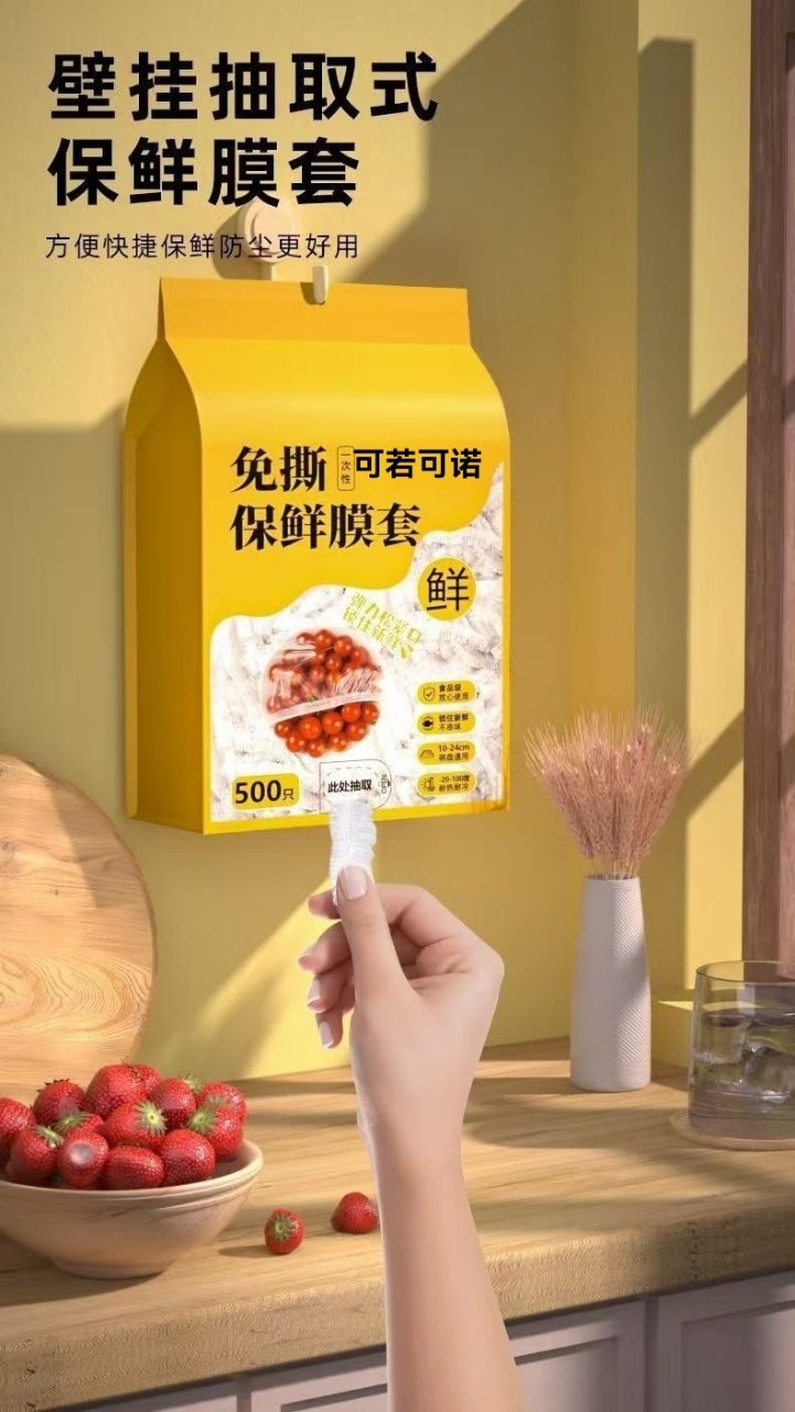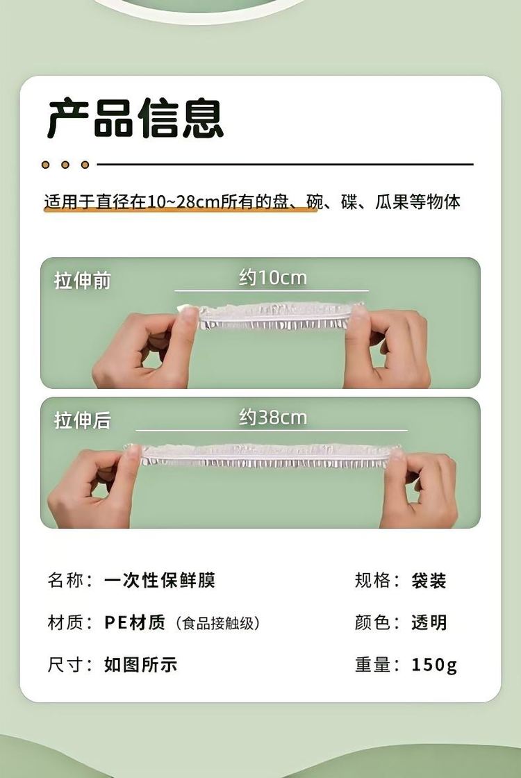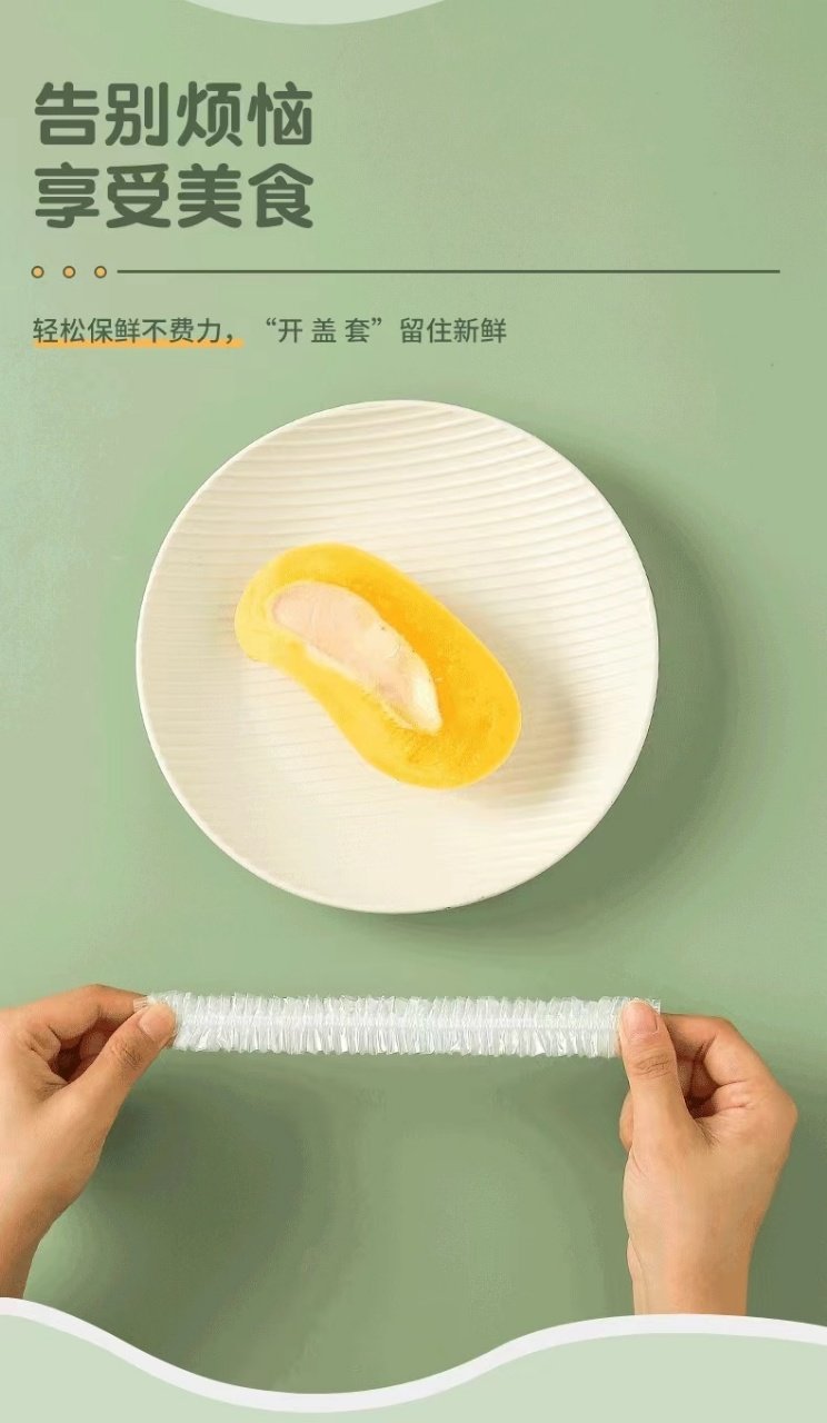 【壁挂抽取式一次性保鲜膜套】一袋可以用很久结实耐用不漏水⚠️食品级材质~安全放心使用❗❗ ▸韧性好不易破,冰箱/微波炉通用-GZFT