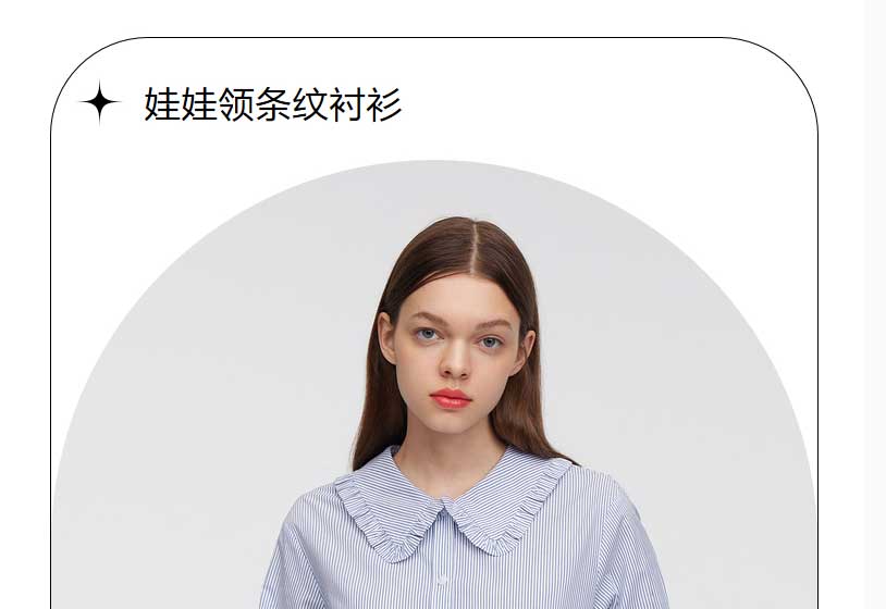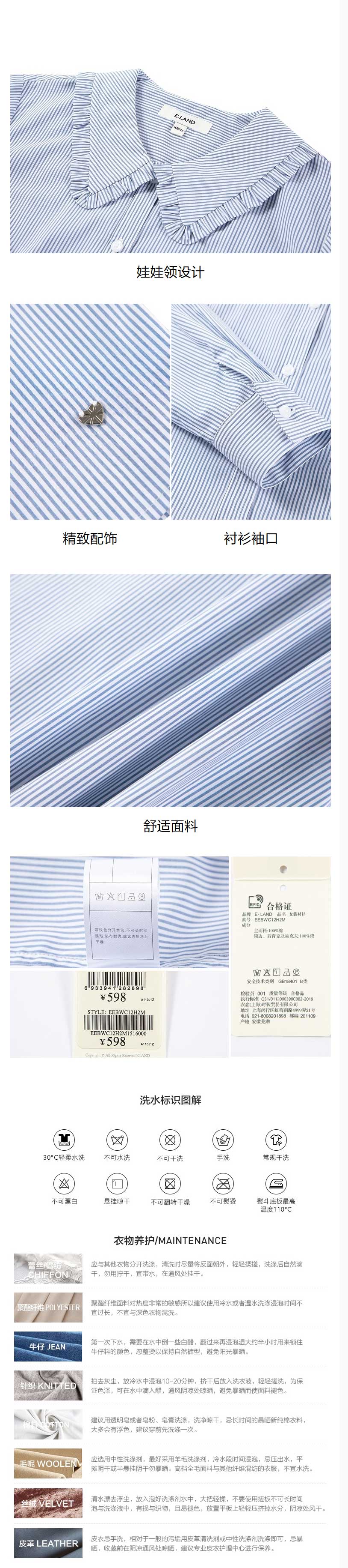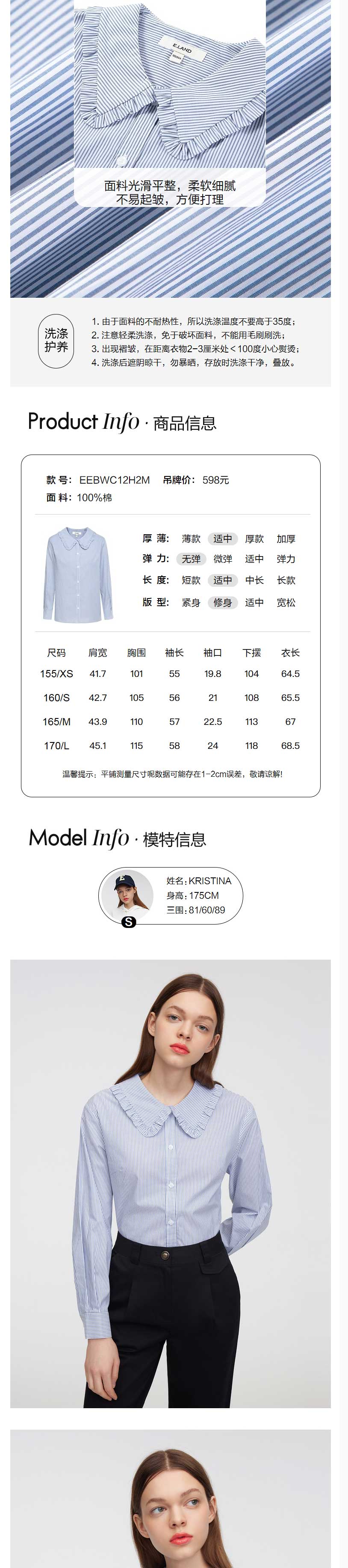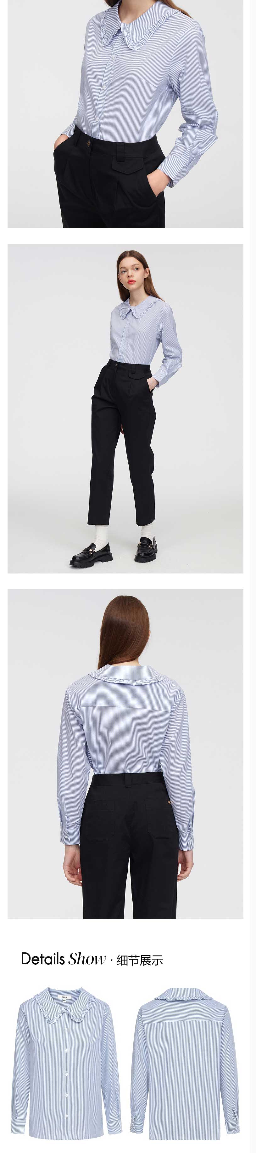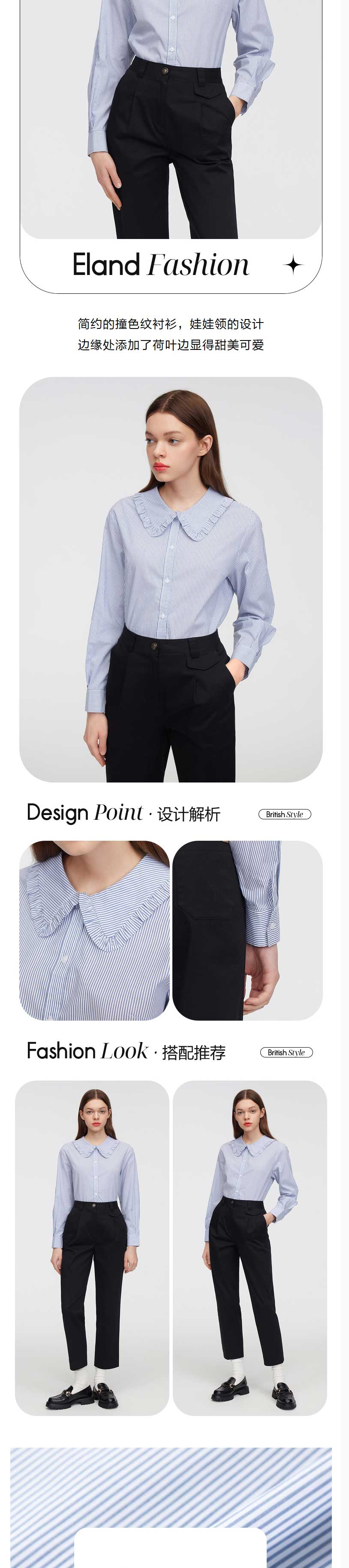 ELAND衣恋2022年春季新款小众设计感别致荷叶边职业条纹衬衫女EEBWC12H2M
