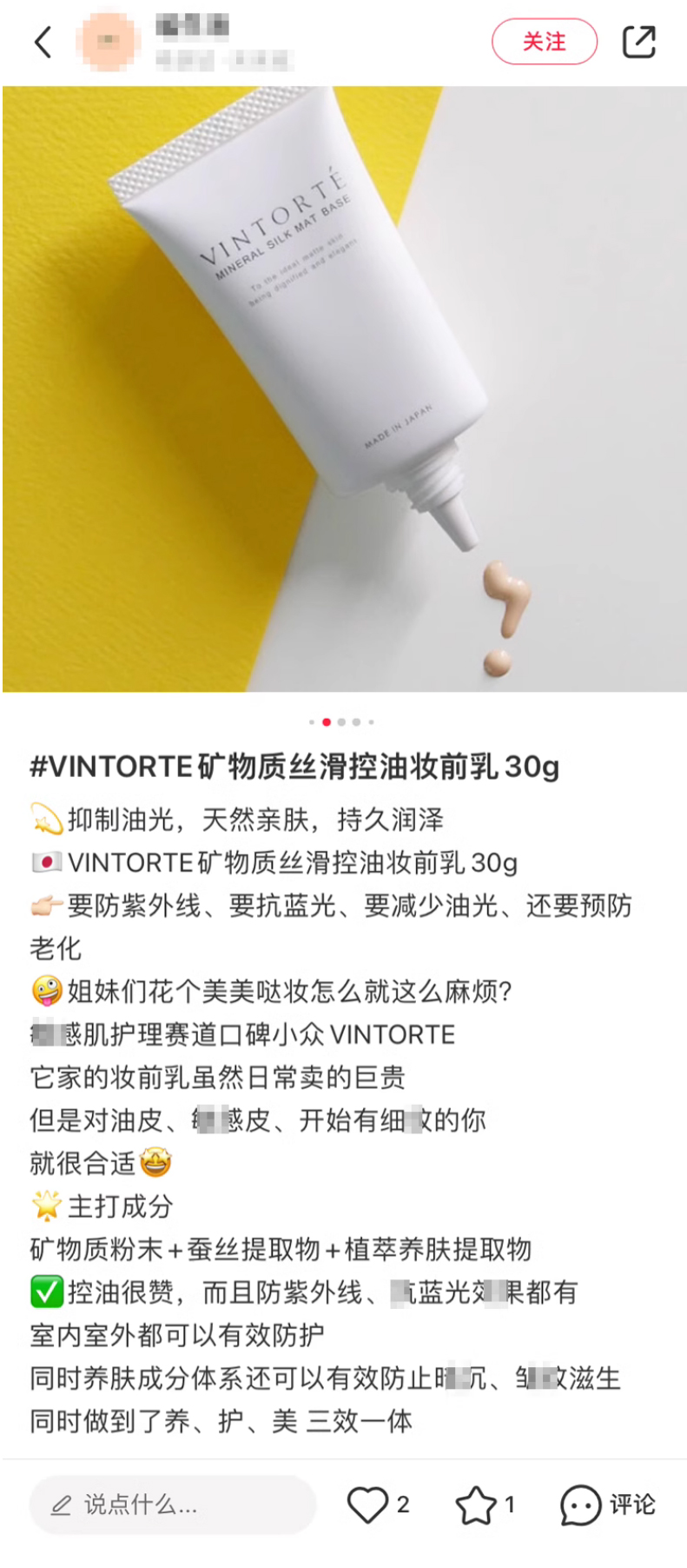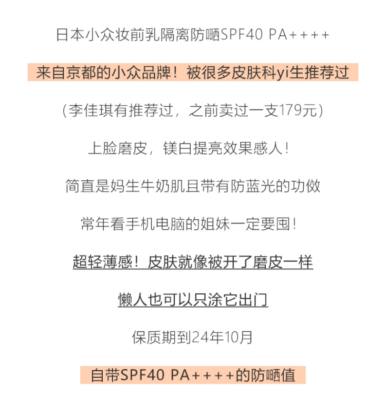 【商品名称】日本VINTORTE防蓝光哑光妆前乳30g SPF40 PA++++