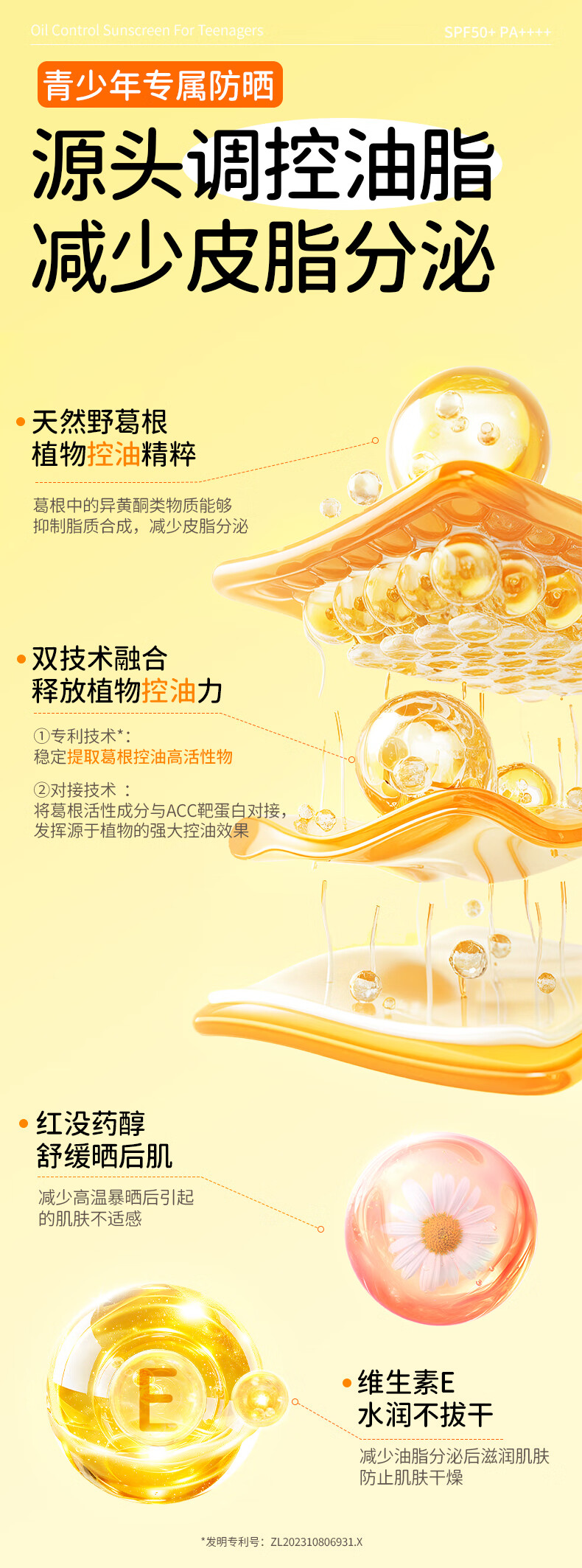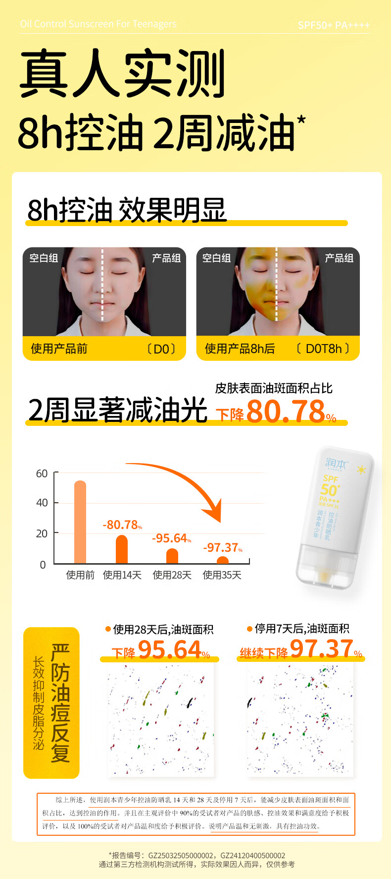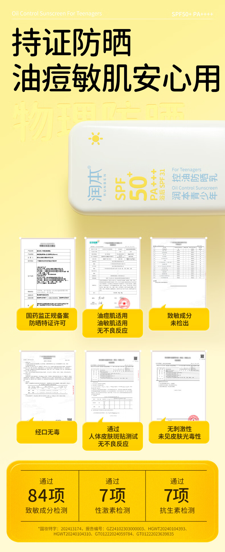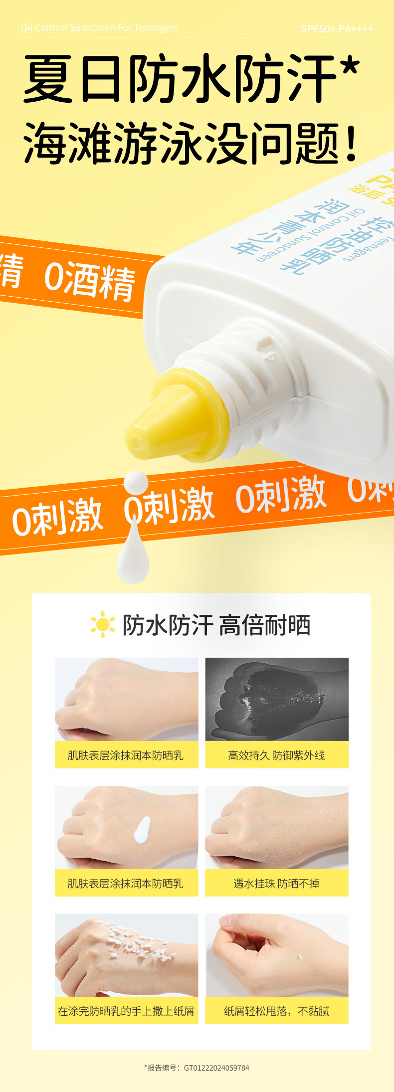 润本(RUNBEN)青少年控油防晒乳35g学生党专用海滩军训防水防汗防晒SPF50+PA+++