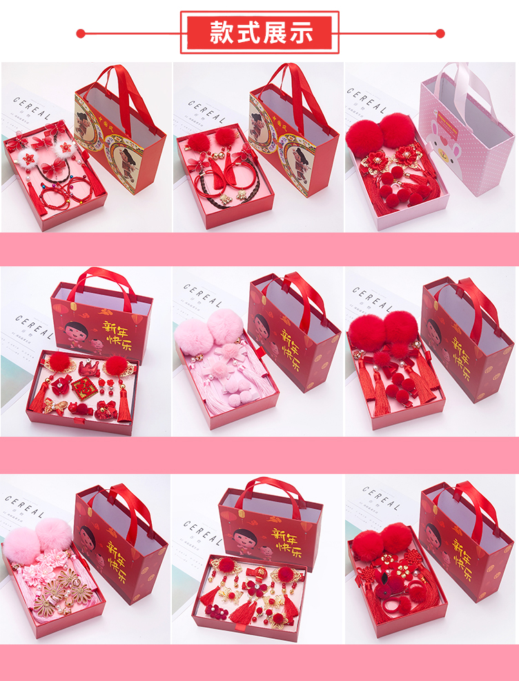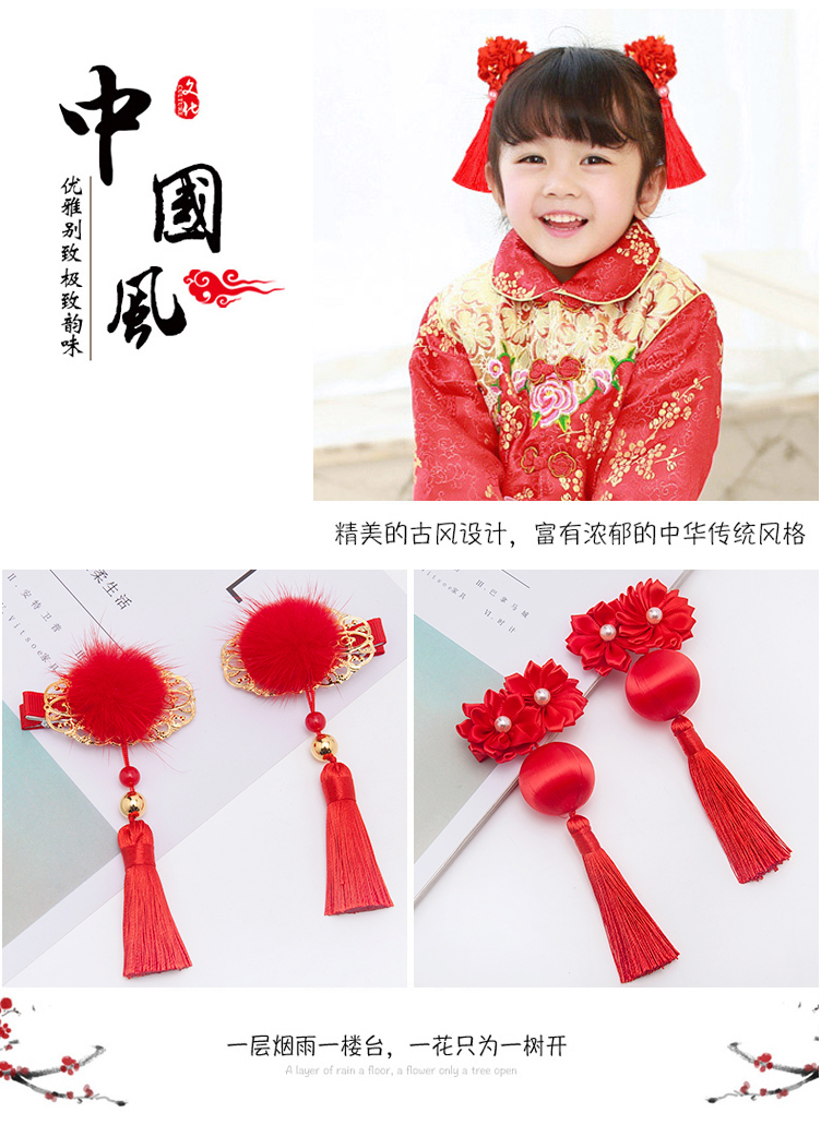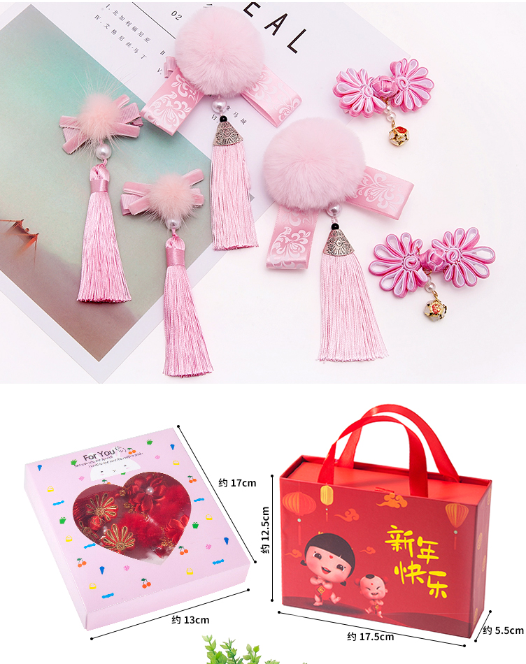 【新年红中国风发夹礼盒】中国风儿童发夹过年新年古装头饰女童发卡公主女宝宝古风汉服发饰