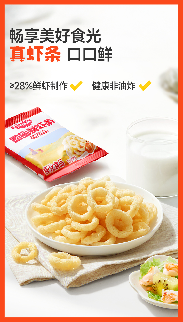 【💰15.9秒杀 4件】圈圈鲜虾条10g*4,叠加店铺满赠,不叠加店铺满减和会员折扣
