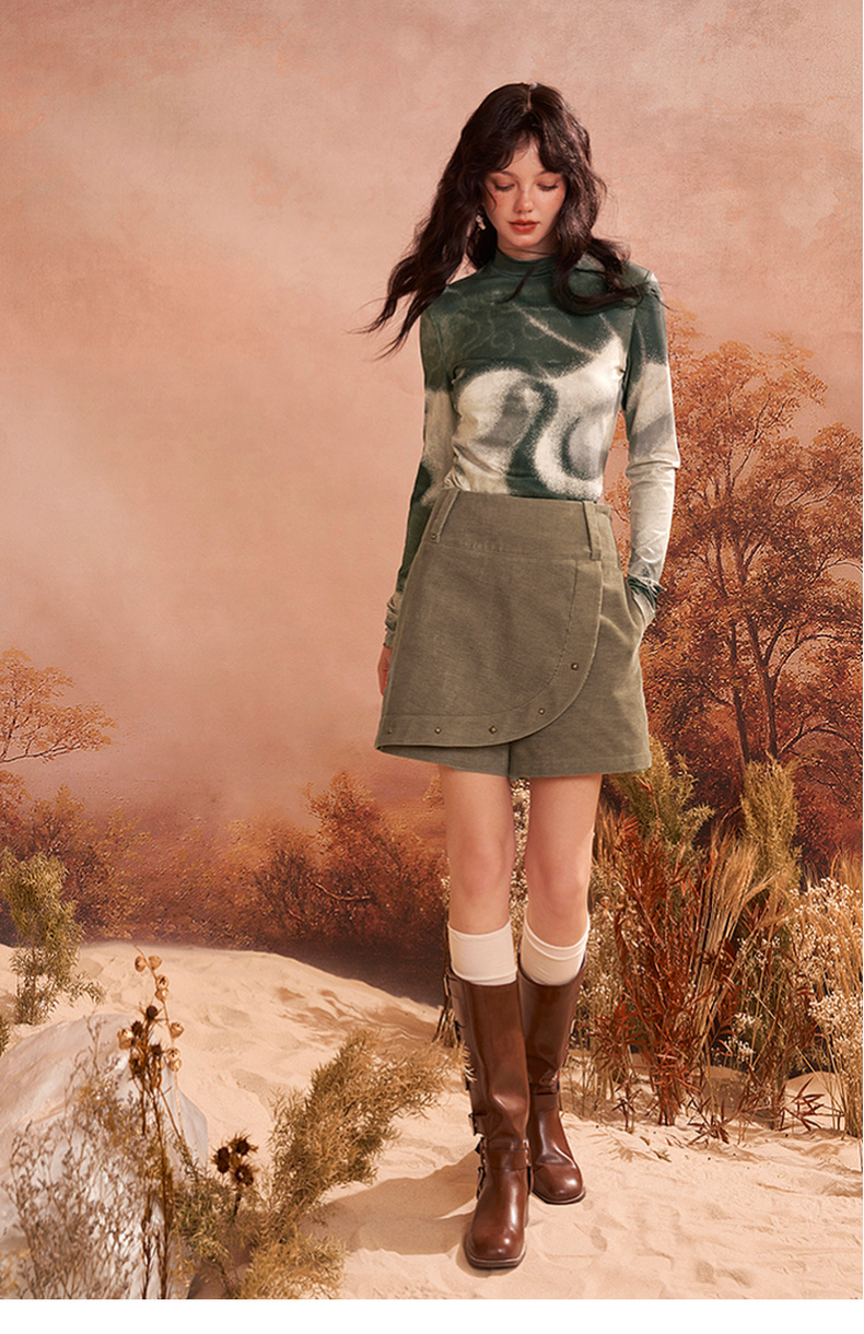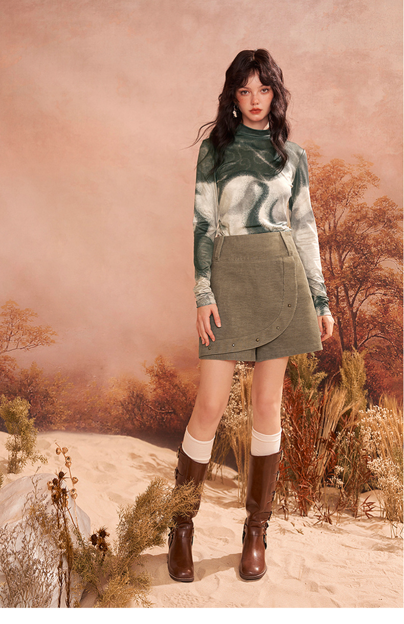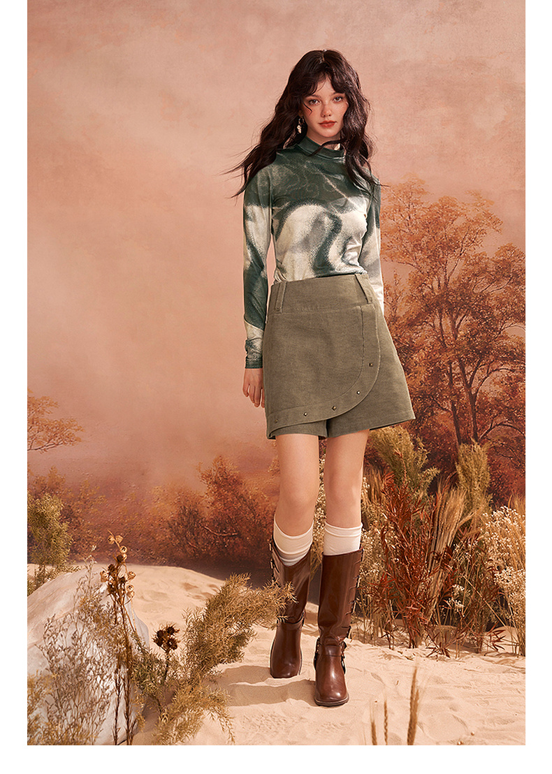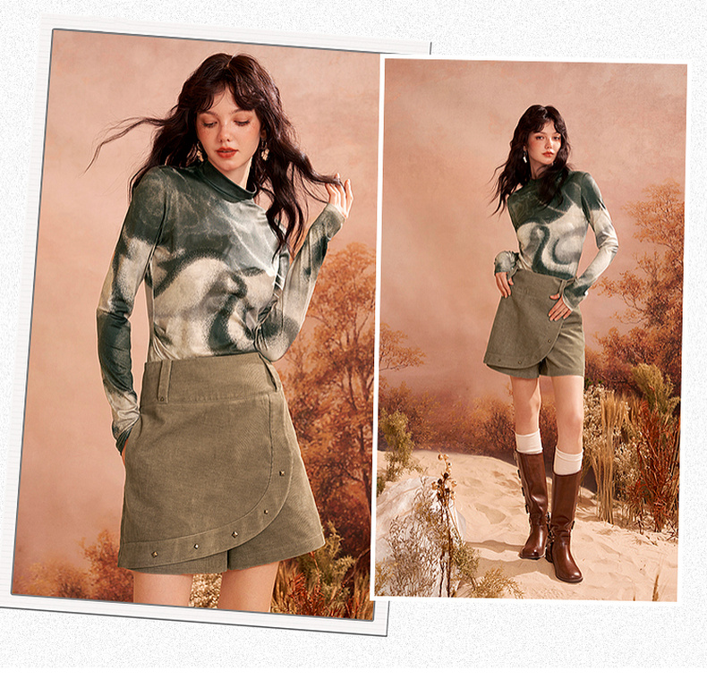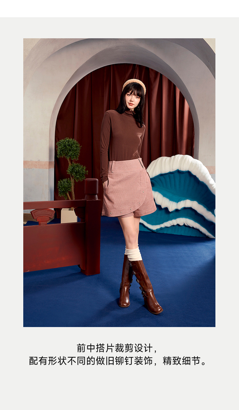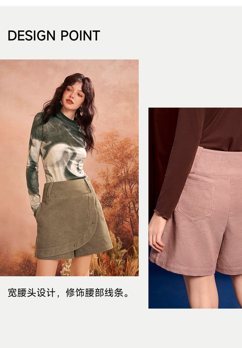 两三事沙丘之子2023秋季新款复古铆钉装饰显瘦灯芯绒裙裤休闲裤