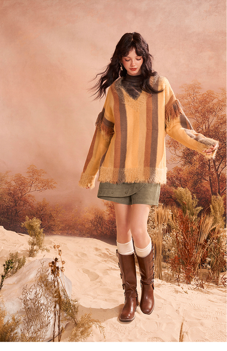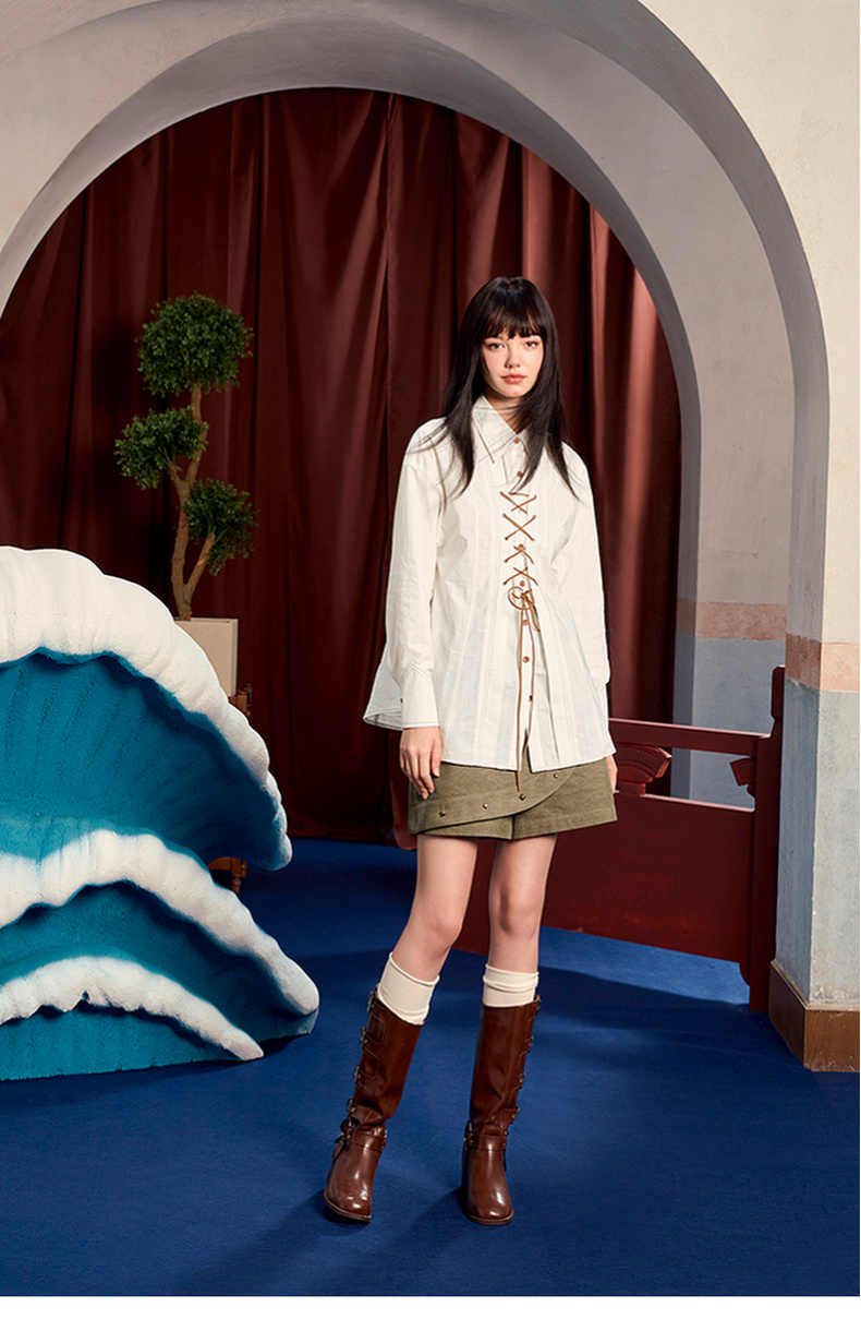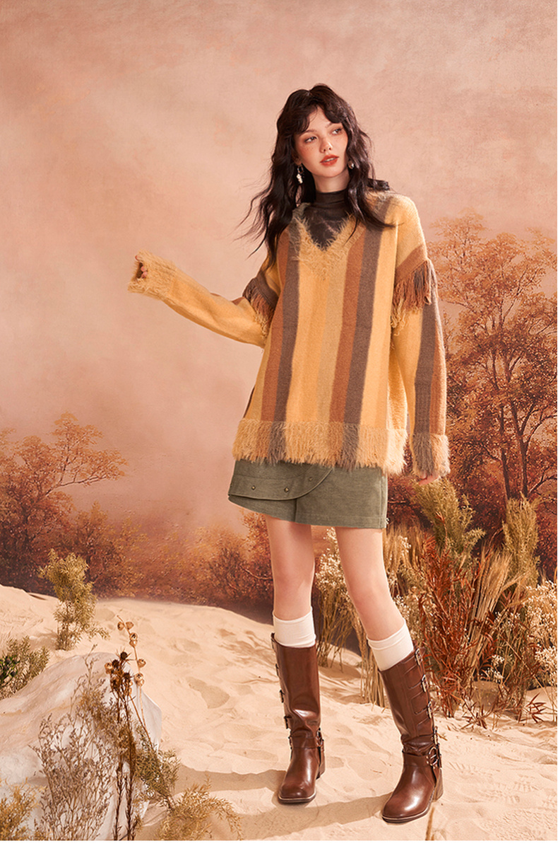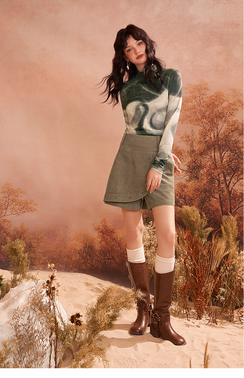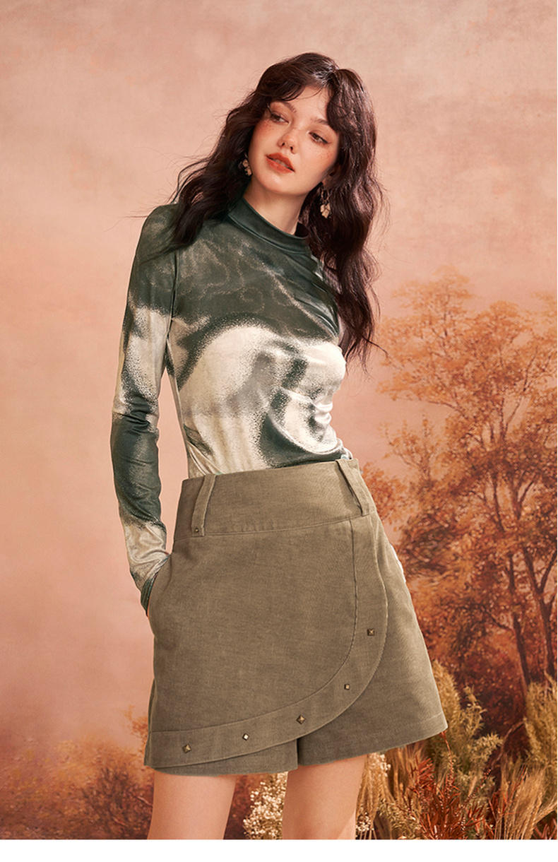 两三事沙丘之子2023秋季新款复古铆钉装饰显瘦灯芯绒裙裤休闲裤