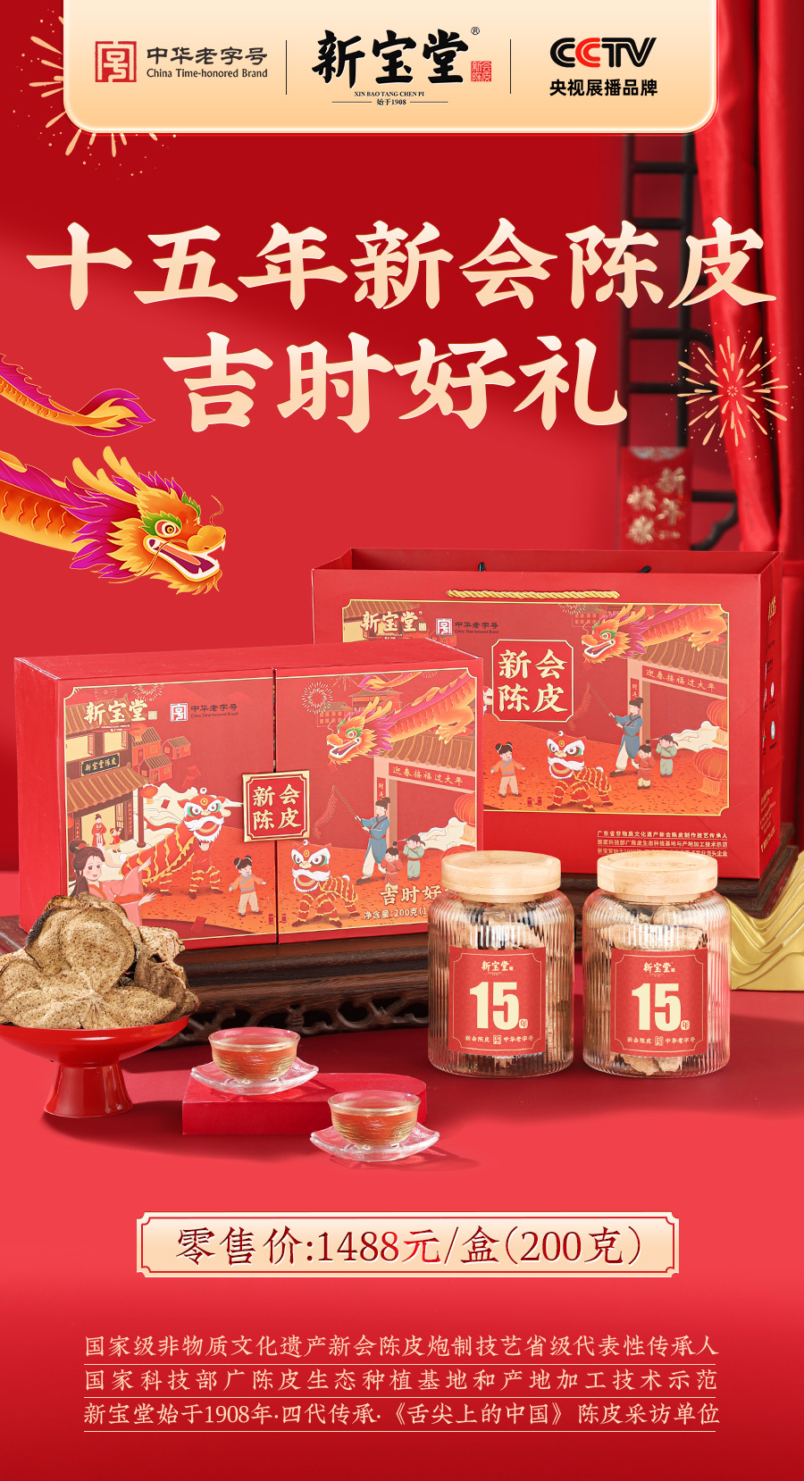 新宝堂 新会陈皮源产新会 年老陈皮吉时好礼礼盒200克