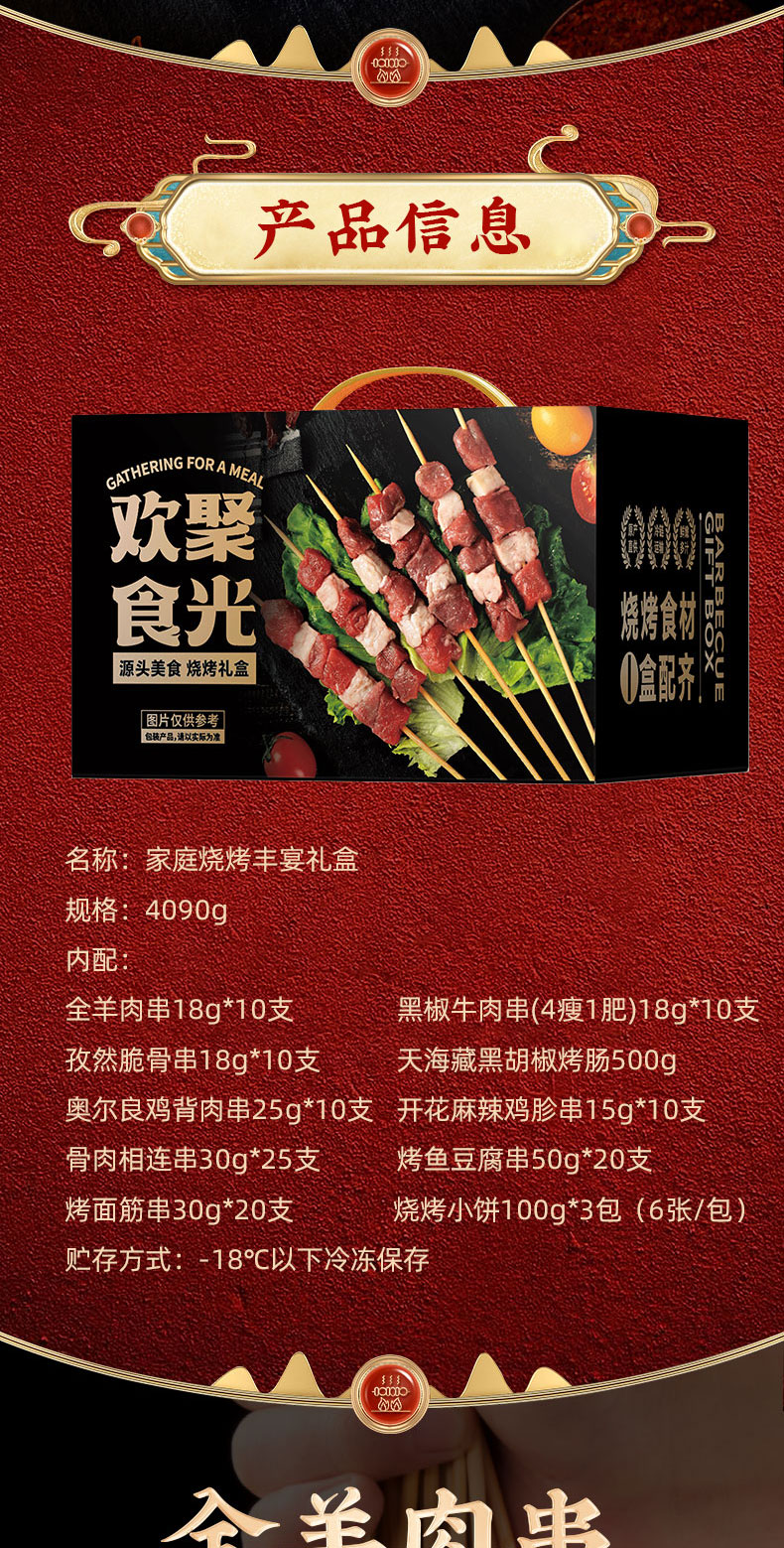 【自营】家庭烧烤丰宴礼盒4090g 春游露营烧烤烤串