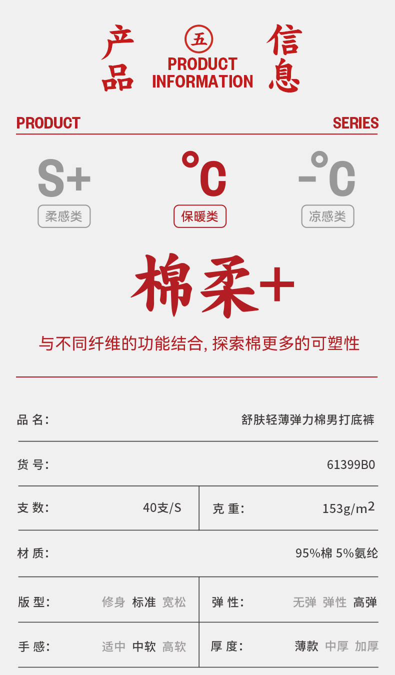 Threegun三枪 【舒肤轻薄弹力棉】男士打底裤-61399B011