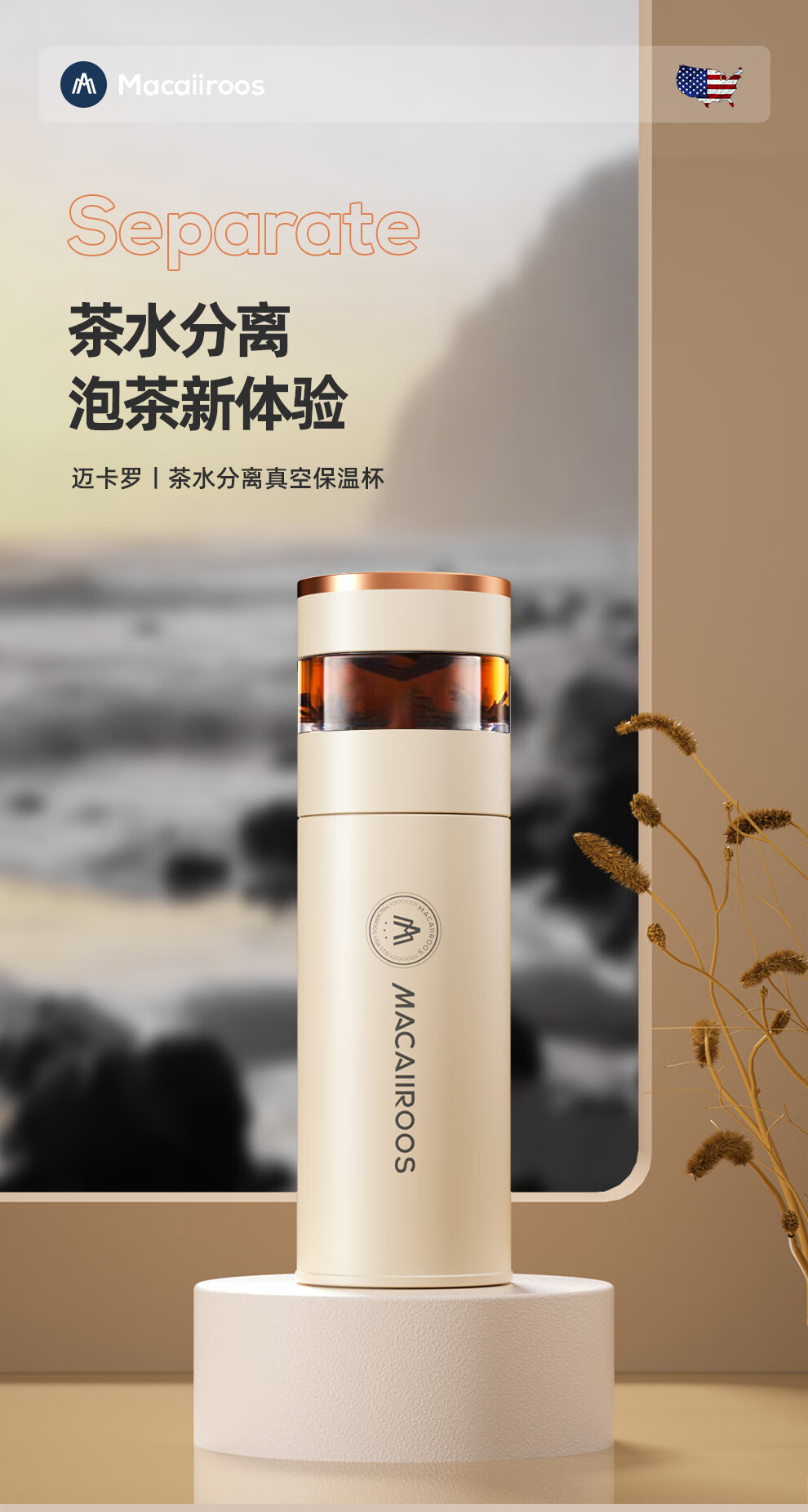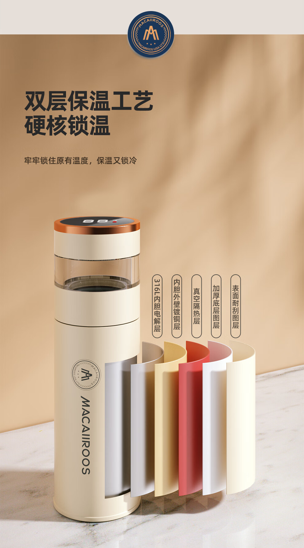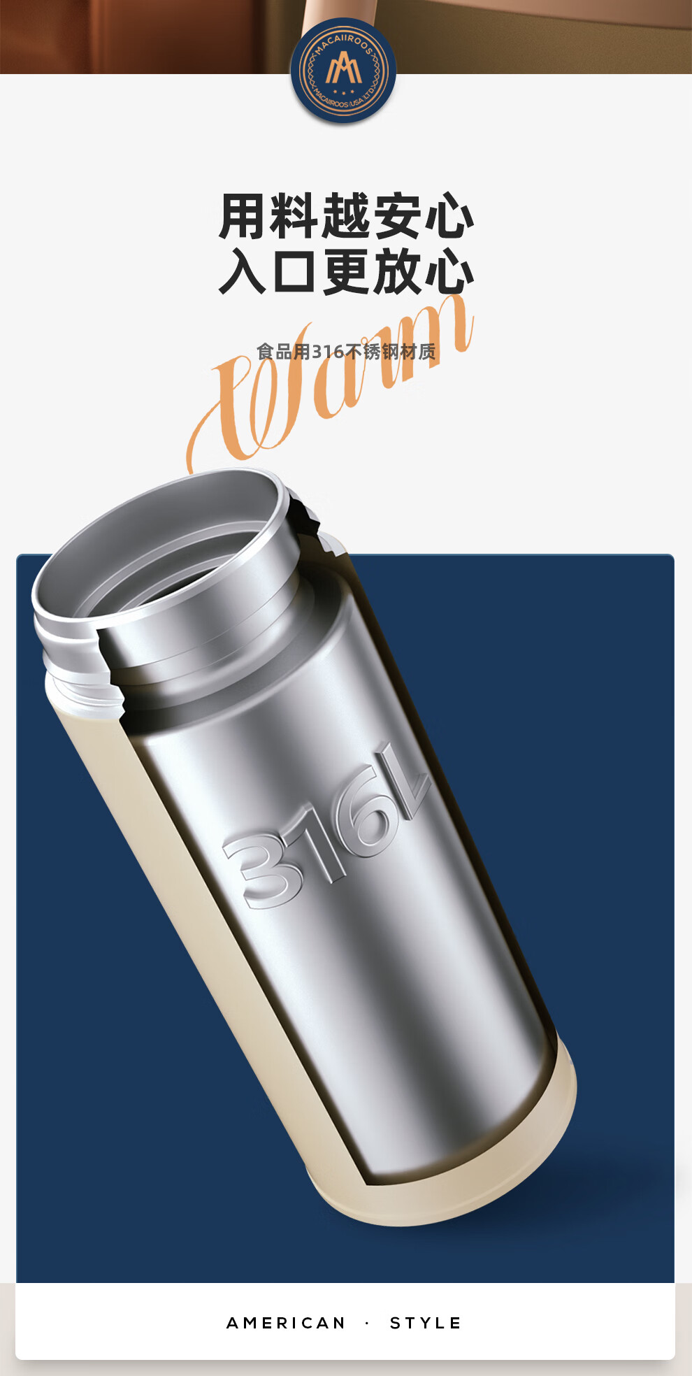 【小家电】迈卡罗MC-8450BW保温杯316不锈钢男女士高档水杯学生泡茶杯水杯子HF