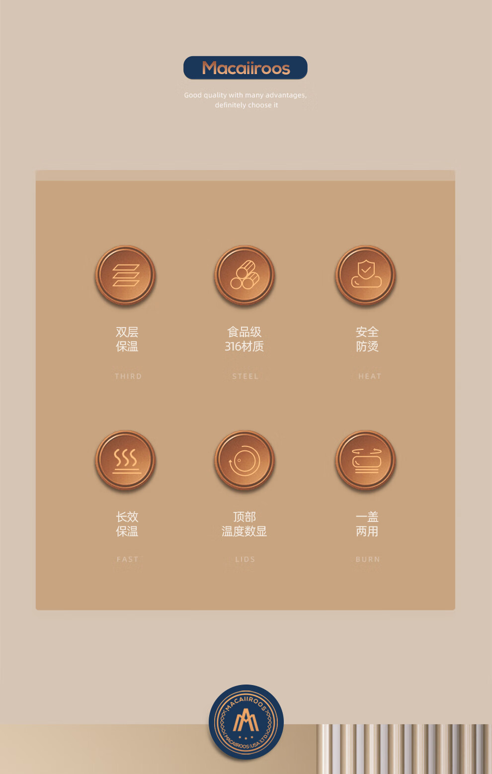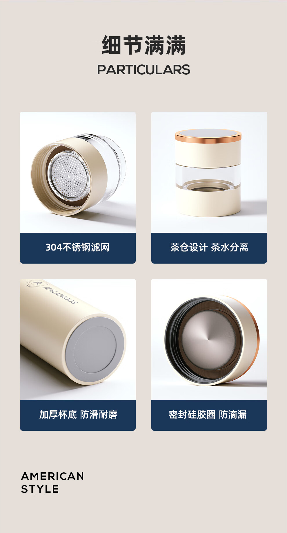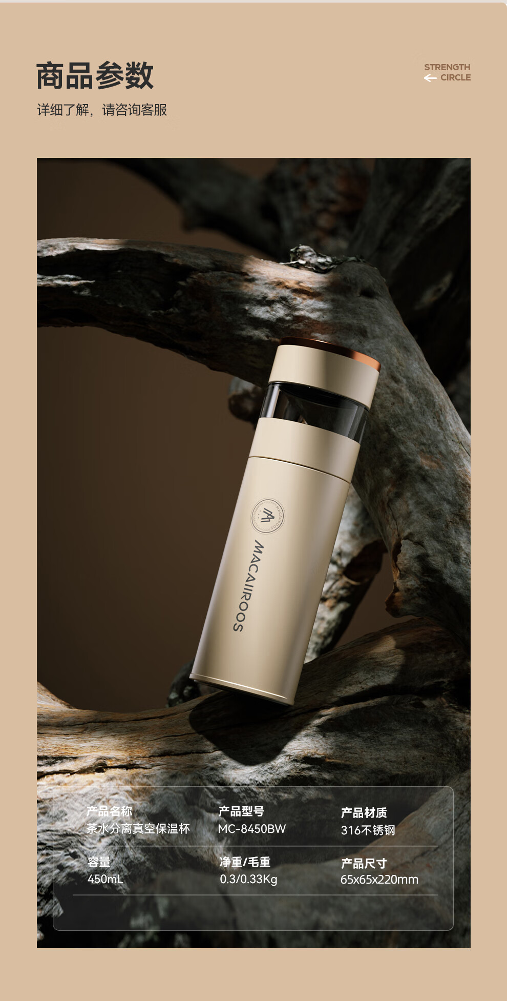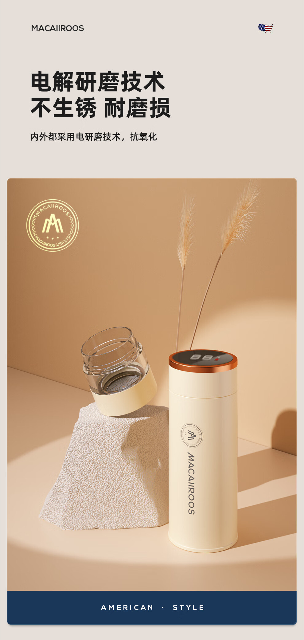 【小家电】迈卡罗MC-8450BW保温杯316不锈钢男女士高档水杯学生泡茶杯水杯子HF