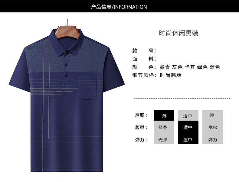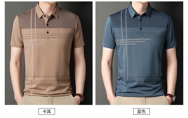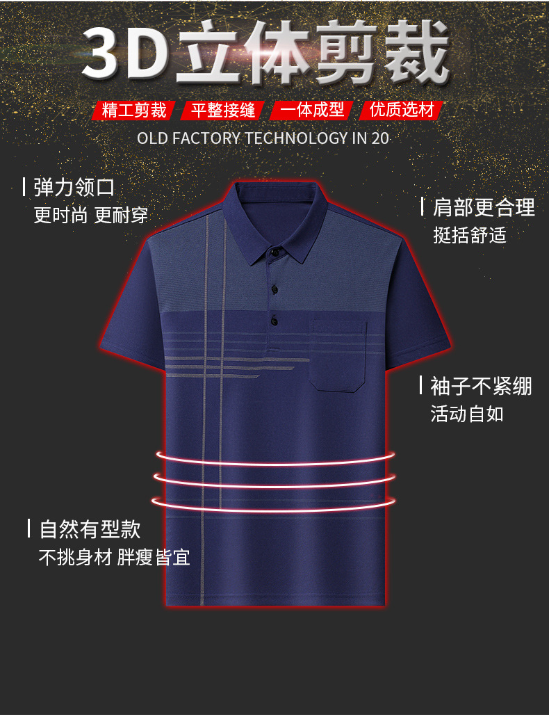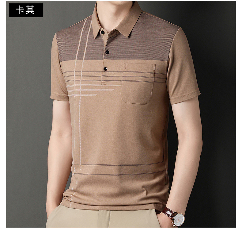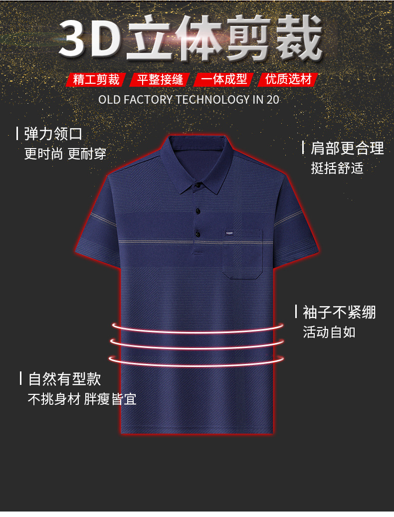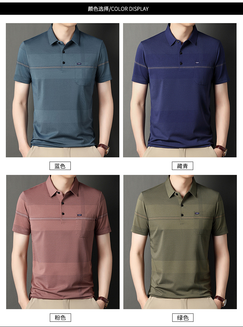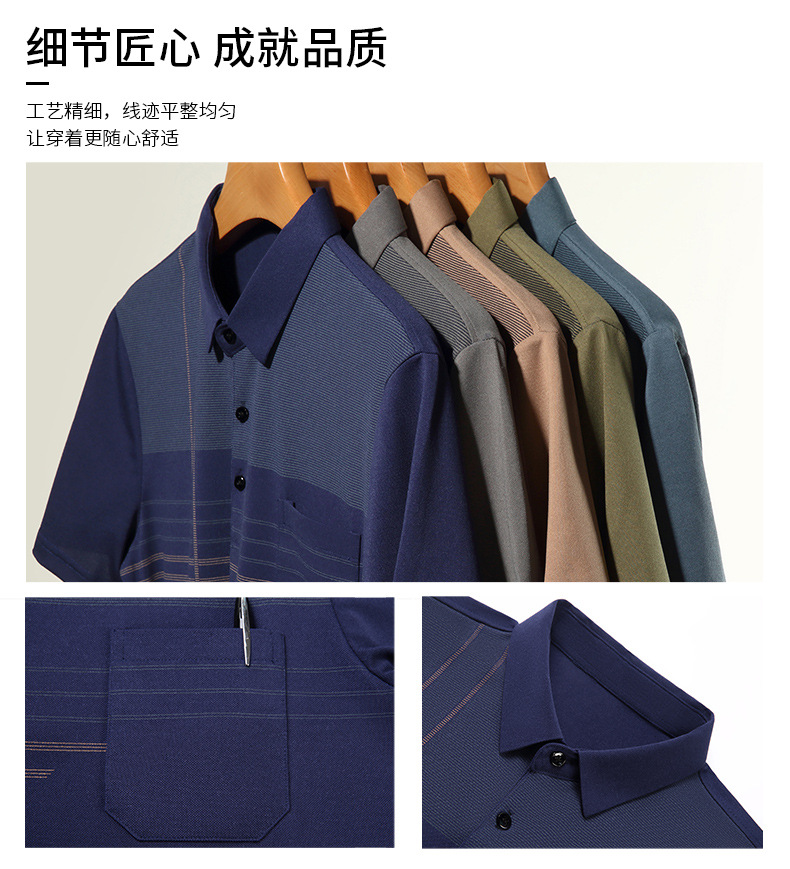 【实穿主义优质面料❗️夏季翻领Polo短袖】舒适休闲男装 薄款条纹中老年男士polo衫 爸爸日常穿搭 透气不闷汗 父亲节礼物Y父亲节礼物新年礼盒年货礼盒
